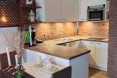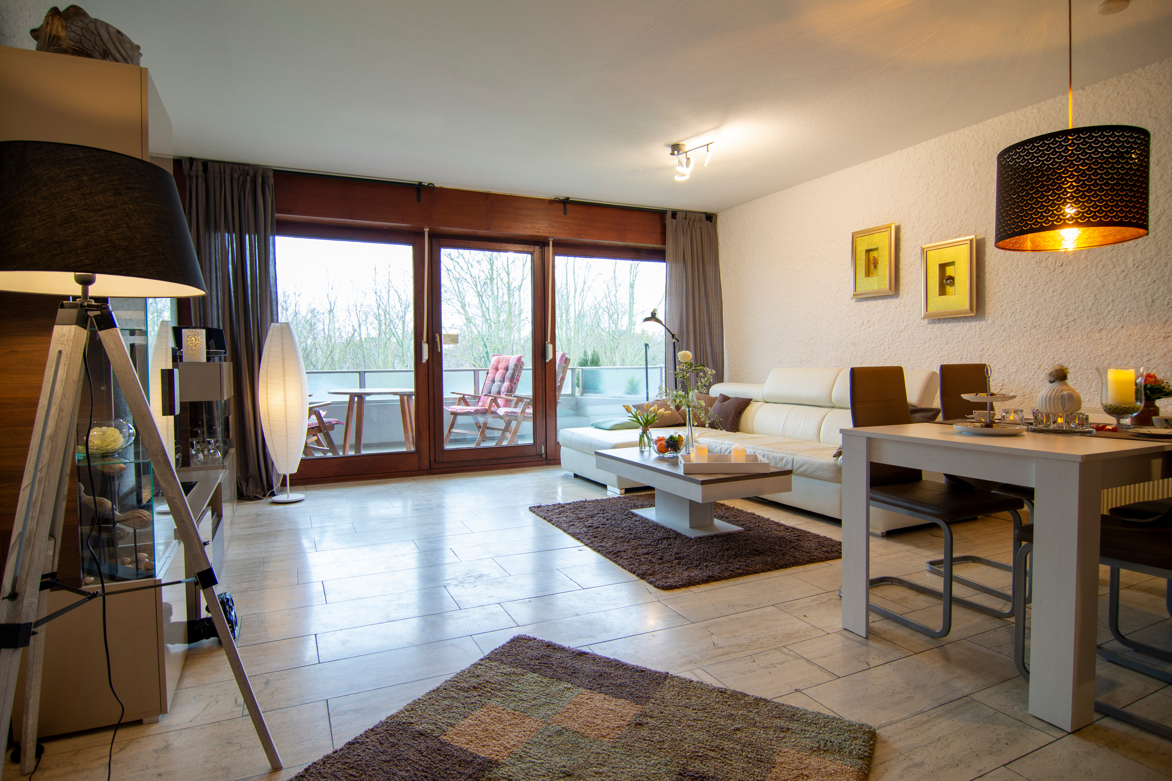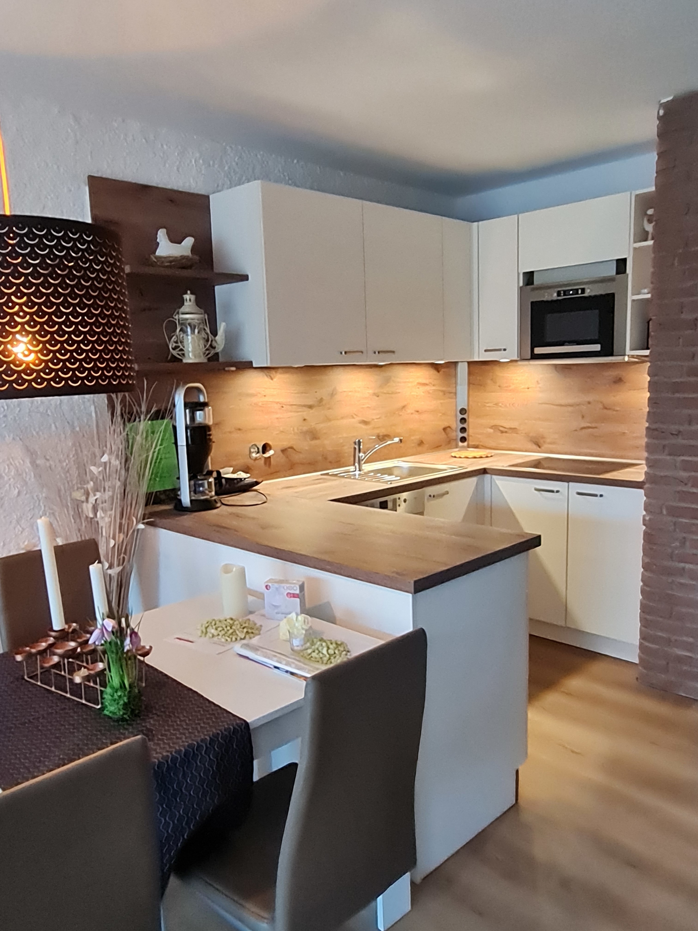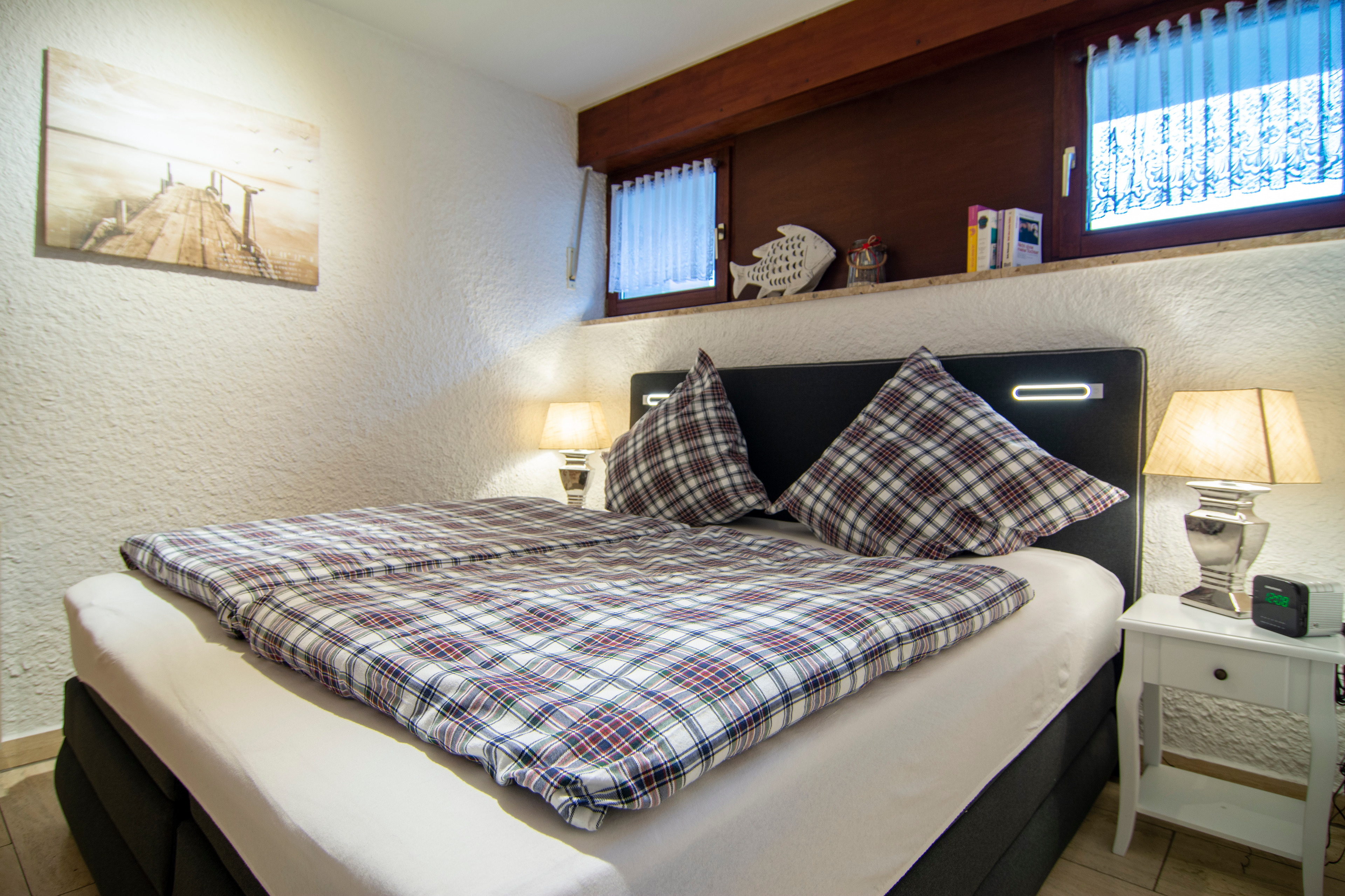 Unsere wunderschöne Ferienwohnung befindet sich im ersten Stock, ist aber auch bequem mit dem Fahrstuhl zu erreichen. Im Wohnzimmer mit einer bequemen Wohnlandschaft, die auch als Schlafsofa zu benutzen ist, lädt unsere Ferienwohnung zum Entspannen oder gemütlichen Fernsehabend (Diagonale 164 cm) ein. Im separaten Schlafzimmer sorgen die neuen Boxspringbetten (für Laken 1,80 x 2,00m) für einen erholsamen Schlaf. In der offenen Wohn-Küche finden Sie eine Küchenzeile vor, die keine Wünsche für die Beköstigung offen lässt, Cerankochfeld, Mikrowelle, Kühl-Geschirrkombination, Geschirrspülmaschine und vieles mehr. Ein großer Balkon mit bequemen Möbeln lässt zum Frühstücken bei schönem Wetter ein. Für Ihr Fahrzeug steht ein Tiefgaragenstellplatz zur Verfügung, der über das Treppenhaus oder dem Fahrstuhl zu erreichen ist. Die Energie- und Endreinigungskosten sind im Preis enthalten. Kinderbett und Hochstuhl sind vorhanden, Bettwäsche kann pro Person und als Paket mit Handtüchern geliehen werden. Es ist kein Haustier erlaubt.