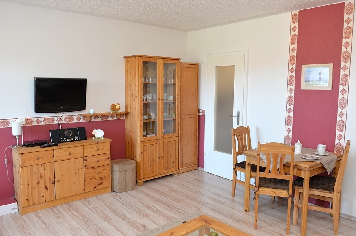 Diese 36 qm große Ferienwohnung liegt im ersten Obergeschoss und ist für 2 bis 3 Personen geeignet. Sie bietet ein separates Schlafzimmer mit Doppelbett sowie eine zweite Schlafmöglichkeit im Wohnbereich mit Schlafcouch (1,60x2,00) mit Lattenrost. Das Wohn/Esszimmer hat eine Essecke, Sat TV / Radio und einen Zugang zum möblierten Balkon. Die Küche ist mit einer Küchenzeile, 2 Plattenherd und Mikrowelle mit Heißluft usw. ausgestattet. Im Badezimmer ist eine Wanne, Waschbecken und WC. Sie haben einen PKW-Stellplatz.