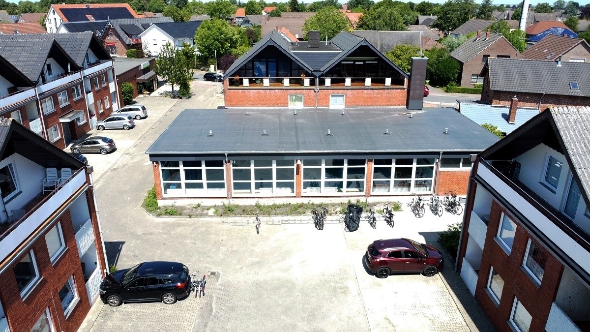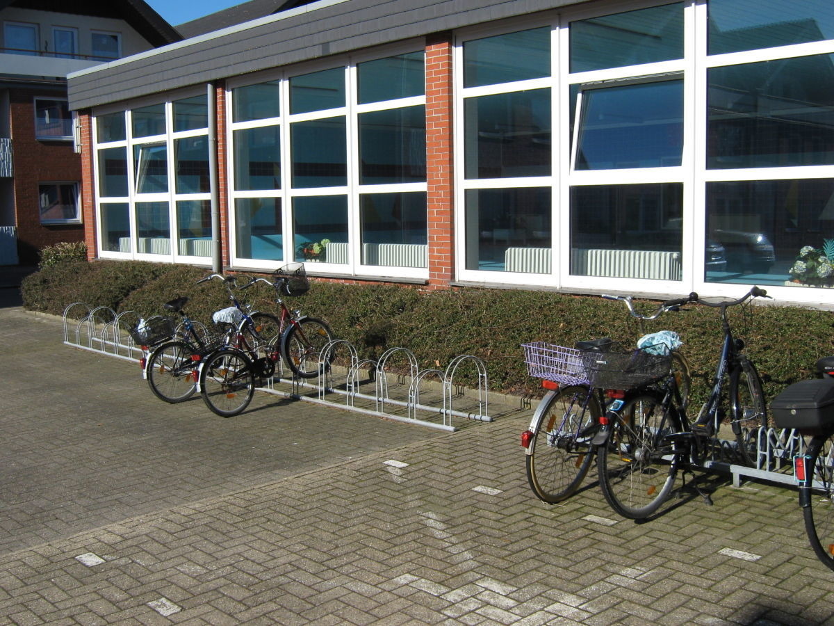Fahrräder können am Hallenbad im Fahrradständer abgestellt werden.
