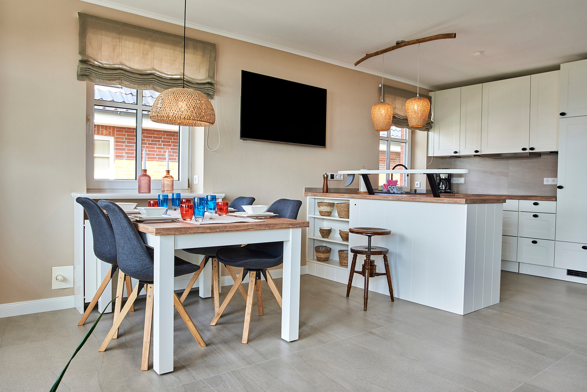 Das Haus Hardina am Stockmannsweg 11 liegt direkt am Strand in 1.Reihe mit Blick auf die nordfriesischen Halligen. Die einmalige Lage, das traumhaft schöne Haus und die darin befindliche Wohnung Haus Hardina Whg. 3 lassen Sie auch in der Wohnung Nordseeluft schnuppern und bietet den perfekten Ausgangsort für viele Unternehmungen. Schwimmbad, Innenstadt, Bäcker, Schlachter, Strandcafe und Pizzeria befinden sich in der Nähe und natürlich unmittelbar vor der Haustür der schöne Südstrand und das Meer. Die großzügige, allergikerfreundliche Obergeschoßwohnung (ca. 65 m) liegt im ersten Stock eines 6 Parteien Hauses und verspricht traumhafte Urlaubstage. Der großzügige und moderne Wohnbereich ist unterteilt in eine gemütliche Sitzecke mit WLAN, Flachbild-TV und Ofen, der auch an kalten Tagen eine heimelige Atmosphäre schafft, eine offene Küche mit Ceranfeld, Backofen, Kaffeemaschine (Senseo Duo) Mikrowelle und Geschirrspüler und einen freundlichen Essplatz. Zwei große Terrassentüren machen den Raum hell und einladend und ermöglichen den Zugang zu dem Balkon, der sich fast über die gesamte Wohnungsseite erstreckt. Hier können Sie wunderbar die Sonne genießen und dem Schauspiel von Ebbe und Flut zuschauen. Vom Flur aus gelangen Sie in das hochwertige Badezimmer mit Dusche und Badewanne. Die beiden Schlafräume sind mit einem Doppelbett und zwei Einzelbetten ausgestattet. Im Elternschlafzimmer kann ein Babybett zugestellt werden. Die Wohnung verfügt über einen Stellplatz für Ihren PKW und zur gemeinschaftlichen Nutzung stehen Waschmaschine und Trockner gegen eine Gebühr zur Verfügung. Hier können Sie wirklich entspannen und die Schönheit der Nordsee und des Wattenmeeres genießen. Sportmöglichkeiten wie Surfen, Segeln und Trampolinspringen befinden sich in nächster Nähe. Jeden Tag haben Sie durch die Gezeiten eine andere abwechslungsreiche beeindruckende Aussicht.
