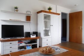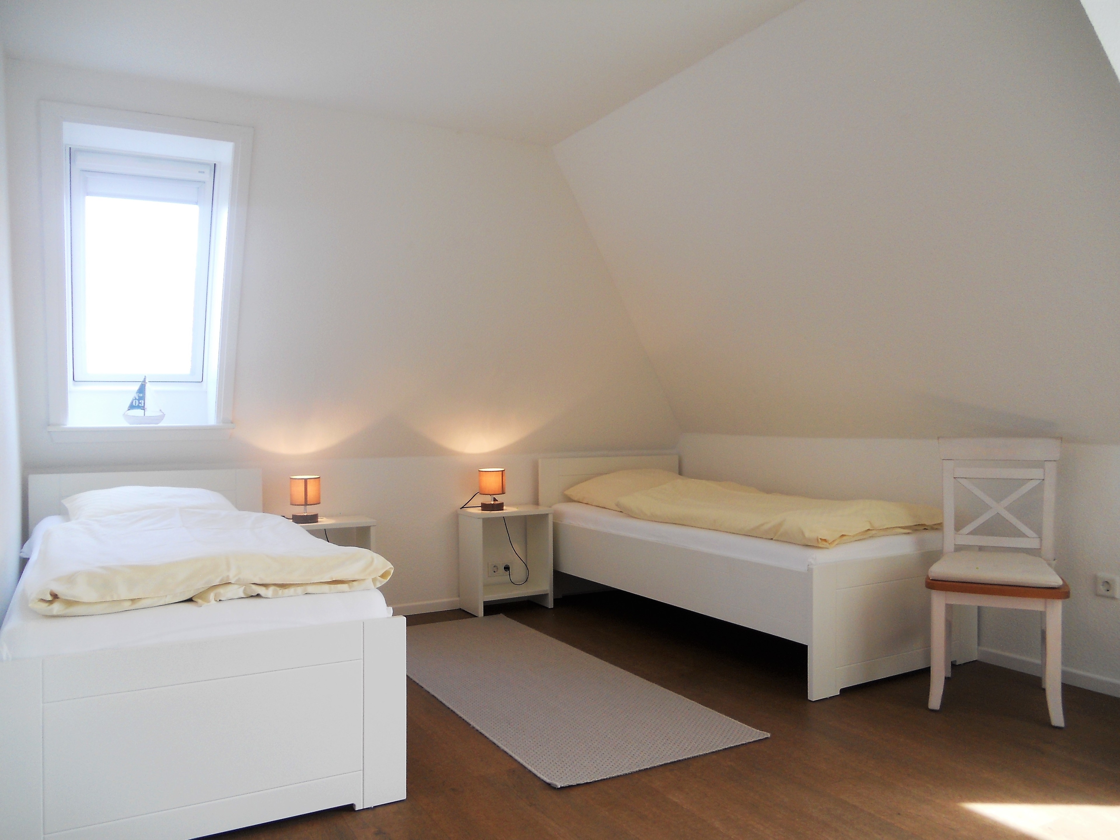 Freundlich und Modern, gepflegt und sauber präsentiert sich unsere schöne Obergeschosswohnung Therke mit weißen Möbeln und schönen Akzenten. Das Wohnzimmer mit der bequemen Sitzgruppe, Flachbild-TV, WLAN und einem integrierten Essplatz lädt zum Verweilen ein. Von hier aus gelangen Sie auch auf den Balkon mit Gartenmöbeln, wo SIe ungestört die frische Nordseebrise genießen können. Die separte Küche ist vollausgestattet mit Ceranfeldherd und Backofen, Mikrowelle, Geschirrspüler und vielem mehr. So macht das Kochen im Urlaub richtig Spaß. Das hellgeflieste Bad mit Fenster verfügt über einen Handtuchheizkörper und eine Dusche sowie eine Waschmaschine, die Sie kostenfrei nutzen dürfen. Für erholsame Nächten laden dann die beiden Schlafzimmer ein. Eines verfügt über ein Doppelbett mit dreitürigem Kleiderschrank, das andere über zwei Einzelbetten. Umgeben von einem schönen Garten, den Kinder zum Austoben nutzen dürfen, ist dies ein Domizil, welches zum Verweilen einlädt. Fußläufig erreichen Sie alle wichtigen Versorgungseinheiten wie den Supermarkt, Bäcker, Schlachter, Restaurants und Cafés sowie natürlich auch den Föhrer Strand. Genießen Sie Ihre Ferientage in diesem empfehlenswertem Domizil!