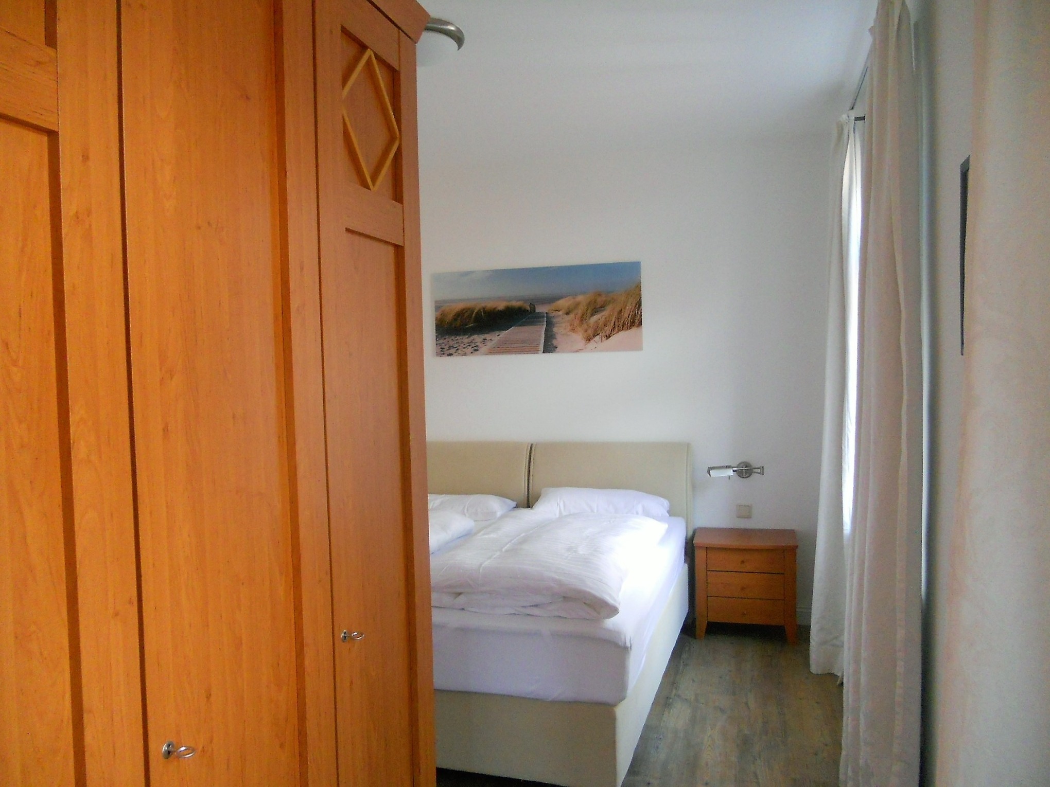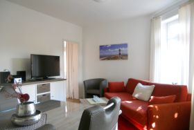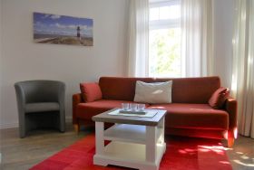 Das Galeriehaus ist ein historisches Gebäude von Wyk, welches außen immer noch den einstigen Charme von vergangenen Zeiten aufweist, doch innerhalb der Fassade umgebaut und renoviert wurde. Jetzt befinden sich im Galeriehaus 4 Wohnungen für je 2 Personen. Die zentrale Lage zur Innenstadt, dem Strand und der Nordsee, dem Meerwasserwellenbad Aqua Föhr und zu den Einkaufläden machen unsere Wohnungen im Galeriehaus sehr beliebt. Unsere kleine, hübsche Obergeschoßwohnung Monet eignet sich mit 40 qm ideal für 2 Personen. Der offene Wohnraum mit integrierter Küchenzeile und Essplatz ist hell und freundlich gestaltet. Die großzügige Essecke bietet Platz für ein reichhaltiges Frühstück am Morgen und abends lädt die bequeme Couch dazu ein, gemeinsam einen Film zu schauen oder ein gutes Buch zu lesen. Die kleine Küchenzeile ist gut ausgestattet und verfügt über einen Ceranfeldherd mit Backofen, einen Kühlschrank mit Gefrierfach; Wasserkocher und Kaffeemaschine sind natürlich ebenfalls vorhanden. Das Badezimmer ist funktional hergerichtet mit Dusche, Handtuchheizung, Schminkspiegel und Föhn. Das Schlafzimmer, ausgestattet mit Boxspringbett und geräumigem Kleiderschrank, ist nach hinten hinaus gelegen und lädt zu schönen Träumen ein.