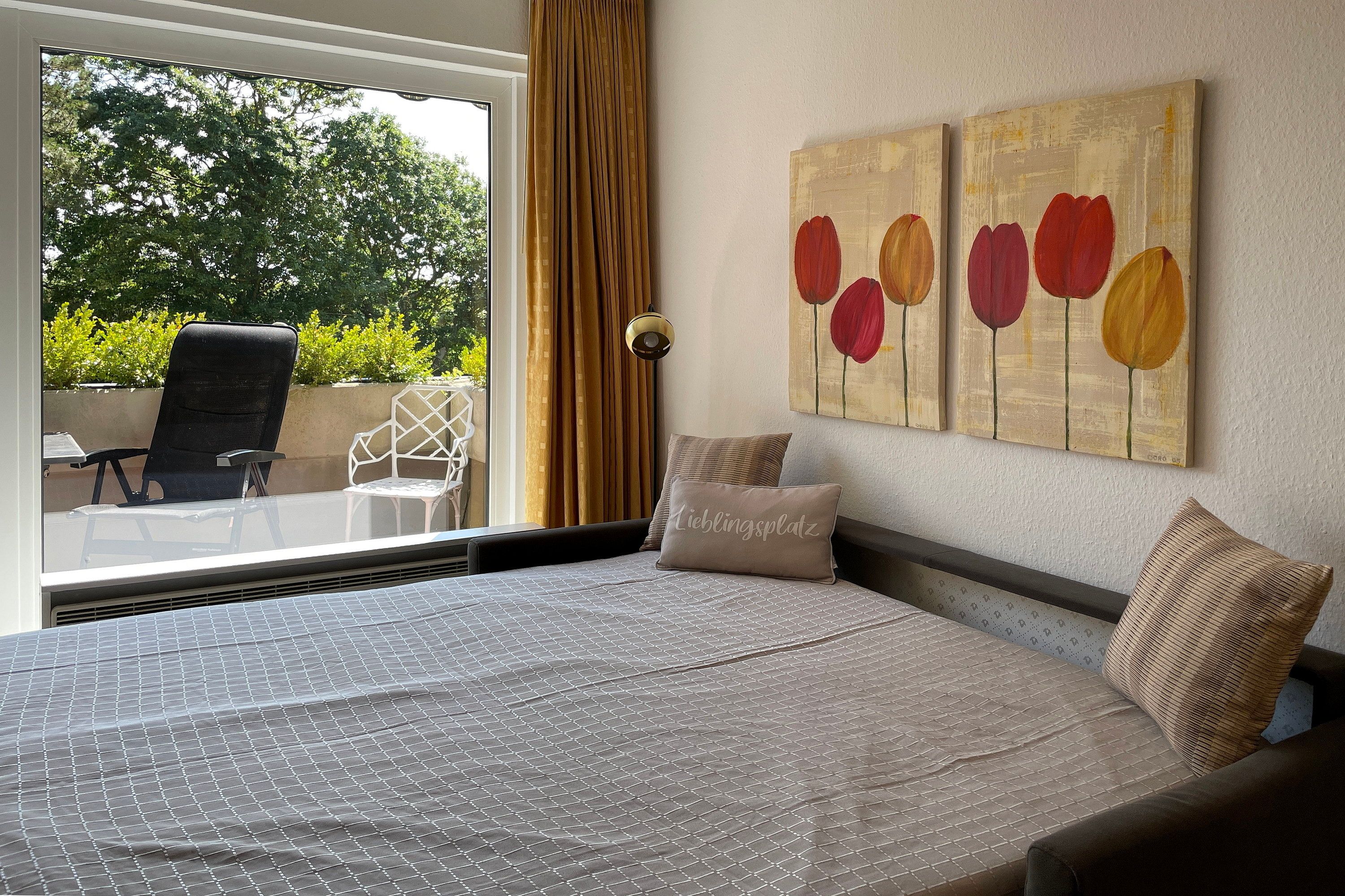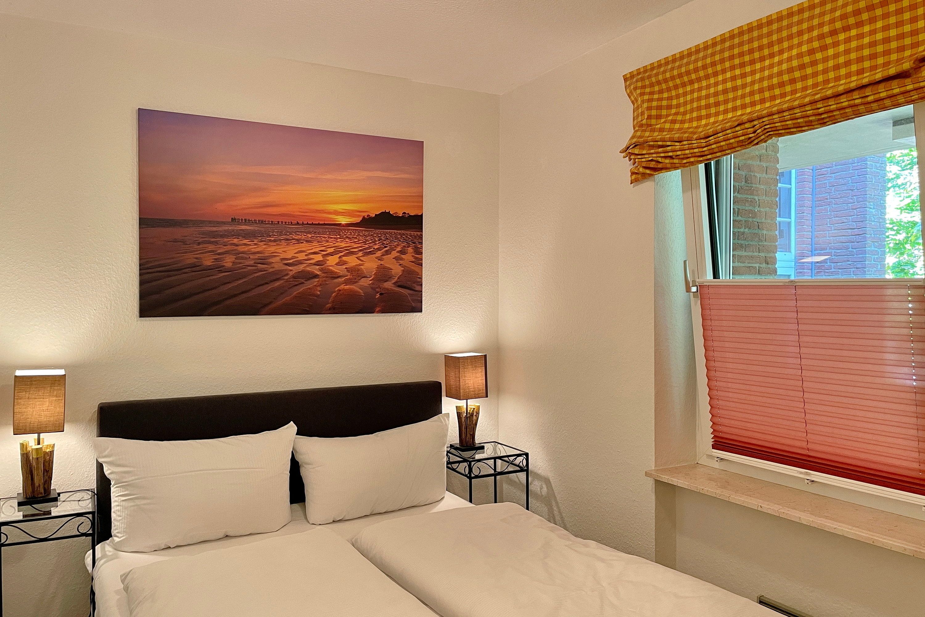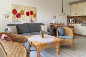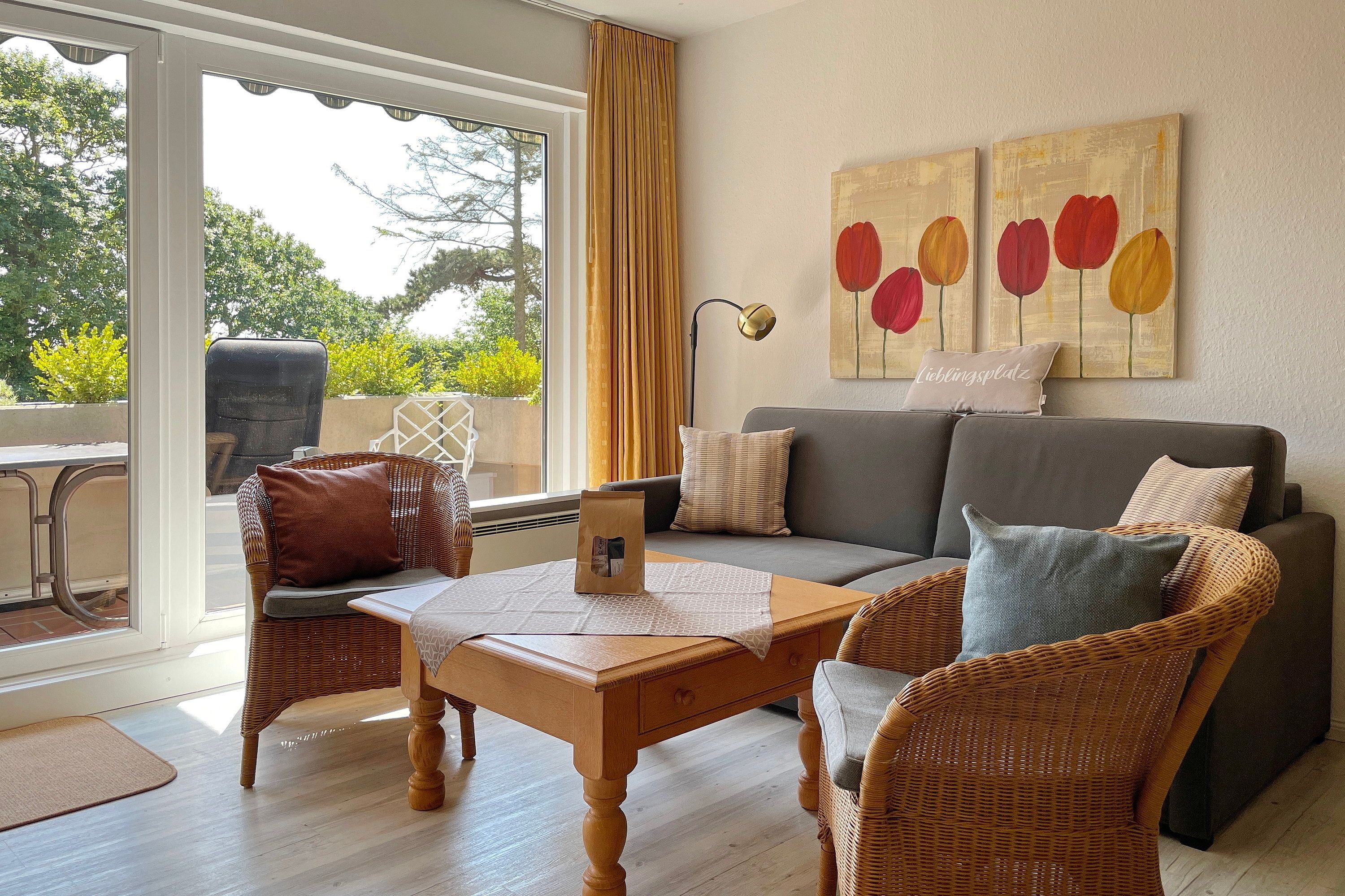 Unsere einladende Wohnung Watt'n Blick befindet sich nahe des Wyker Leuchtturms nur einen Katzensprung vom Strand entfernt und eignet sich für 2 Personen hervorragend für einen erholsamen Urlaub. Das Wohnzimmer mit hochwertiger Schlafcouch (170x190cm), integrierter Essecke und gut ausgestatteter Küchenzeile ist mit WLAN, Internet- TV und einer Stereoanlage sowie einer kleinen Auswahl an Büchern ausgestattet. Von hier aus gelangen Sie auf den Balkon mit einer automatisch ausfahrbaren Markise. Das kleine Duschbad mit Handtuchheizung ist funktional eingerichtet und im separaten Schlafzimmer mit Doppelbett (140 x 200 cm) können Sie ruhige Nächte erleben. Waschmaschine und Trockner stehen zur gemeinschaftlichen Nutzung gegen eine geringe Gebühr bereit und zur Wohnung gehört ein eigener PKW-Stellplatz.