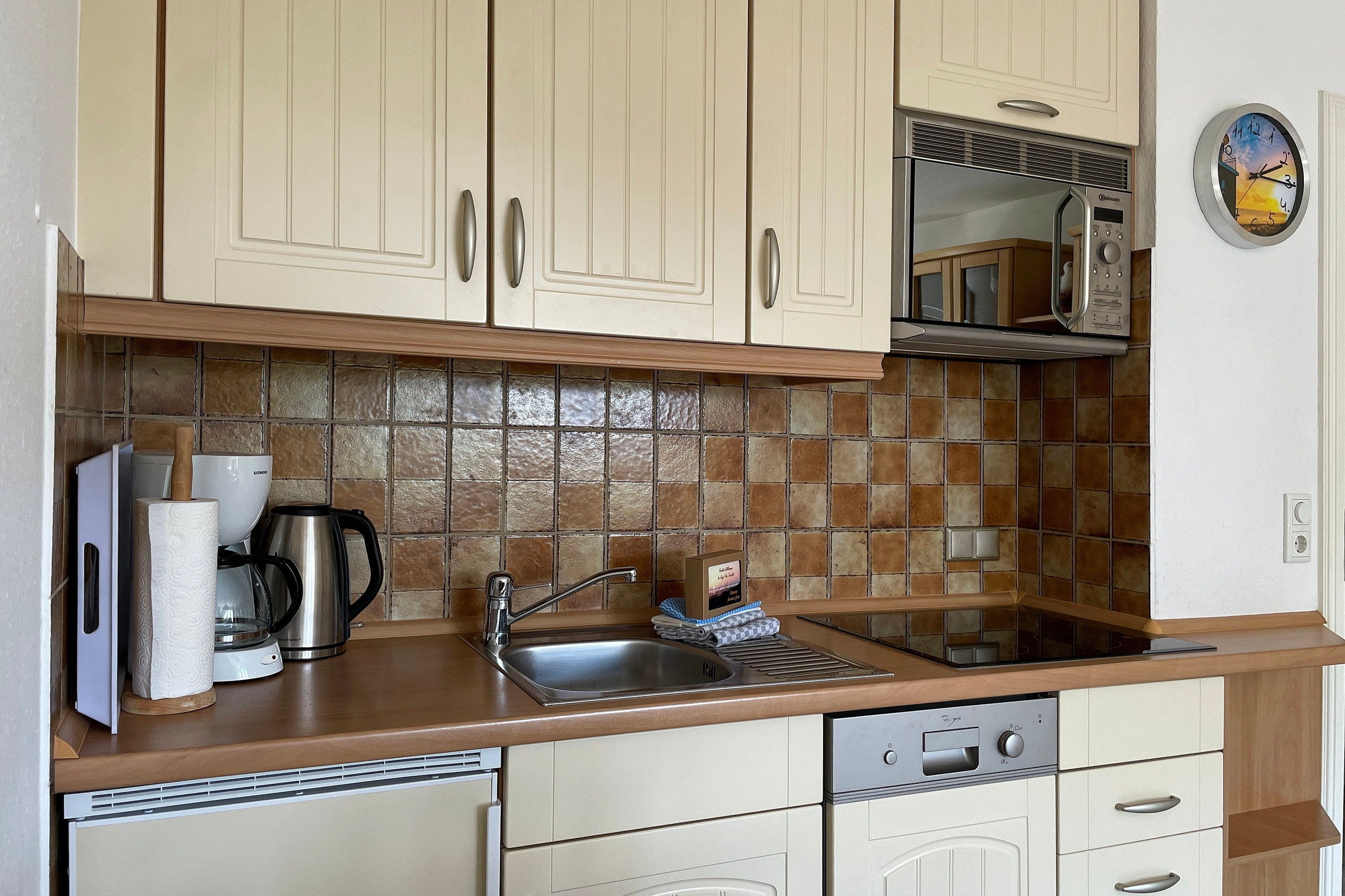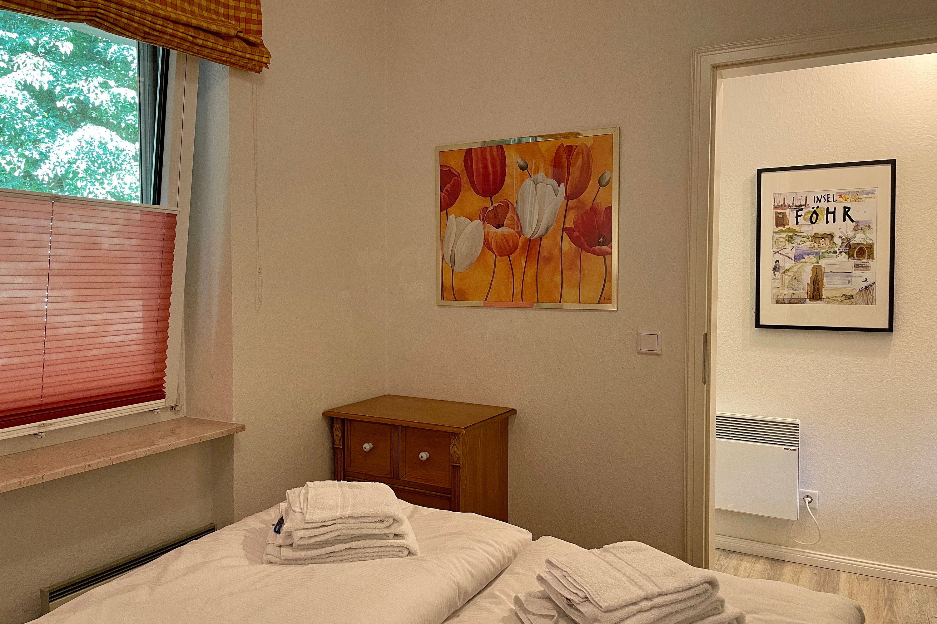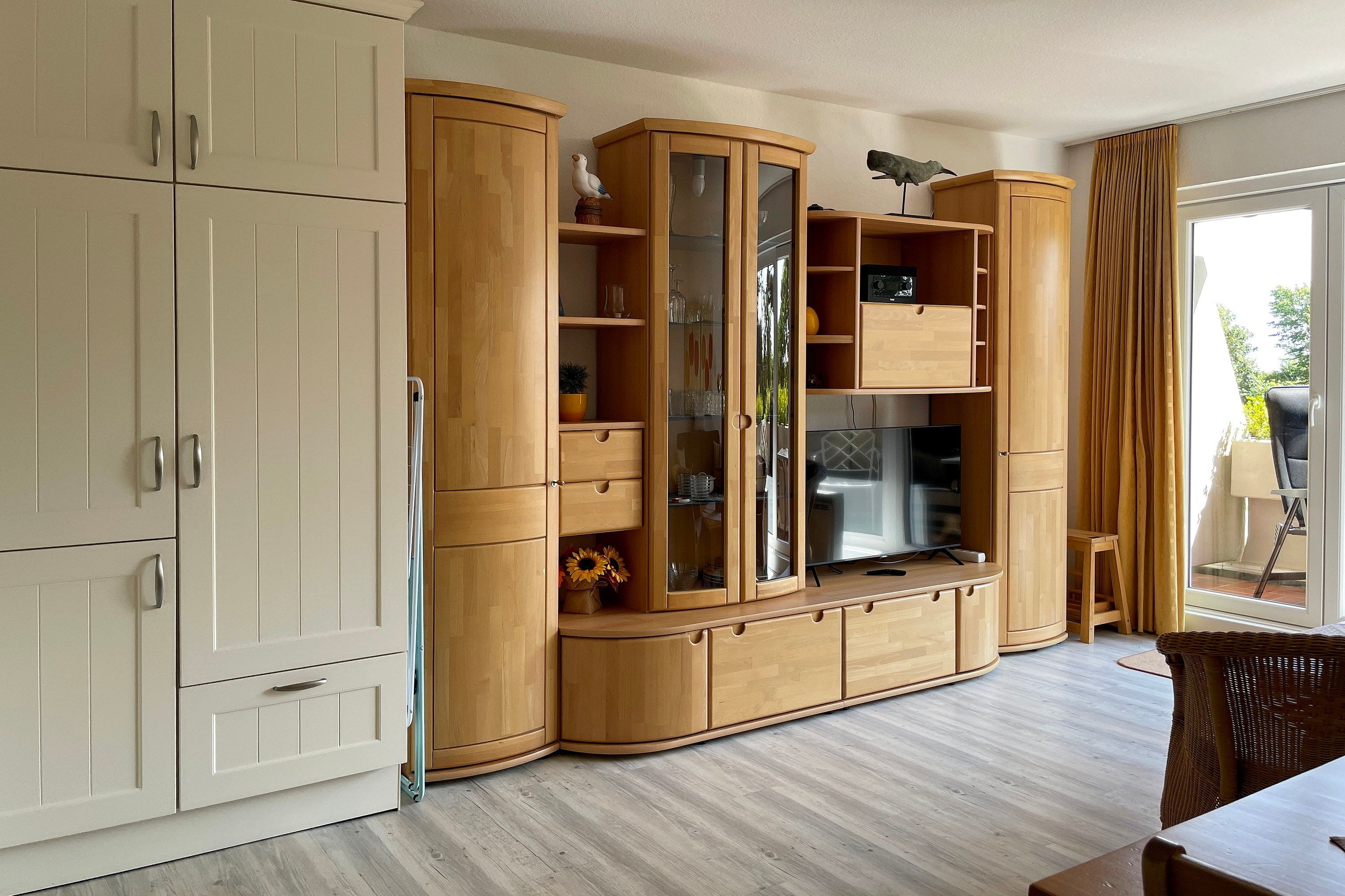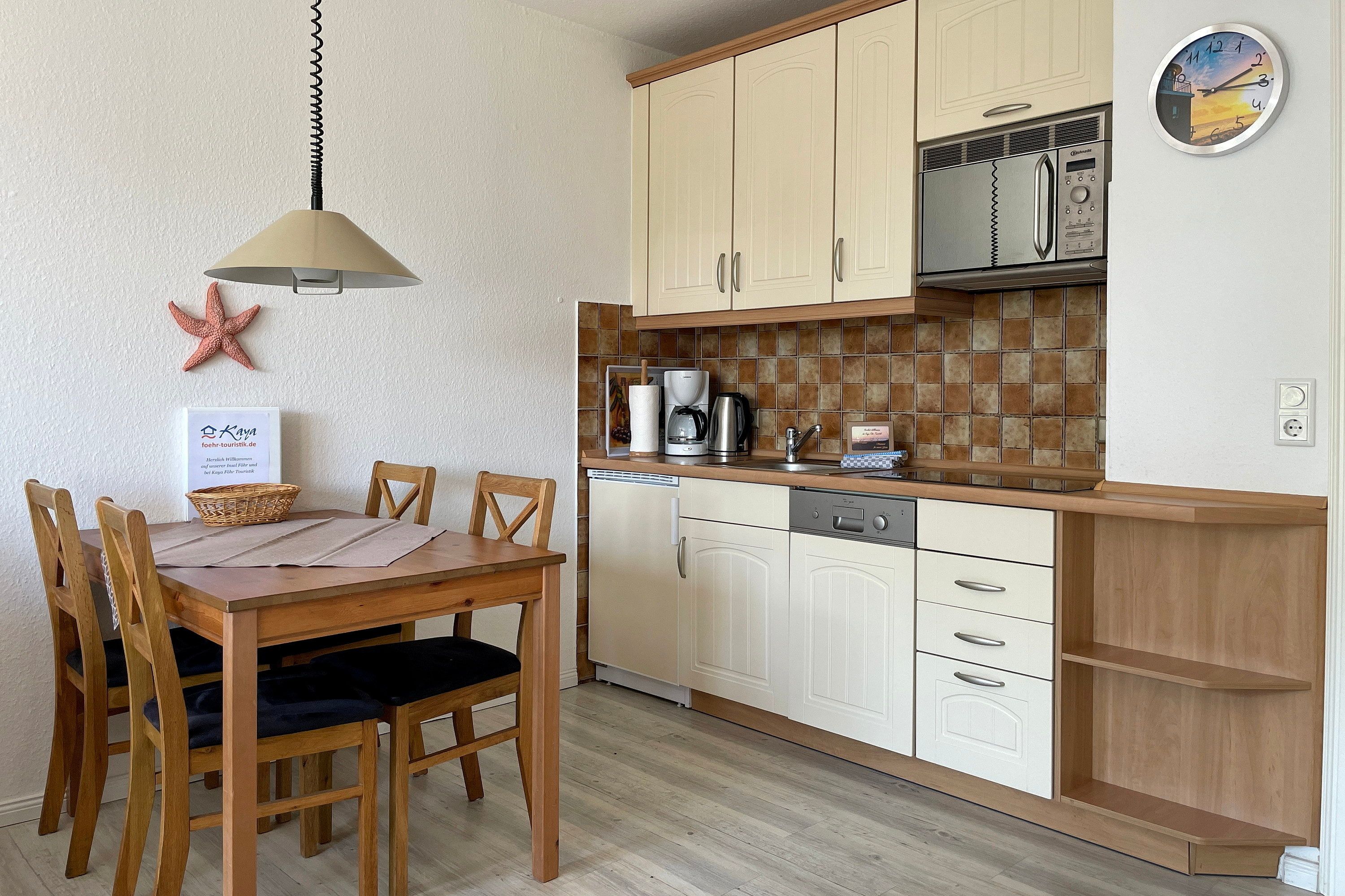 Unsere einladende Wohnung Watt'n Blick befindet sich nahe des Wyker Leuchtturms nur einen Katzensprung vom Strand entfernt und eignet sich für 2 Personen hervorragend für einen erholsamen Urlaub. Das Wohnzimmer mit hochwertiger Schlafcouch (170x190cm), integrierter Essecke und gut ausgestatteter Küchenzeile ist mit WLAN, Internet- TV und einer Stereoanlage sowie einer kleinen Auswahl an Büchern ausgestattet. Von hier aus gelangen Sie auf den Balkon mit einer automatisch ausfahrbaren Markise. Das kleine Duschbad mit Handtuchheizung ist funktional eingerichtet und im separaten Schlafzimmer mit Doppelbett (140 x 200 cm) können Sie ruhige Nächte erleben. Waschmaschine und Trockner stehen zur gemeinschaftlichen Nutzung gegen eine geringe Gebühr bereit und zur Wohnung gehört ein eigener PKW-Stellplatz.