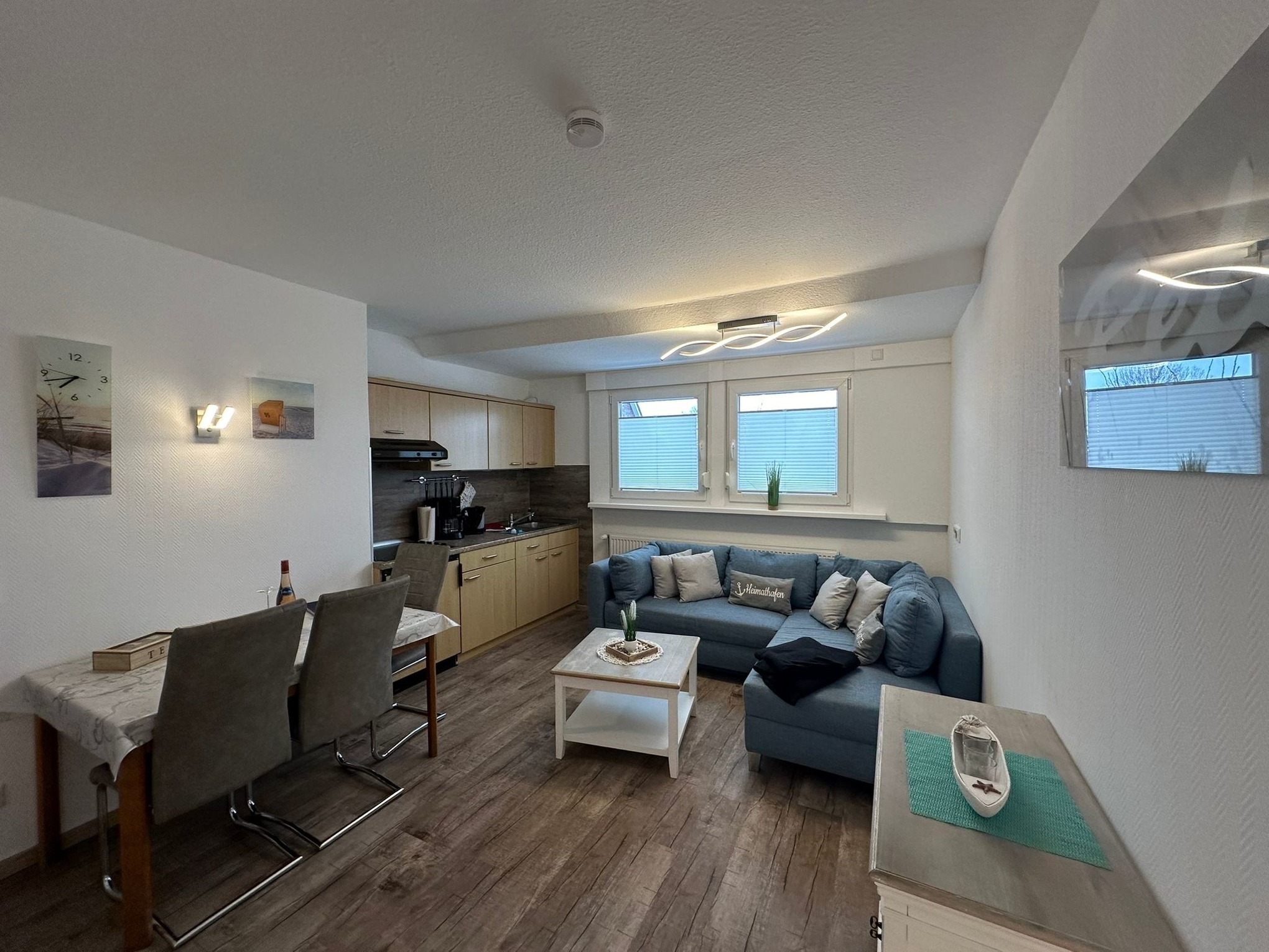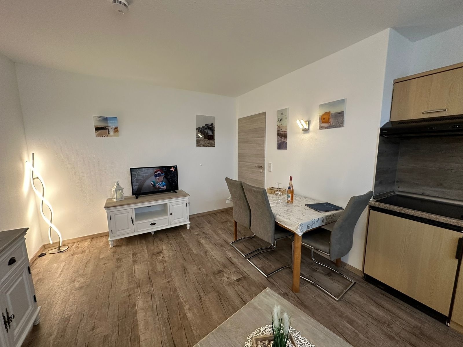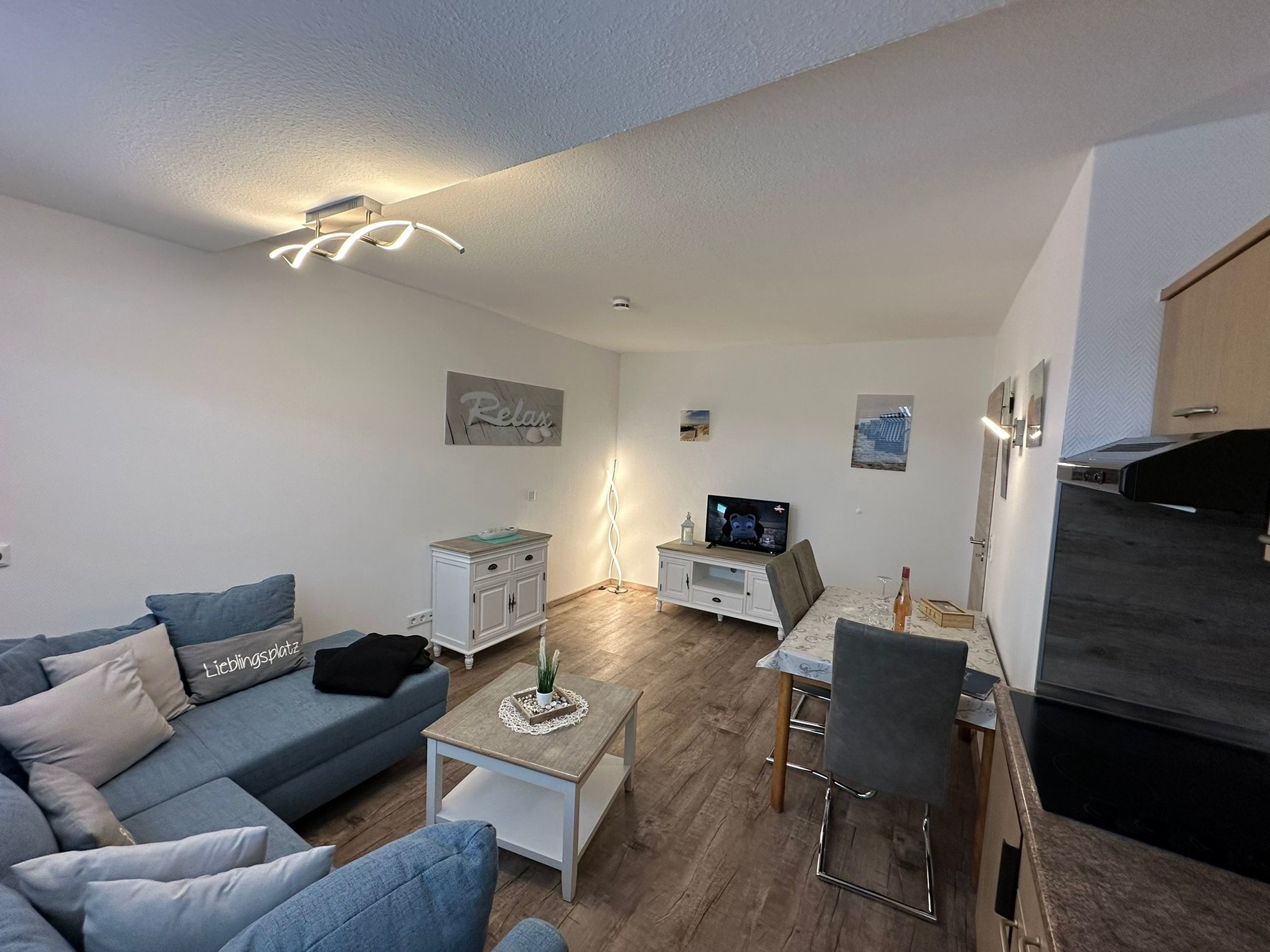 Die Wohnung ist wie folgt aufgeteilt. Wohnraum mit Küchenzeile (Toaster, Wasserkocher, Filter Kaffeemaschine, Kühlschrank mit Eisfach), Sitzgelegenheiten und einem Sofa mit Schlaffunktion, Badezimmer mit Dusche/WC und ein separater Schlafraum mit einem 180*200 Boxspringbett. Gemütlich und praktisch eingerichtet fühlen Sie sich dort sofort heimisch. - Die Wohnung wurde im November 2023 komplett renoviert. Neue Bilder folgen im Frühjahr 2024.