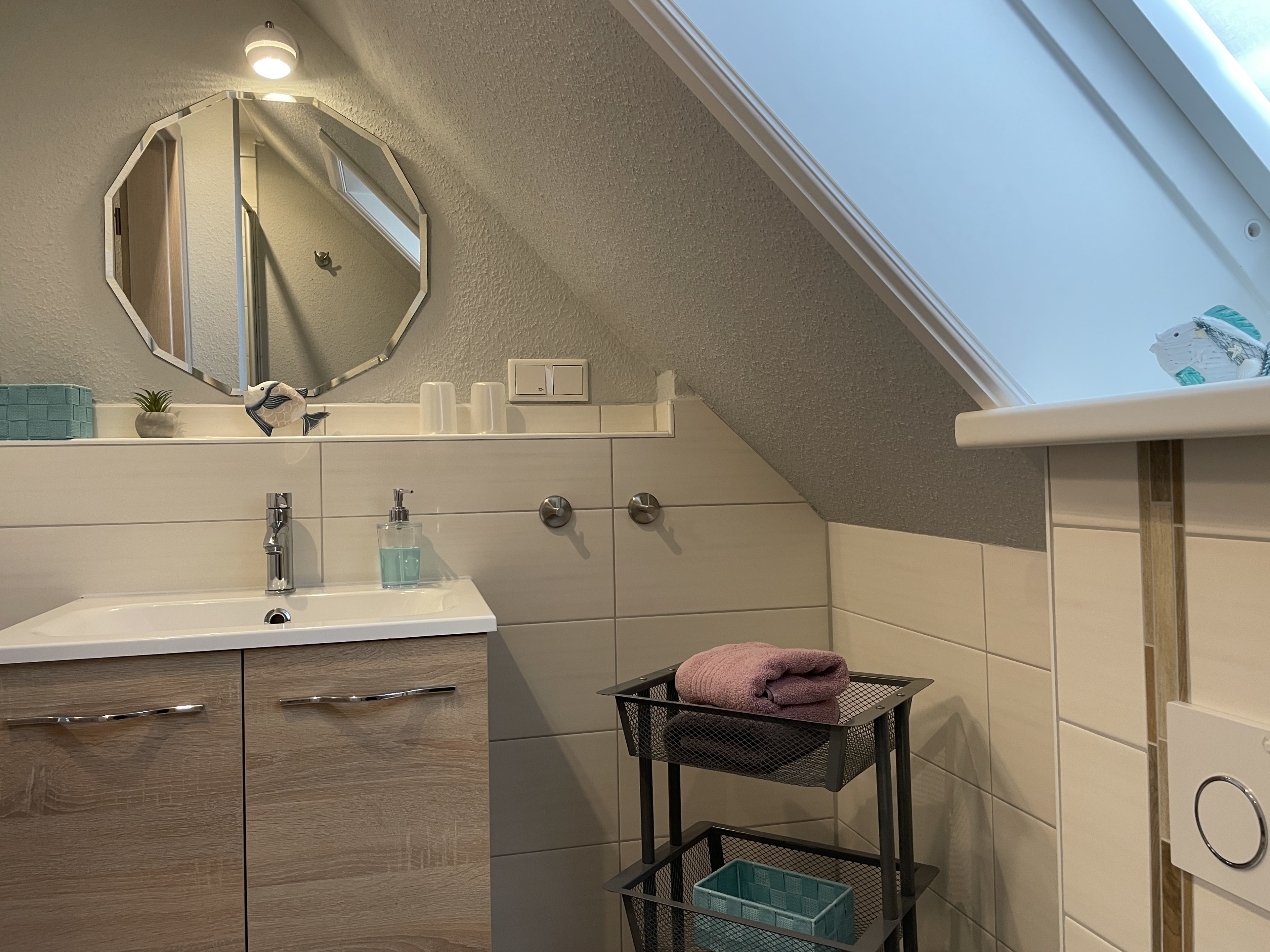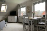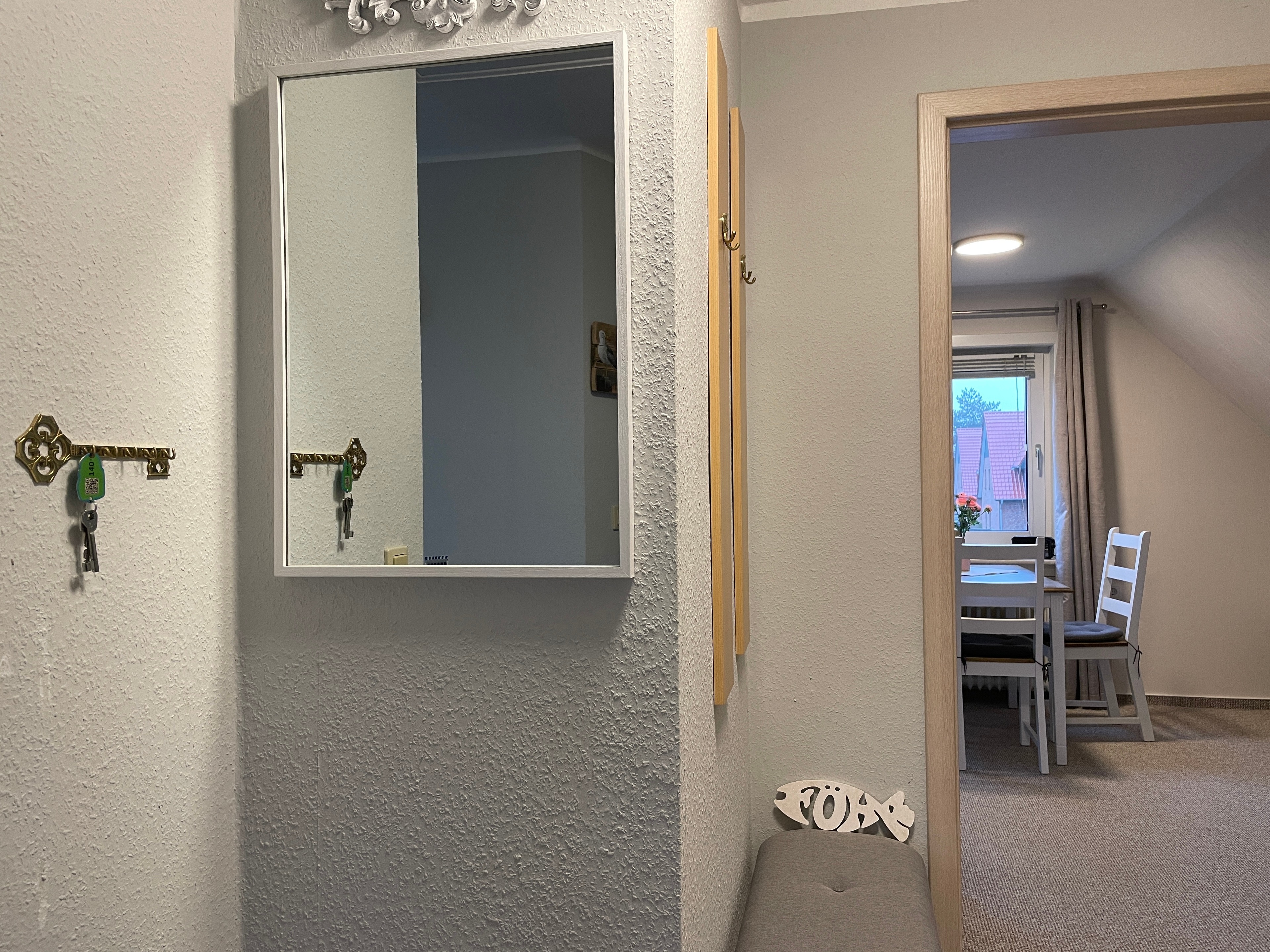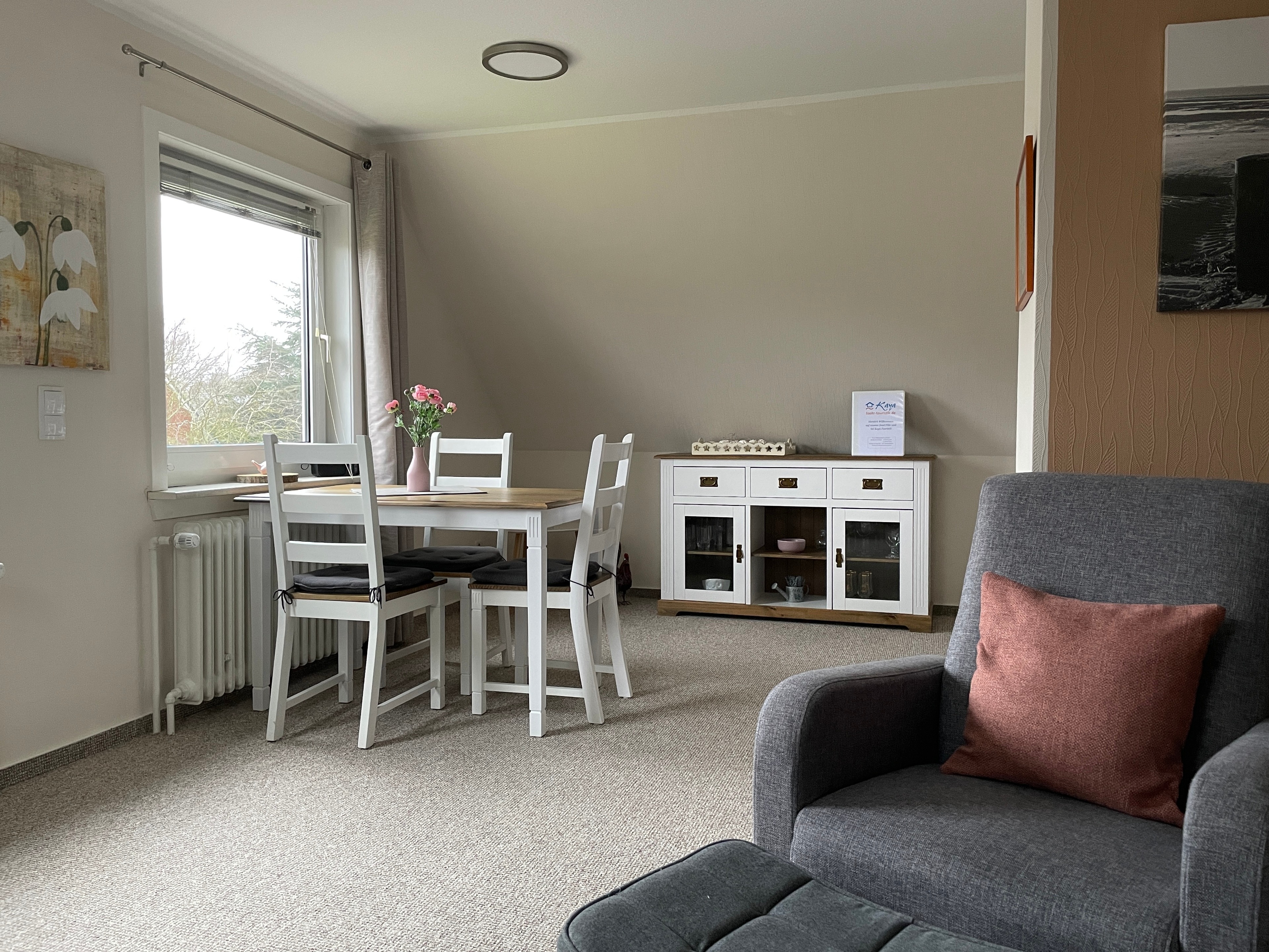 Die Wohnung Sonnenblick liegt im ersten Obergeschoss eines gepflegten Hauses mitten in Wyk. Von hier aus erreichen Sie mit dem Rad schnell den Südstrand, die Innenstadt oder den herrlichen Stadtpark- doch auch die Inseldörfer können gut angesteuert werden.