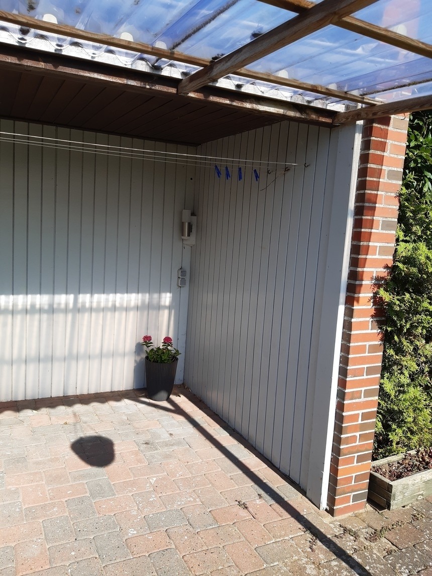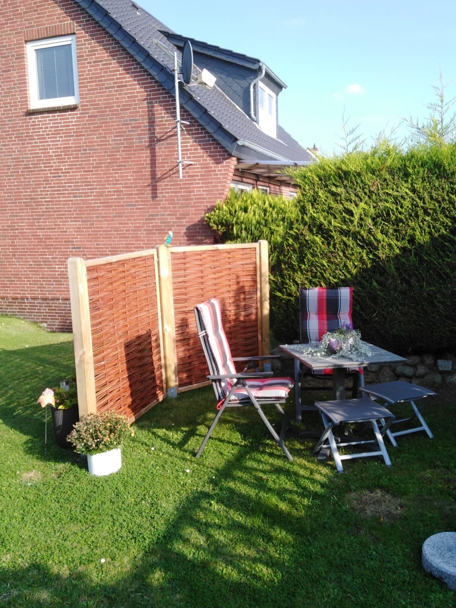 Zur Wohnung Sonnenblick gehört im gemeinschaftlich nutzbarem Garten ein eigener Freisitz mit Gartenmöbel. Unter einer kleinen Überdachung können die Räder abgestellt werden und Ihre Strandtücher auf einer Leine für den nächsten Tag zum Trocknen aufgehängt werden. Einen eigenen Parkplatz gibt es nicht, doch an der Straße bieten sich in der Regel genügend Parkmöglichkeiten.
