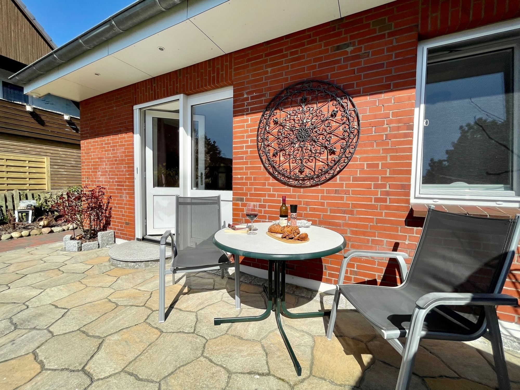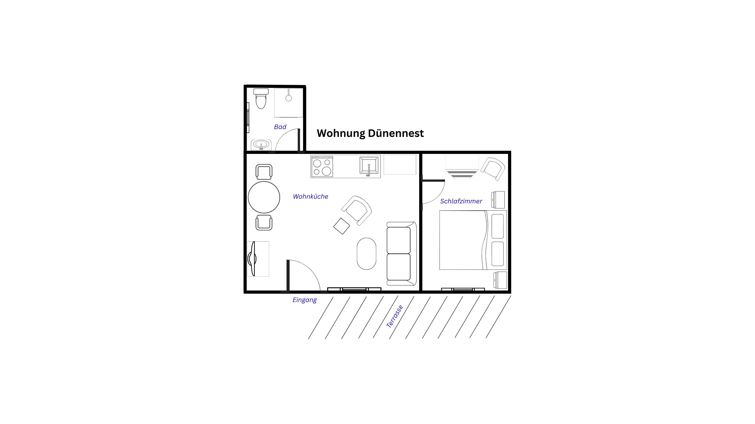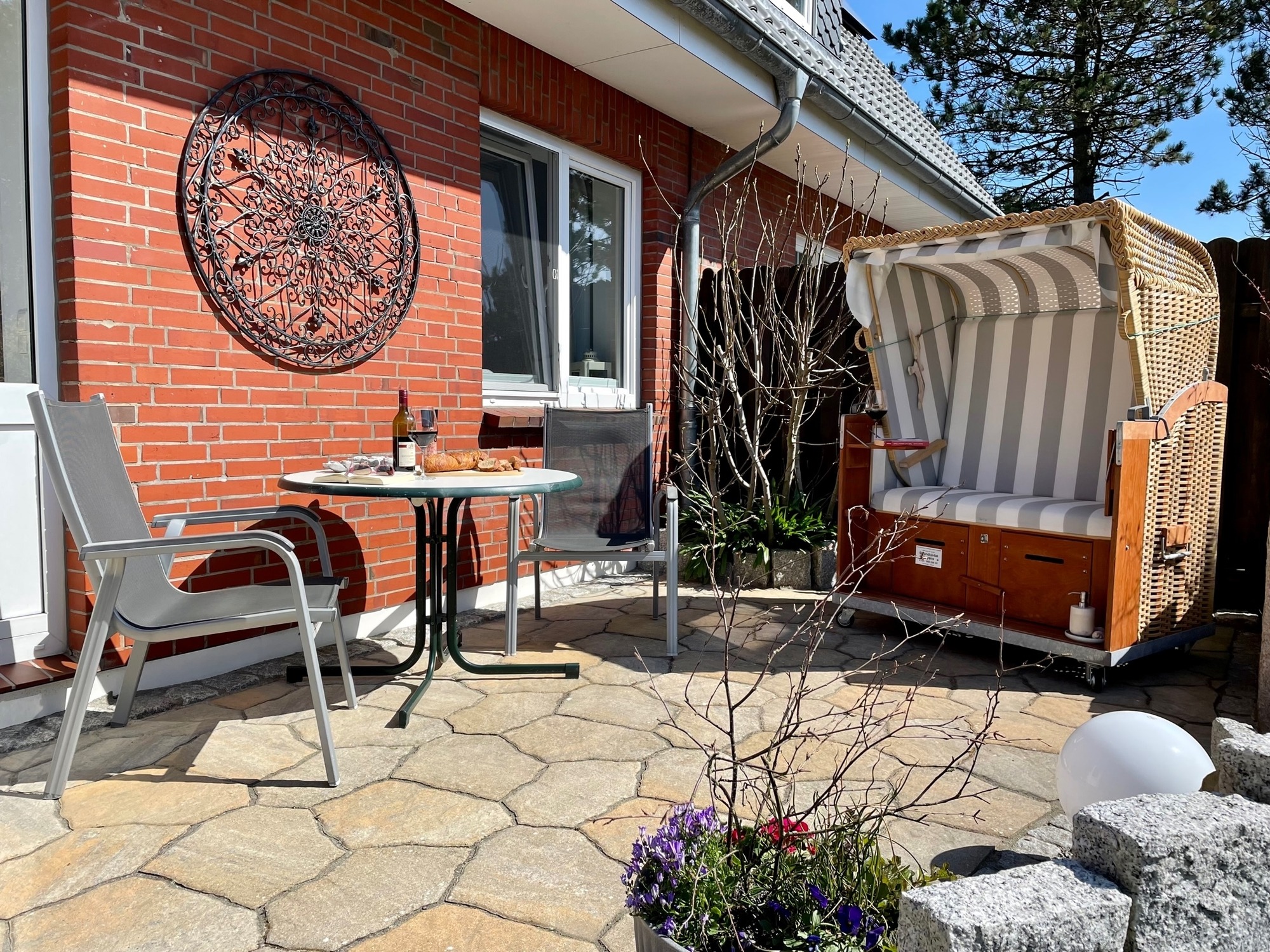 Eine kleine Auszeit gefällig? Die Ferienwohnung Dünennest hat einen separaten Eingang mit eigener Terrasse, Strandkorb und Gartenblick. Sie liegt extrem ruhig und nah an den schönen Dünen Amrums.