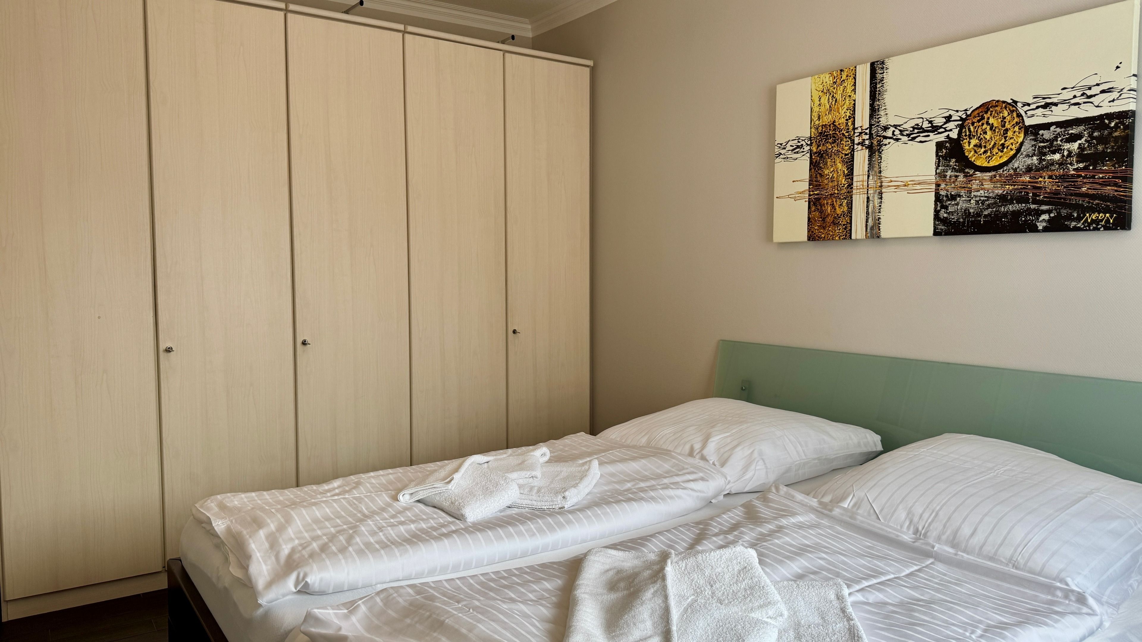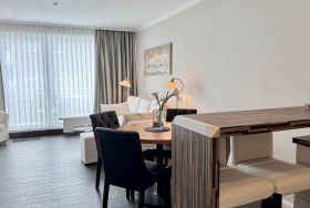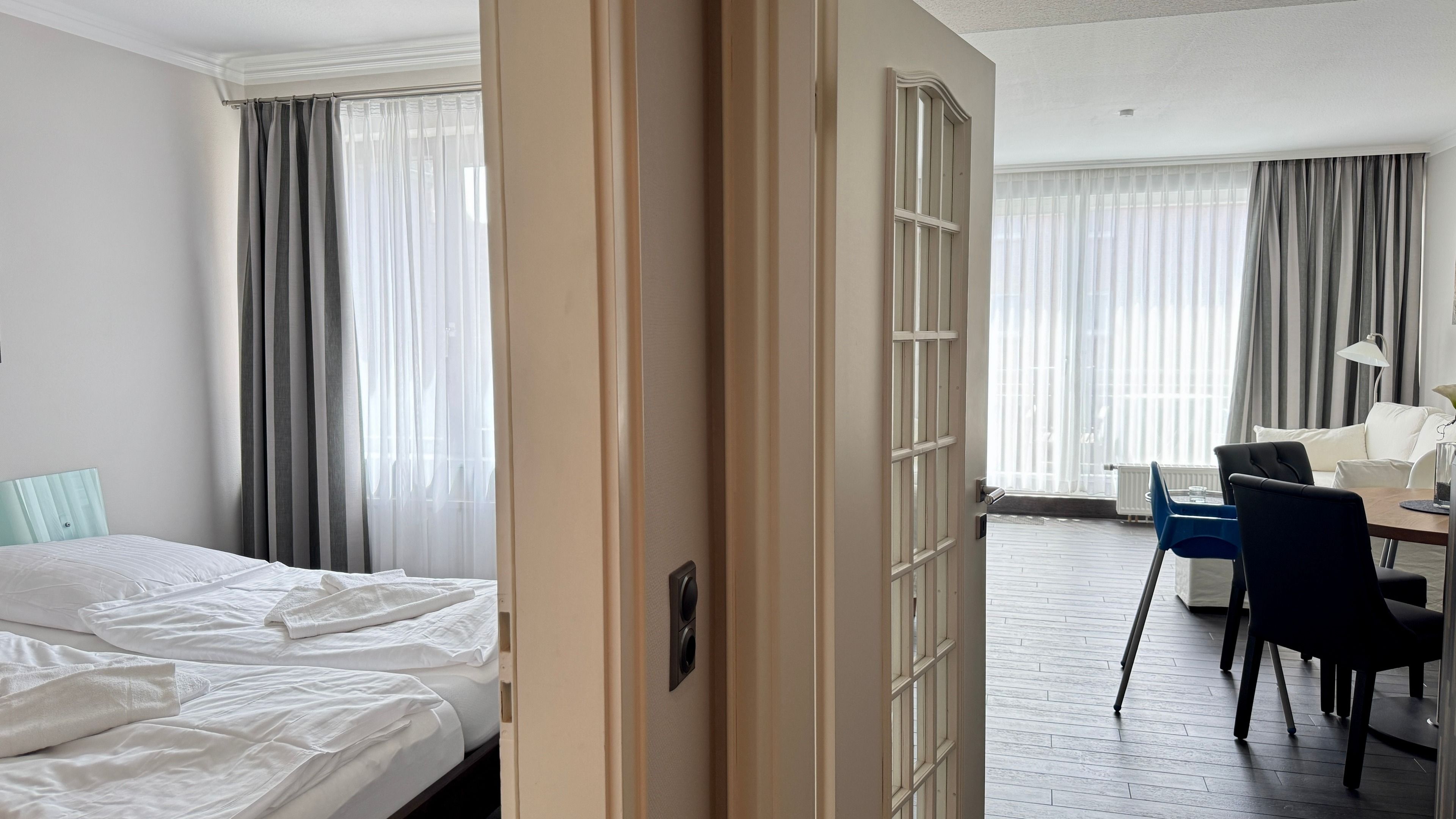 Wir möchten, dass Sie sich bei uns wohlfühlen. Deshalb achten wir darauf, Ihrem gehobenen Anspruch gerecht zu werden und Ihr Feriendomizil entsprechend auszustatten.Das Appartement für maximal zwei Personen verfügt über ein großzügiges Wohnzimmer mit Essecke.Das Doppelbett entspricht ebenso der gängigen Comforthöhe wie die Toilette im Bad.
