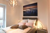 Das Schlafzimmer mit einem Kingsize Boxspringbett (180 X 200 cm) und das Badezimmer lassen ebenso keine Wünsche offen.