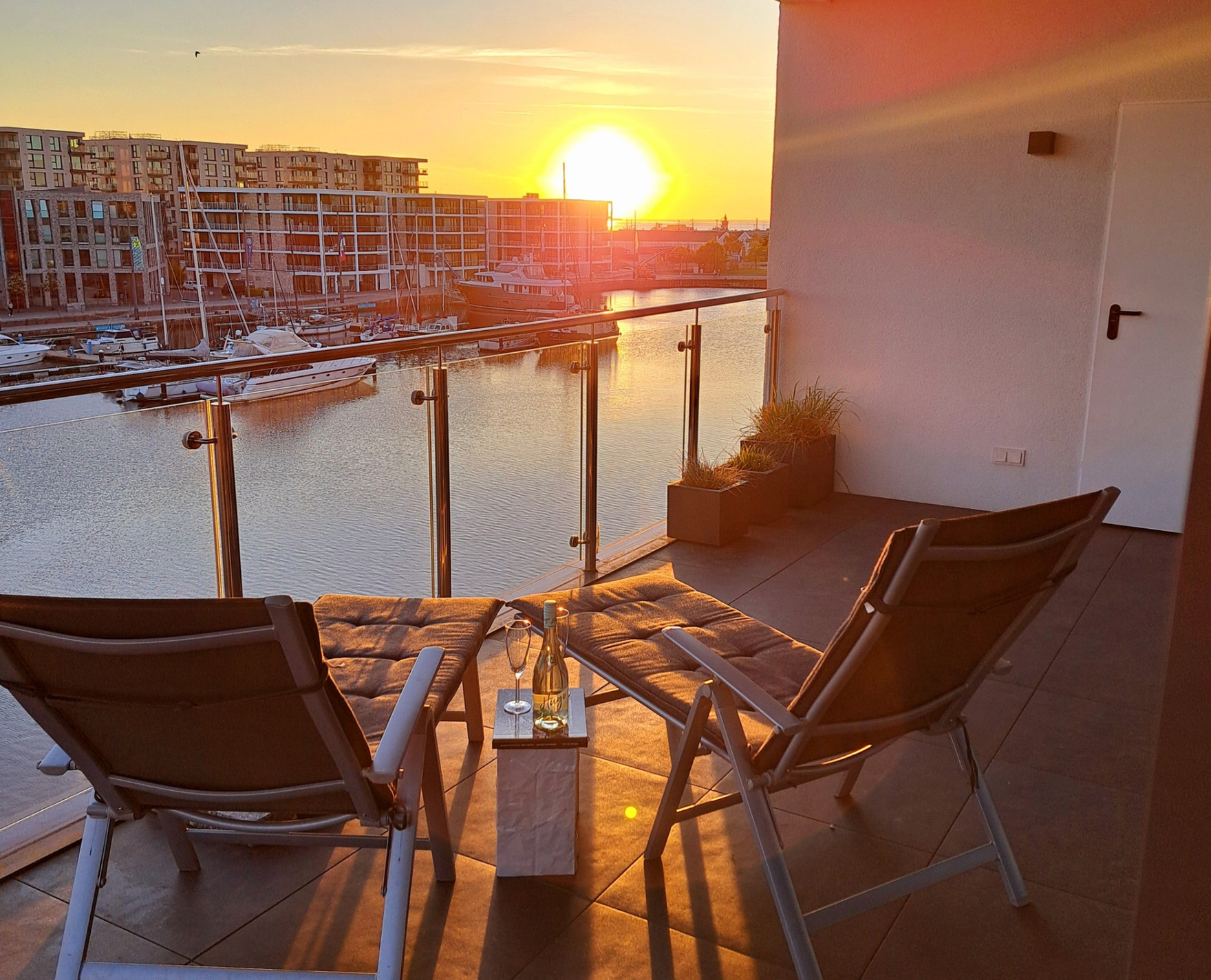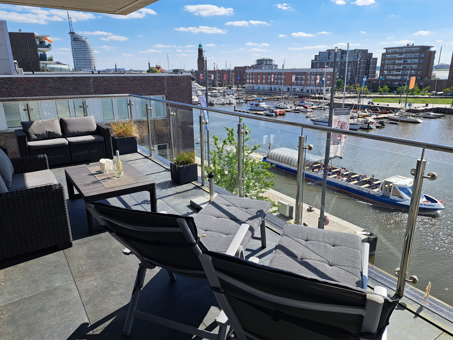 Sonnendeck und ist direkt in den Hafenwelten gelegen. Die Premium-Unterkunft ist ein perfektes Erlebnis mit Hafen- und Meerblickblick.
