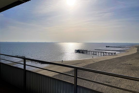 Traumhafte Aussichten auf den Föhrer Strand und das Wattenmeer erwarten Sie direkt aus der Wohnung des Atlantischen Hofs in der Königsstraße in Wyk. Erleben Sie direkt nach dem Aufstehen vom Balkon aus das schöne Wechselspiel von Ebbe und Flut und genießen Sie dabei die frische Föhrer Nordseebrise..
