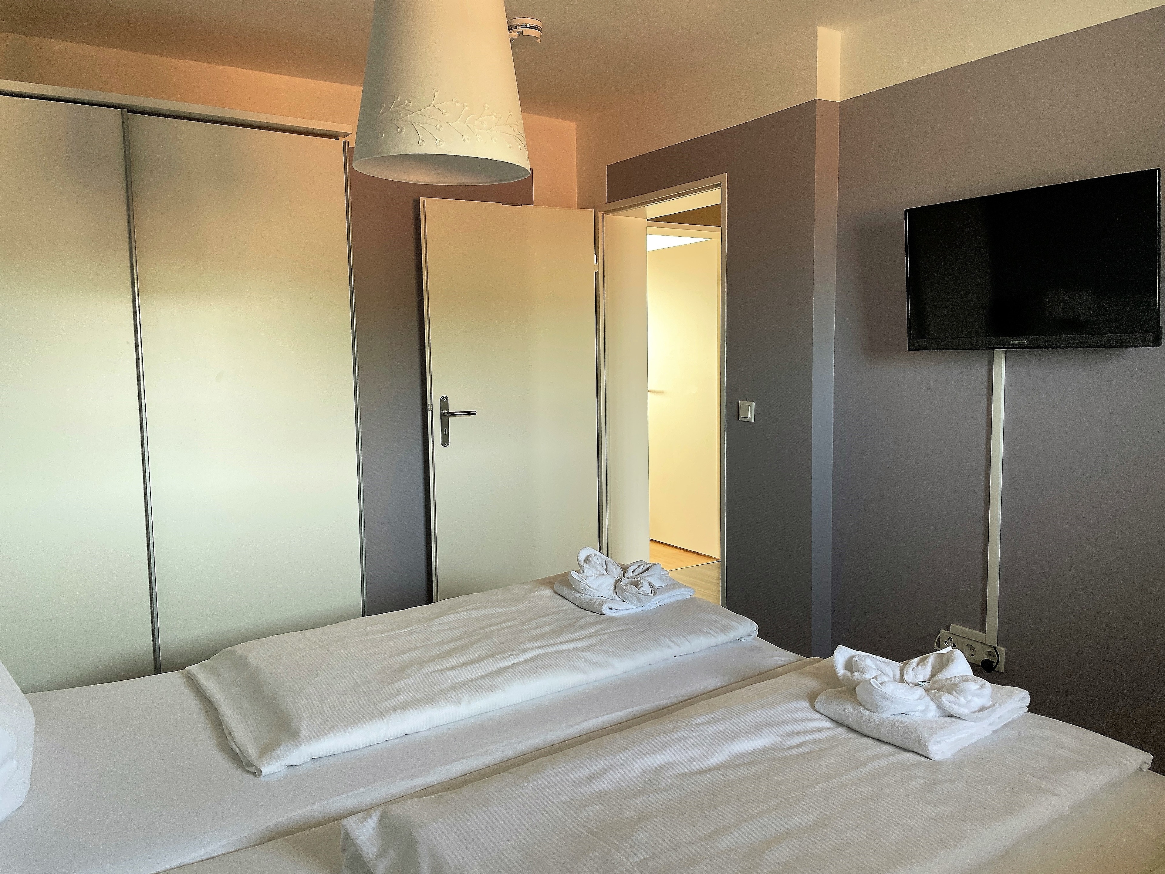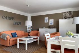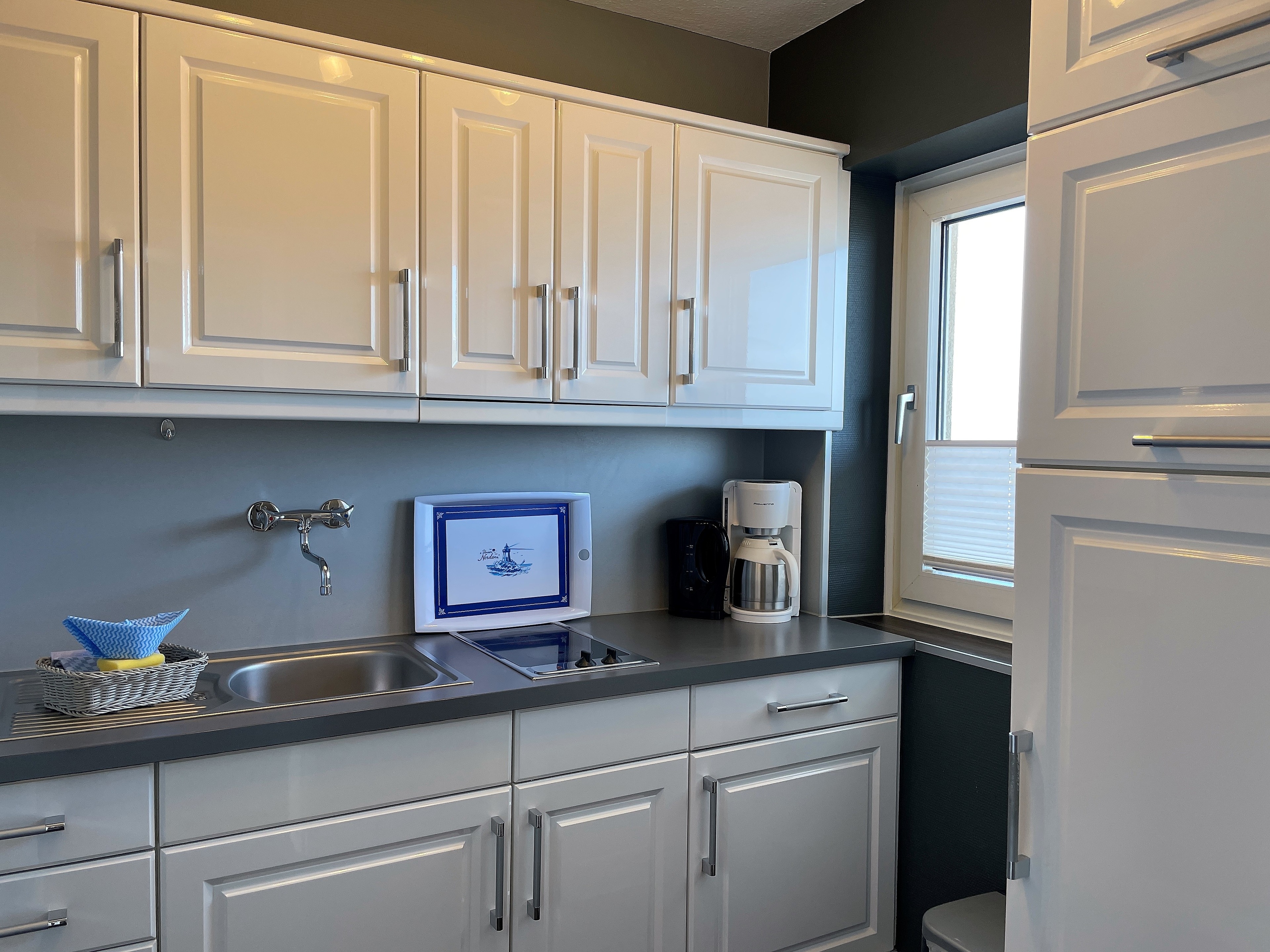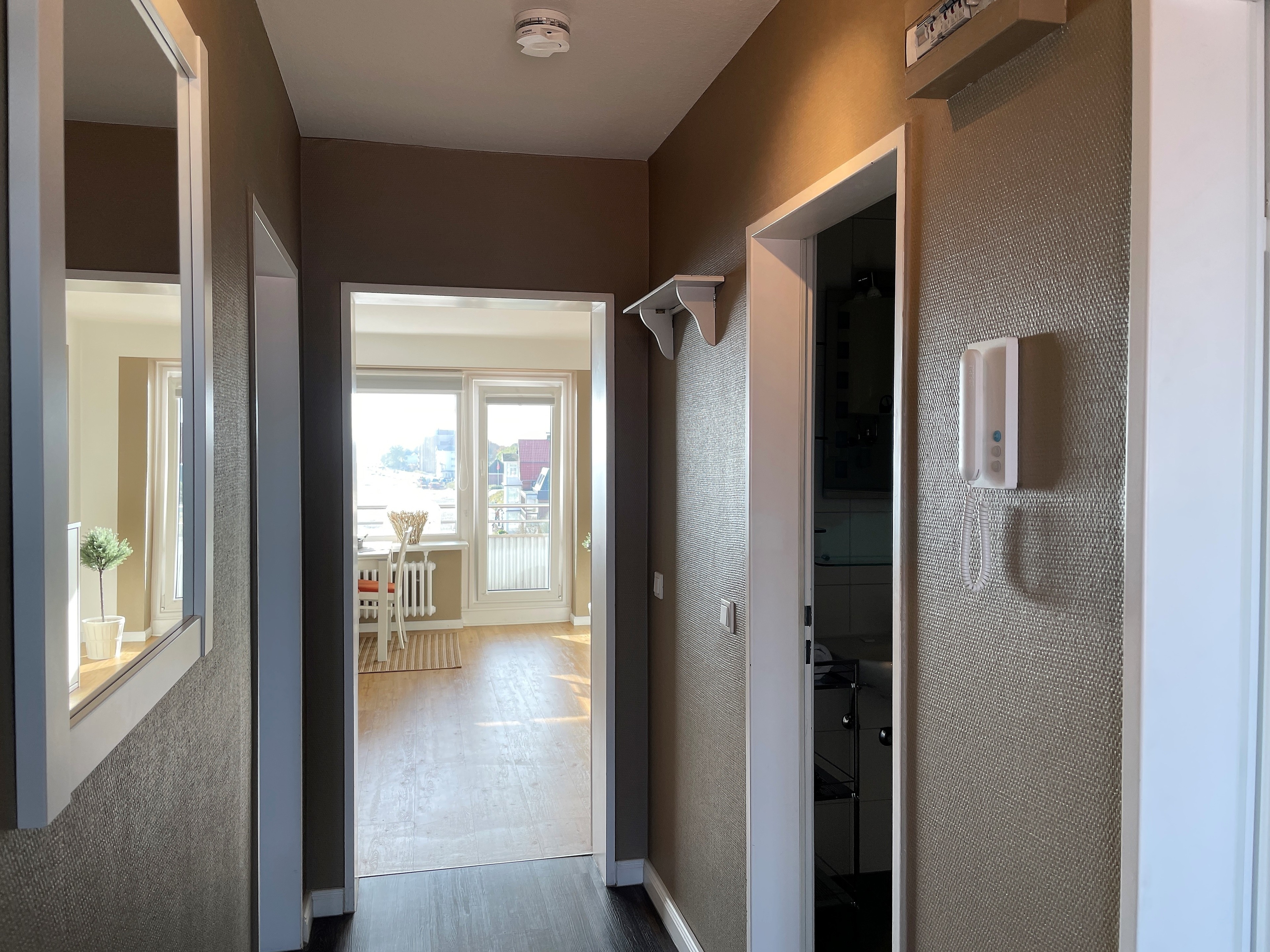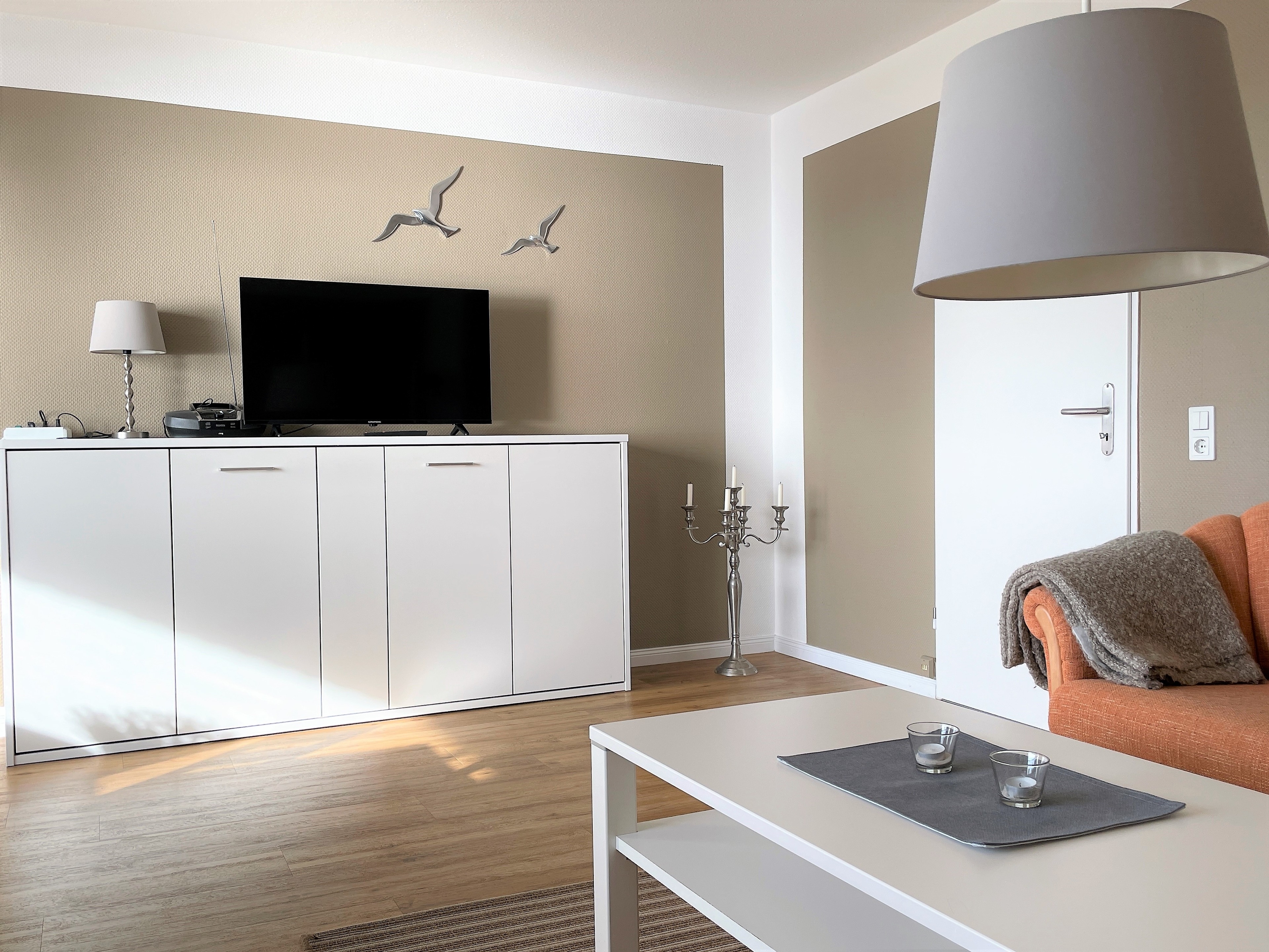 Genießen Sie traumhafte Urlaubstage in unserer ca. 60 qm großen Ferienwohnung Atlantischer Hof 24 mit bis zu drei Personen. Lichtdurchflutet liegt der geschmackvoll eingerichtete Wohnraum in perfekter Lage mit direktem Blick auf die Nordsee! Relaxen Sie gemütlich in einer Wohnung mit Wohlfühlcharakter während Sie dem Schauspiel von Ebbe und Flut folgen oder genießen Sie die Nordseebrise direkt vom Balkon aus und lassen Ihren Blick über das Meer und den langen Sandstrand schweifen. Zur Wohnung gehört weiterhin ein kleines, funktionales Bad mit Dusche, eine separate Küche um sich selbst versorgen zu können, falls man mal nicht die kulinarischen Köstlichkeiten der fußläufig entfernt liegenden Restaurants genießen möchte und ein Schlafzimmer mit Doppelbett (180x200cm)und einem zusätzlichem TV. Die dritte Schlafmöglichkeit wird durch ein hochwertiges Schrankbett (90x200cm) im Wohnzimmer geboten. Die zentrale Lage ermöglicht es, alle Einkaufsmöglichkeiten des täglichen Bedarfs fußläufig zu erreichen und in nur wenige Schritten sind Sie am Strand und Meer!