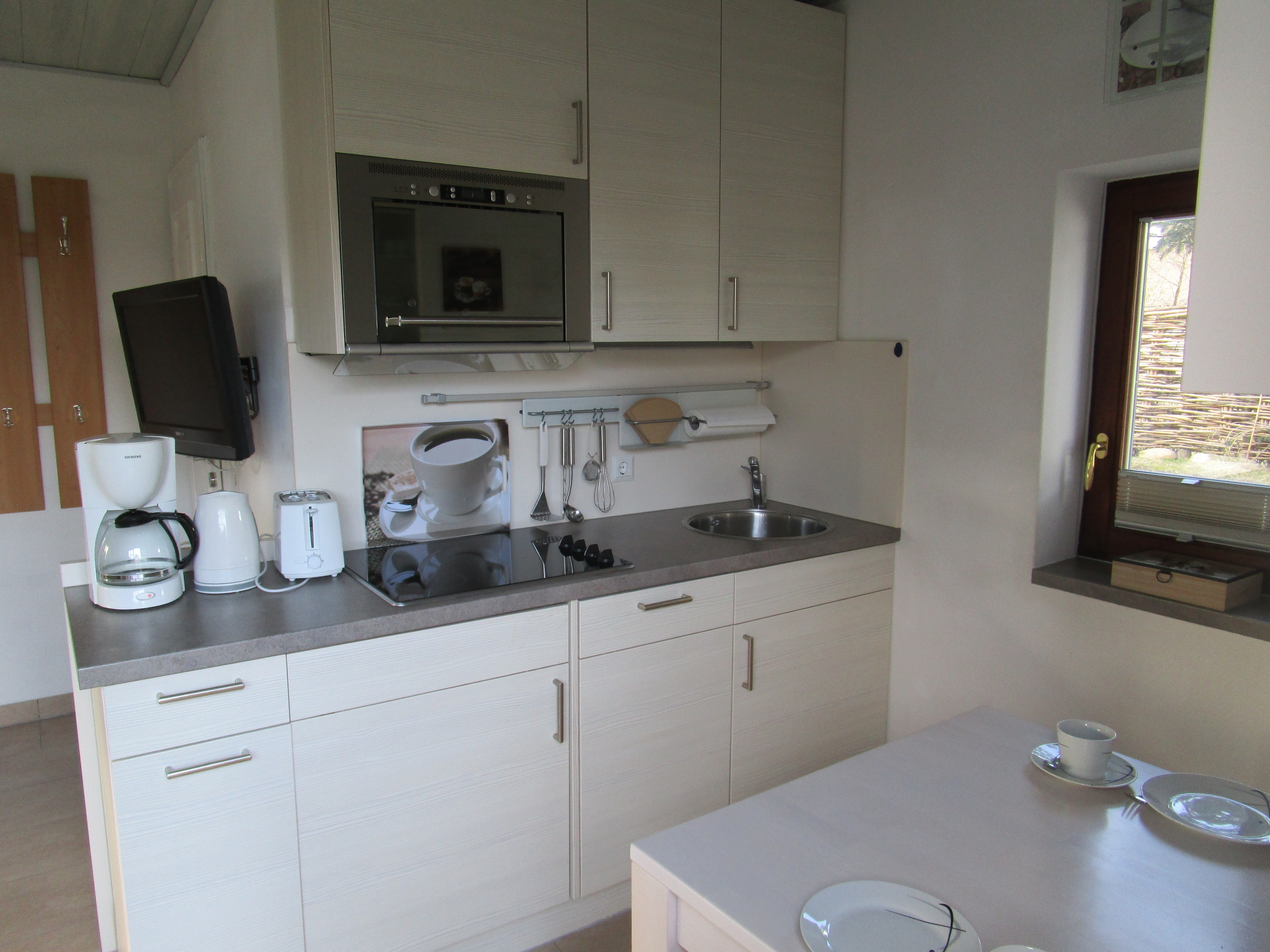 Die Ferienwohnung für 2 Personen befindet sich in einen kleinen Häuschen . Im EG befindet sich der Wohnraum mit Flachfernseher, das Bad mit WC, sowie die Küchenzeile. Im OG ist der Schlafraum mit Flachfernseher. Die Küchenzeile ist komplett ausgestattet wie Geschirrspüler, Kaffeemaschine, Toaster , Wasserkocher usw. Telefon und WLan in und an der Ferienwohnung kostenlos.
