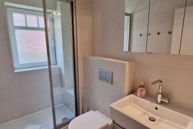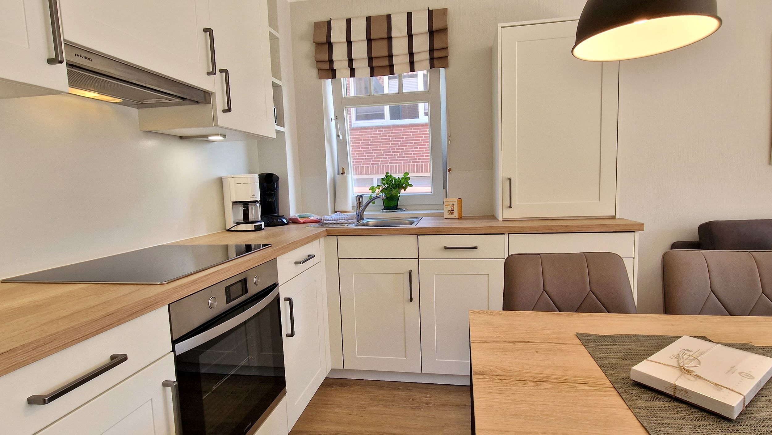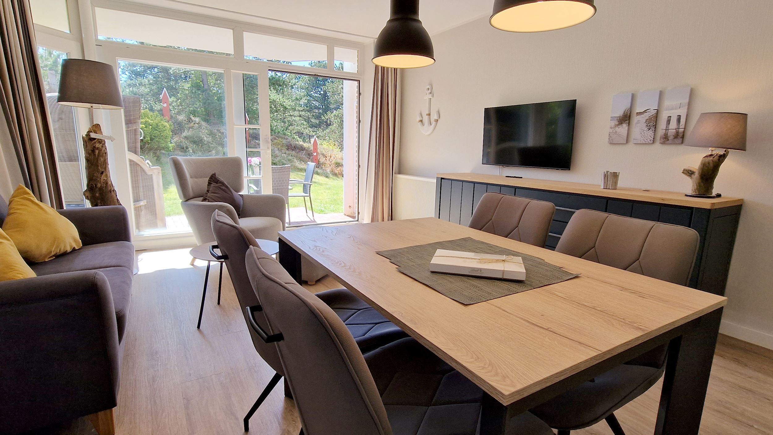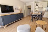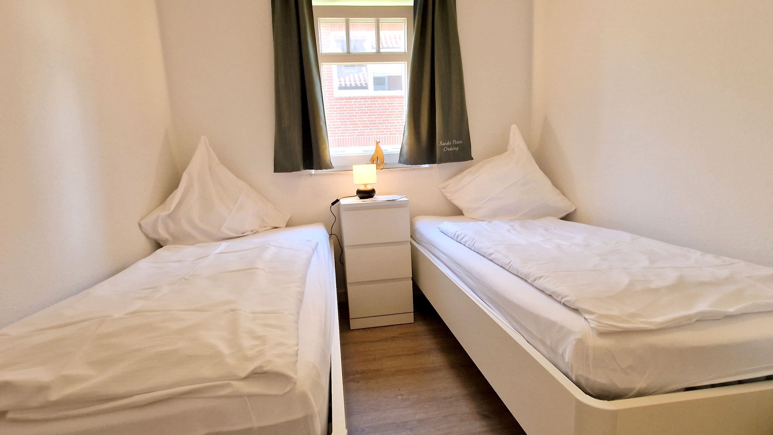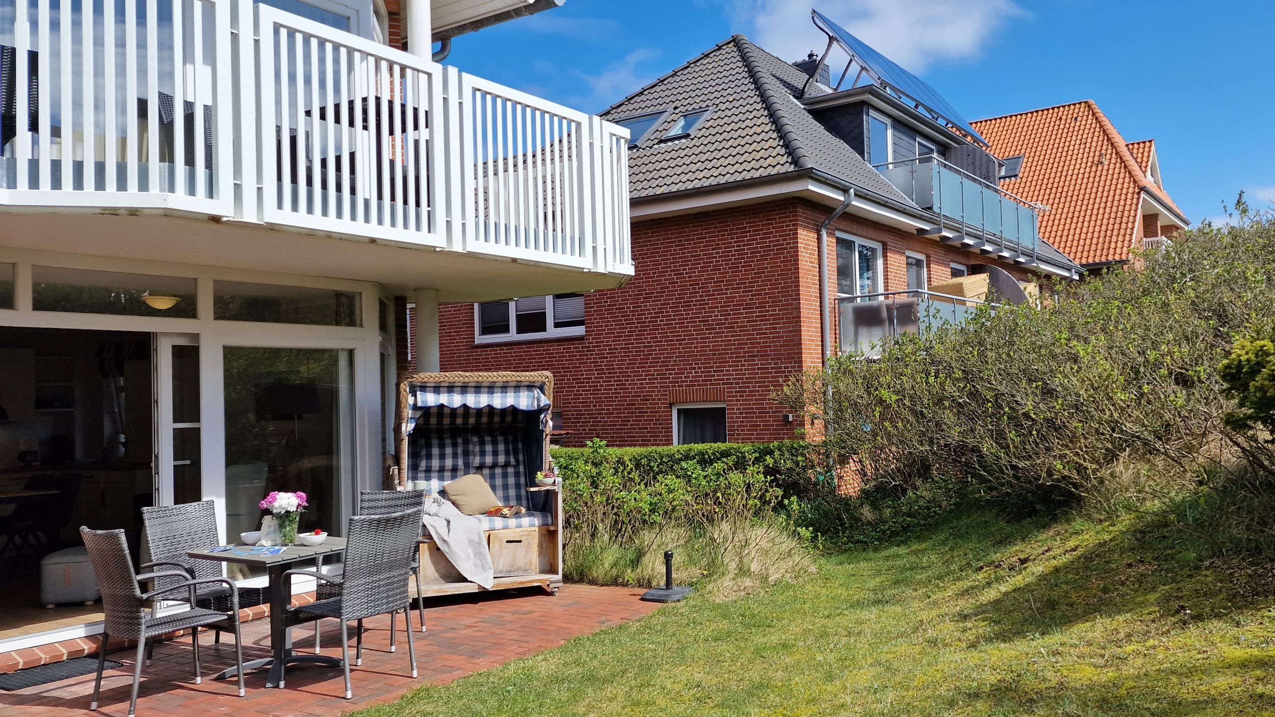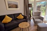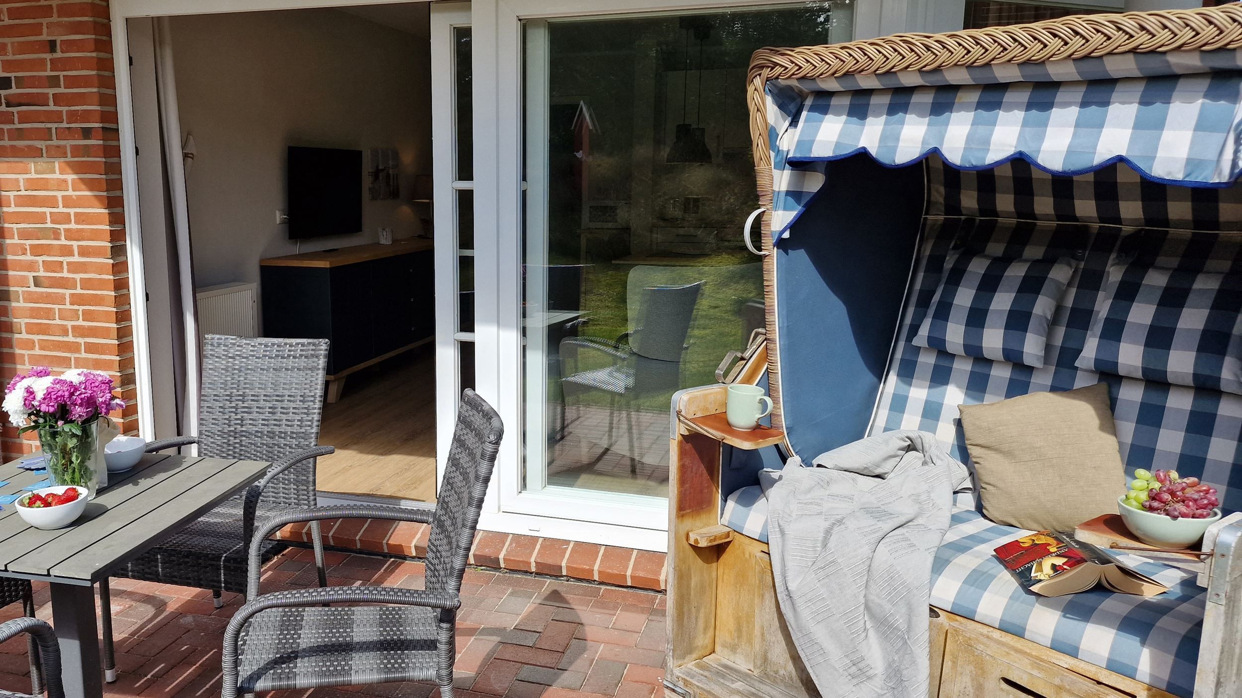 Eleganz und Komfort stehen in der 3-Zimmer Ferienwohnung für Nichtraucher in St. Peter-Ording an erster Stelle. Auf bis zu 4 Personen warten hier im EG die halbüberdachte Terrasse in Süd-Westlage und ein sehr modernes Bad. Die beiden schönen Schlafzimmer sind einmal mit einem Doppelbett und einmal mit 2 Einzelbetten ausgestattet. Dunkle Fliesen geben der Wohnung einen mediterranen Anstrich. PKW-Stellplatz auf dem Grundstück, Nr. 1