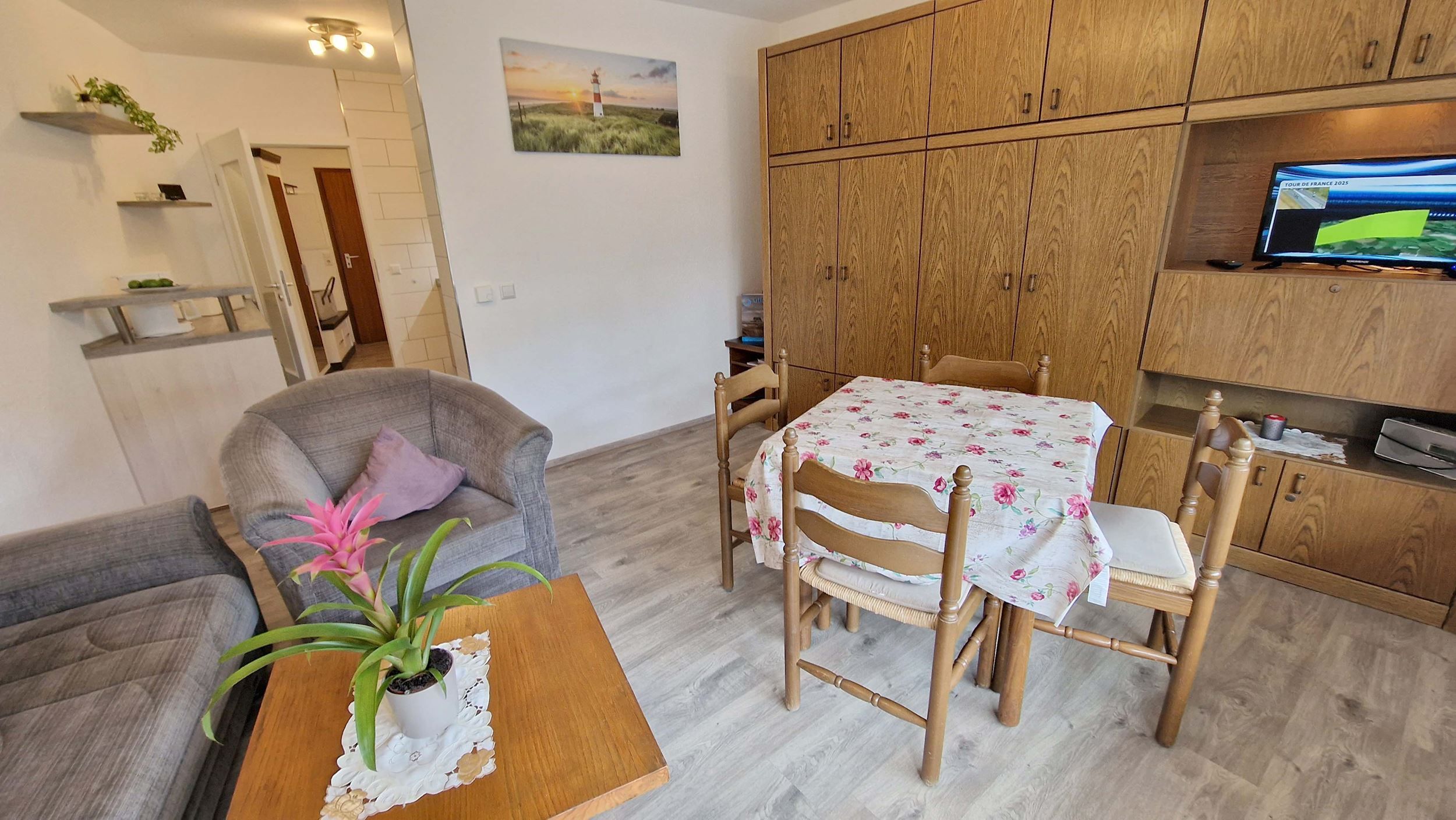 In der 2-Zimmer Ferienwohnung Utlande Nr. 17 im Ortsteil Ording ist Platz für 4 Personen. Die Terrasse in Südlage verspricht lange Sonnenstunden. Drinnen erwartet Sie eine bequeme Couchgarnitur. Erholsamen Schlaf finden Sie im Doppelbett im Schlafzimmer und im Wohnbereich befindet sich noch ein Schrankdoppelbett. In der modernen Küche macht das Kochen richtig Spaß. PKW-Stellplatz auf dem Grundstück, Nr. 17.