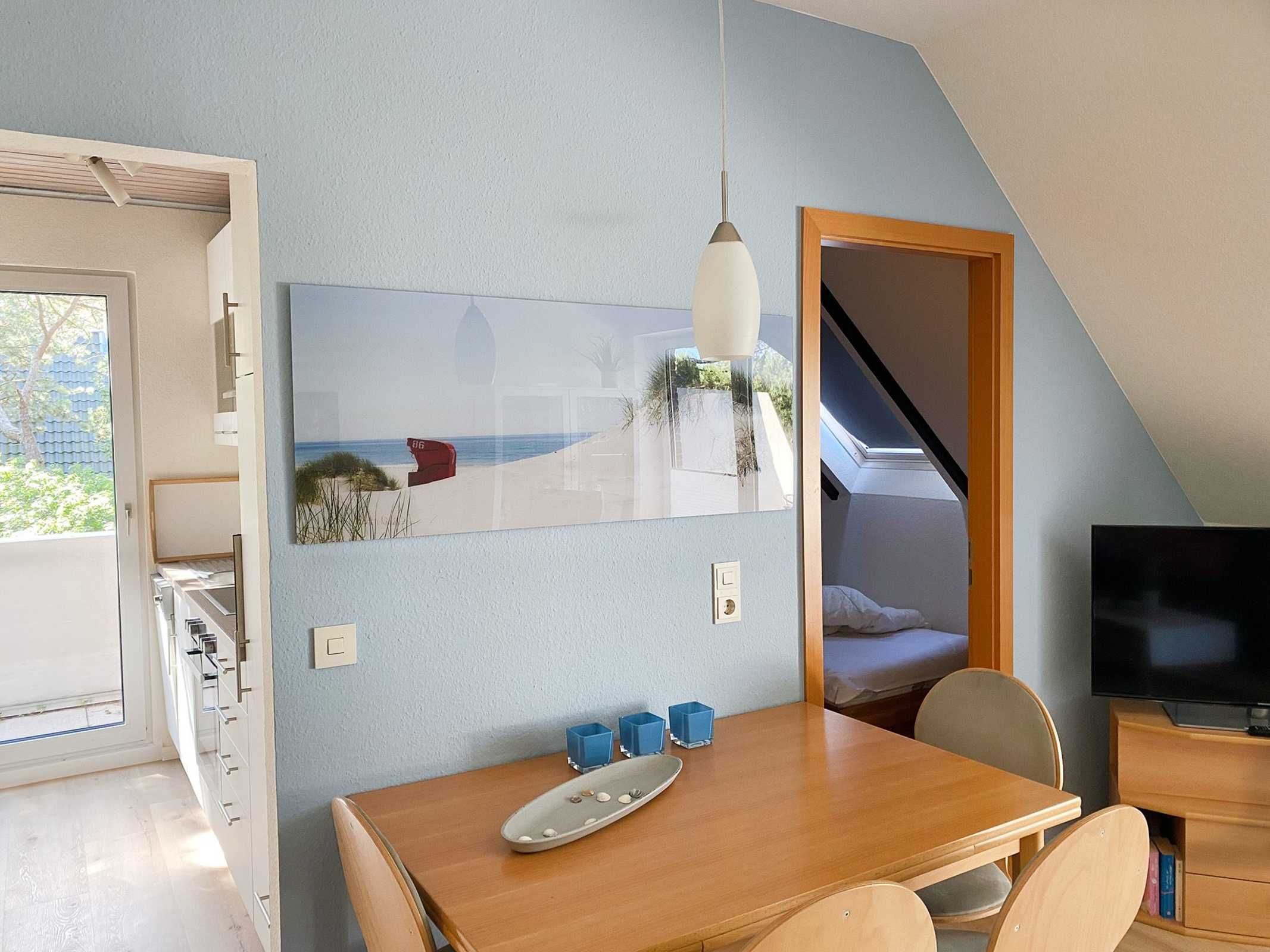 WOW! - in dieser superstylischen 3-Zimmer-Ferienwohnung in St. Peter-Bad können Sie wundervollen Urlaub an der Nordsee zu viert machen. Das Nichtraucher-Appartement im 2. OG verfügt über 2 gemütliche Schlafzimmer, eines mit Doppelbett, eines mit 2 Einzelbetten und ein modernes, sehr schickes Bad. Die moderne Küchenzeile ist ein wenig vom Wohnbereich separiert und mit Cerankochfeld und Backofen ausgestattet. Beste Nordseeluft können Sie auf den beiden Süd-West-Balkone genießen. Pkw-Stellplatz auf dem Grundstück, Nr. 11