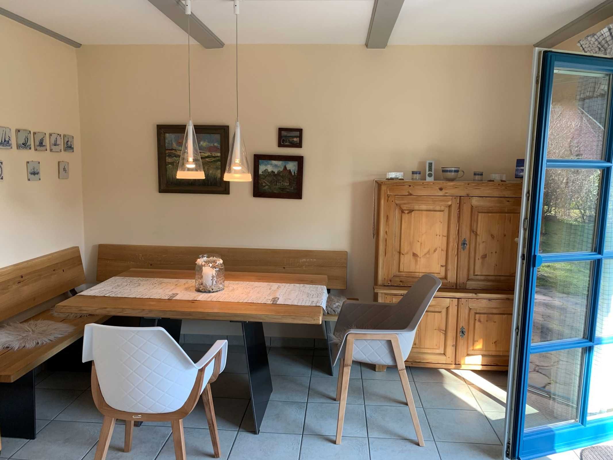 Das Reetdachhaus Immenseeweg liegt im exklusivsten Wohngebiet von St. Peter Ording, dem sogenanntem Stillen Dorf. In dieser absolut idyllischen, ruhigen Lage steht das freistehende Ferienhaus mit seinem dicken Reetdach und den friesischen Holzfenstern. Von hier sind es nur wenige Minuten zu Fuß bis zum Außendeich und zum Marktplatz. Das gibt es nur einmal! Das Haus ist unglaublich gemütlich und dabei sehr geschmackvoll eingerichtet, verfügt über WLAN und kann in seinen 4 Zimmern bis zu 6 Gäste aufnehmen. Neben 3 Schlafzimmern verfügt es über 2 wunderschöne Bäder, eines mit bodengleicher Dusche und Waschmaschine, das andere mit einer traumhaften Badewanne. Damit kein Wunsch offen bleibt, ist im Wohnbereich ein Kamin. Dazu gibt es eine große, sehr gut ausgestattete Wohnküche, in der die ganze Familie mit viel Vergnügen gemeinsam kochen kann. Aus dem Wohnraum führt Sie Ihr Weg über eine mit Gartenmöbeln ausgestattete, windgeschützte, sonnige Süd-Ost-Terrasse direkt in den Garten.