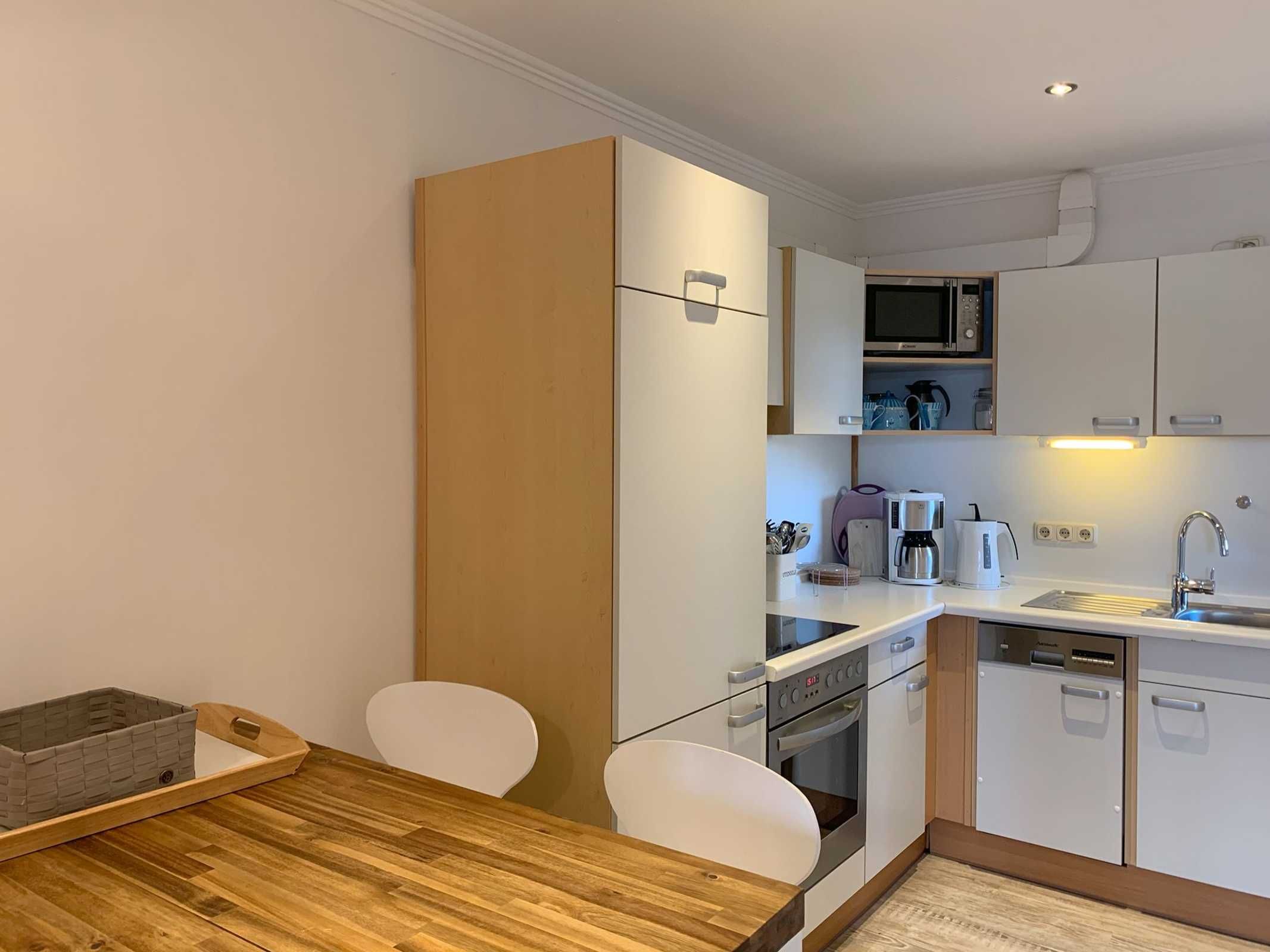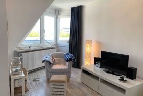 Das Nichtraucher-Appartement im 2. OG verfügt über 2 gemütliche Schlafzimmer, eines mit Doppelbett, eines mit einem Einzelbett, welches sich kinderleicht zu einem vollwertigen Doppelbett umbauen lässt und 2 komplette Duschbäder. Die moderne Küchenzeile dieser Ferienwohnung in St. Peter-Bad ist ein wenig vom Wohnbereich separiert und mit Cerankochfeld, Backofen, Mikrowelle und Spülmaschine ausgestattet. Beste Nordseeluft können Sie auf dem kleinen Süd-West-Balkon genießen. Tiefgaragenstellplatz 78, max. Autohöhe: 1,90m. Sollten Sie einen Waschtag einlegen, ist dies möglich, Waschmaschine und Trockner im Haus für die Gemeinschaft gegen eine Gebühr, Waschmarken beim Hausmeister.