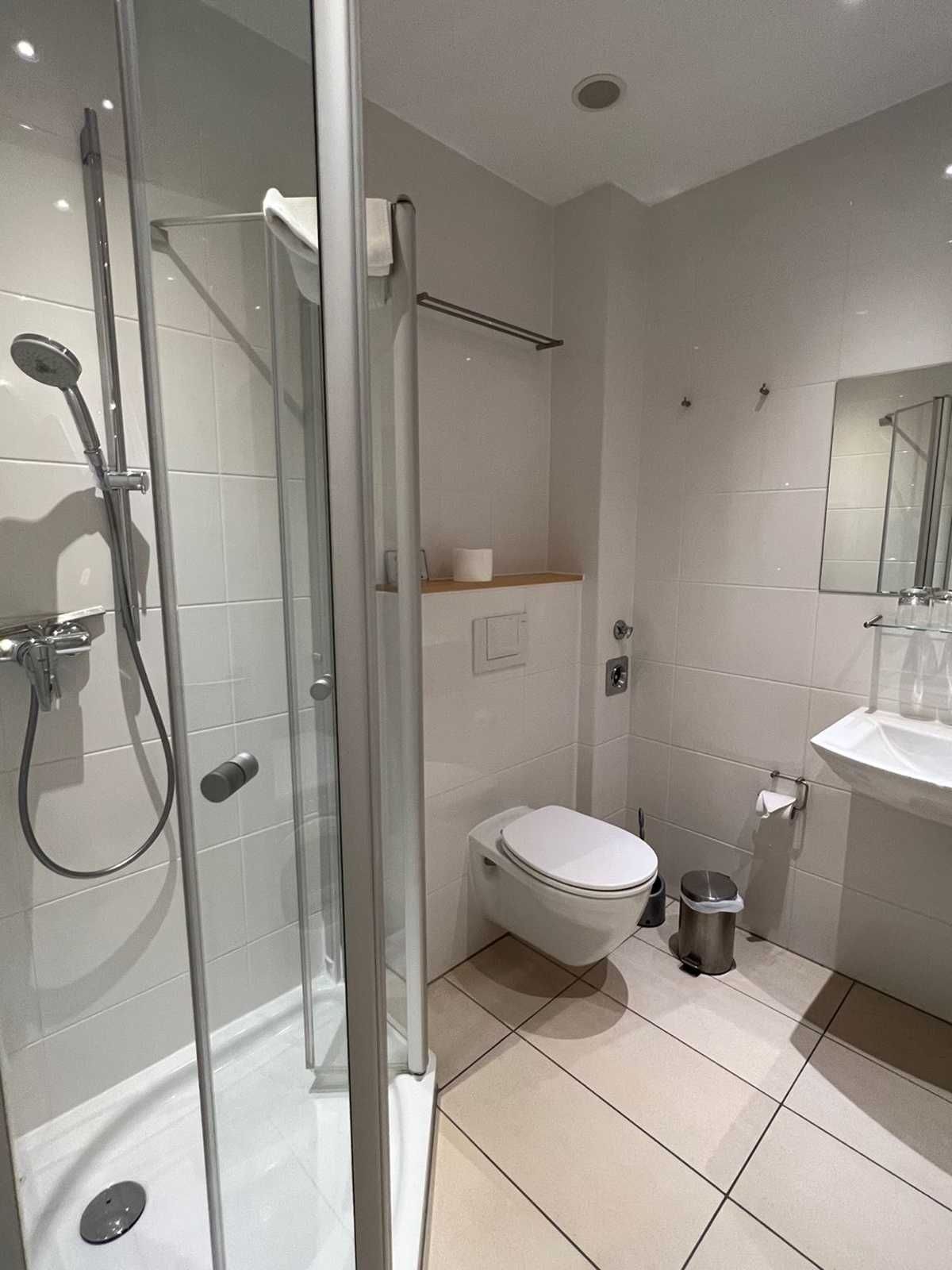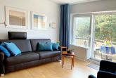 In der 1. Etage bietet Ihnen die freundliche 2-Raum-Ferienwohnung Haus Nordsee Nr. 05 Platz für bis zu 4 Personen. Der behaglich ausgestattete Nichtraucher-Wohnbereich besitzt eine hochwertige Lederschlafcouch mit durchgehender Matratze. Im separatem Schlafzimmer mit Doppelbett und verstellbaren Lattenrosten finden Sie auch einen erholsamen Schlaf. Im modernen Bad finden Sie nicht nur eine Waschmaschine, Sie können dort auch die Musik aus dem Wohnzimmer genießen, wenn Sie z.B. die Stereoanlage und Ihr Smartphone über die vorhandene Bluetooth-Schnittstelle koppeln. Auf dem Balkon in nordwestlicher Ausrichtung können Sie sich auf einer Sitzgruppe mit 4 Balkonstühlen inkl. Auflagen und Tisch entspannen. Durch die Abgewandtheit von der Durchgangsstrasse finden Sie hier erholsame Ruhe und haben einen unverbauten Blick auf den Dünenwald. Restaurants und Cafes sind in unmittelbarer Nähe. Mit Stellplatz Nr. 5