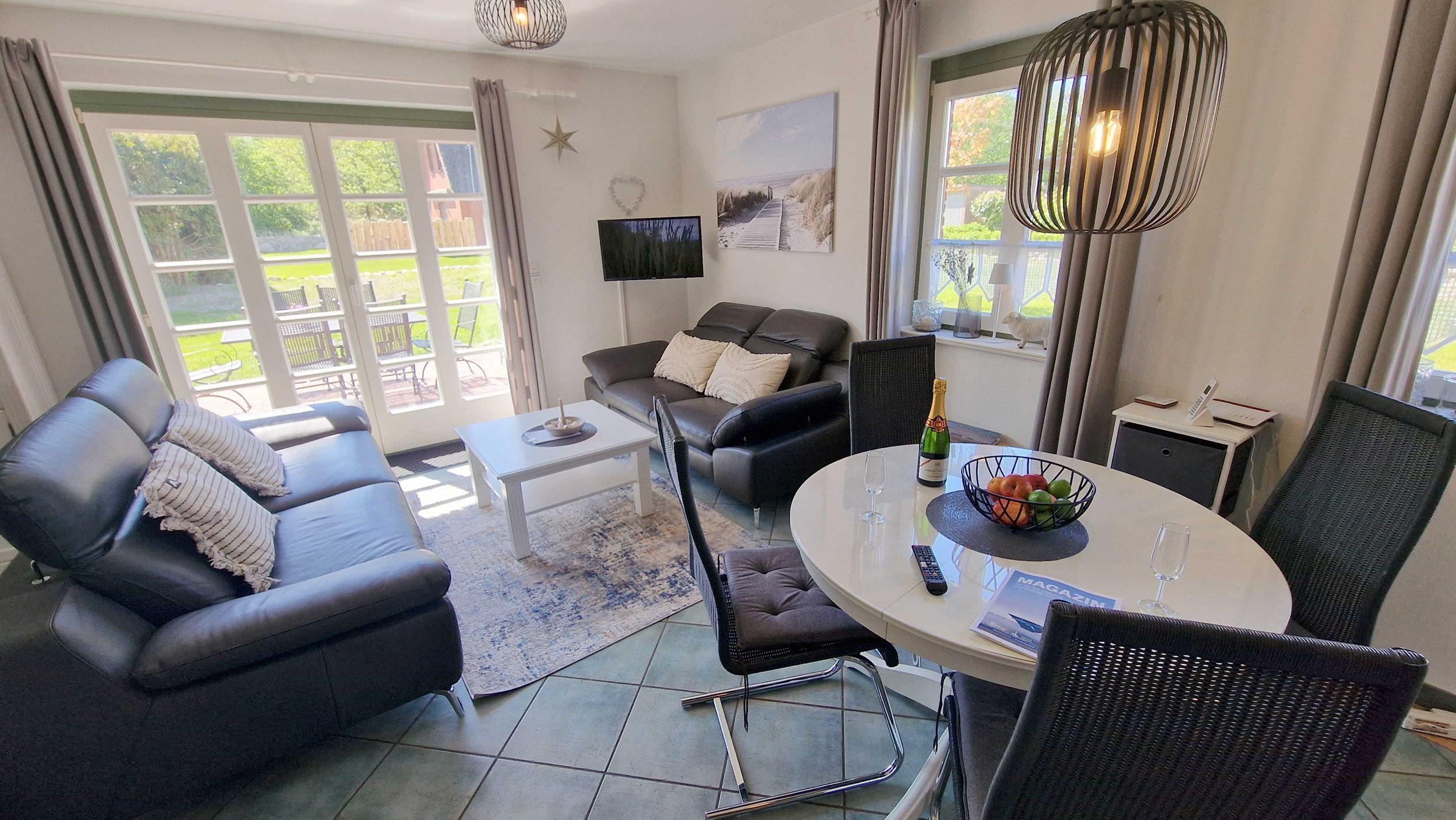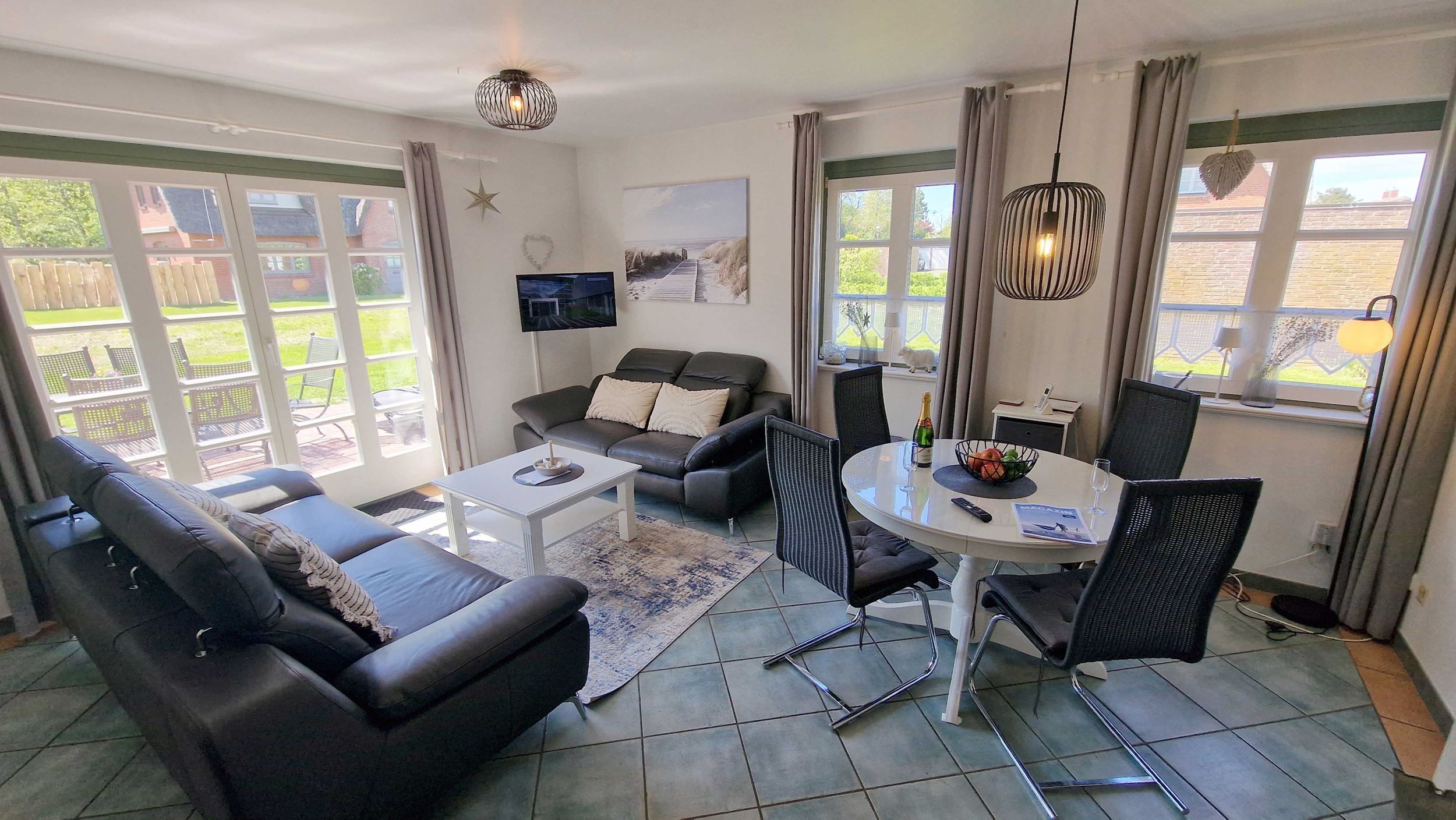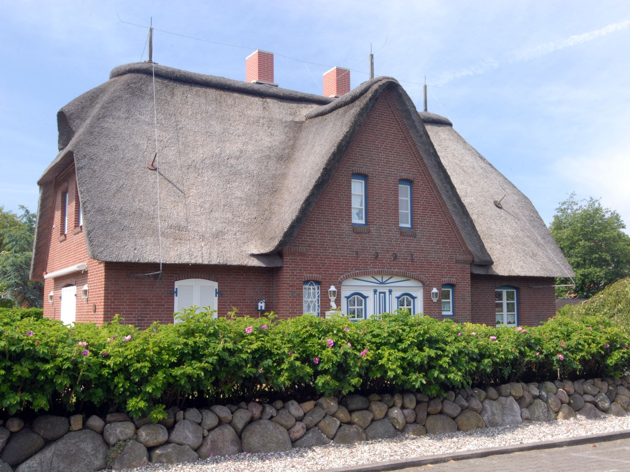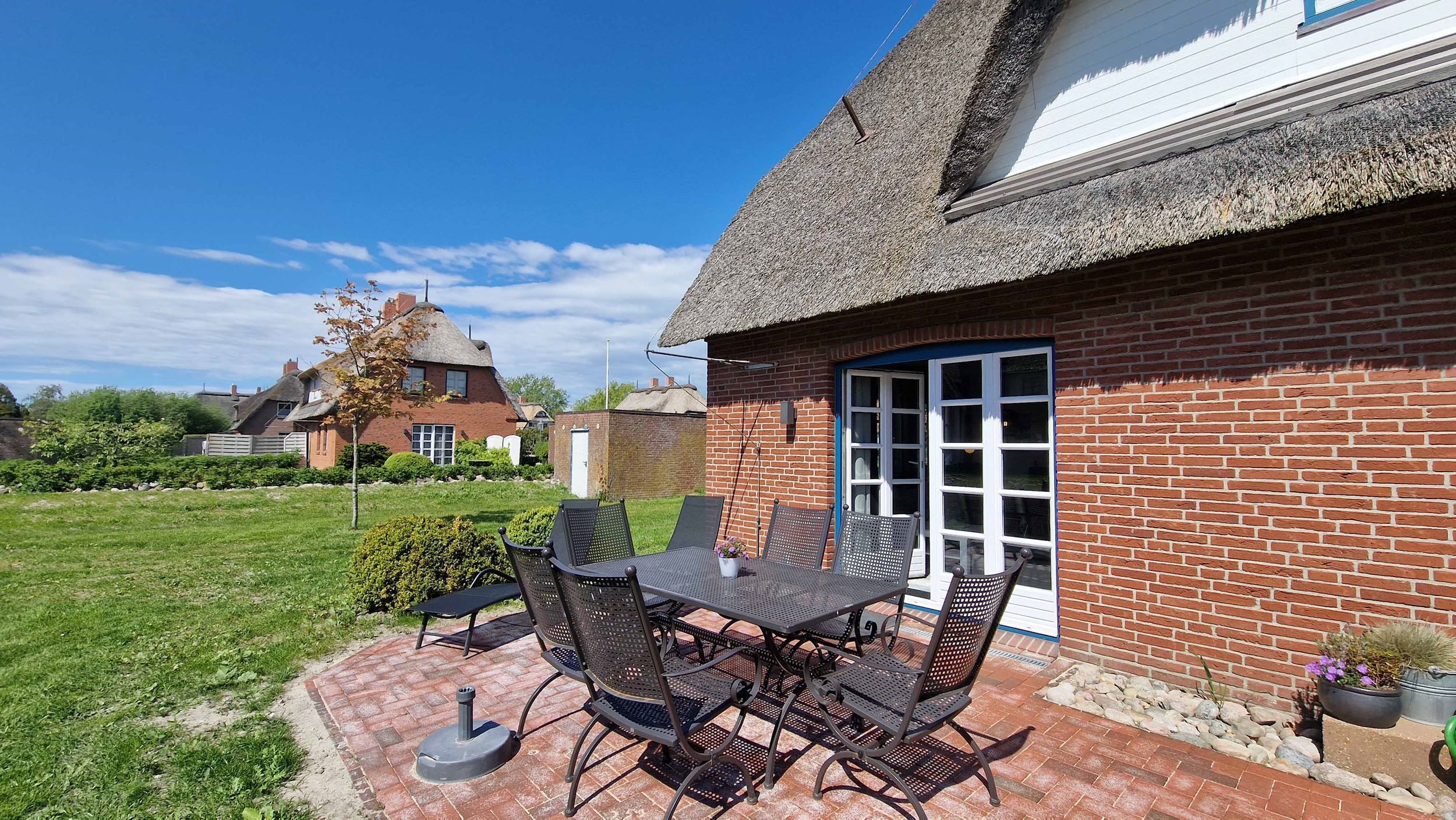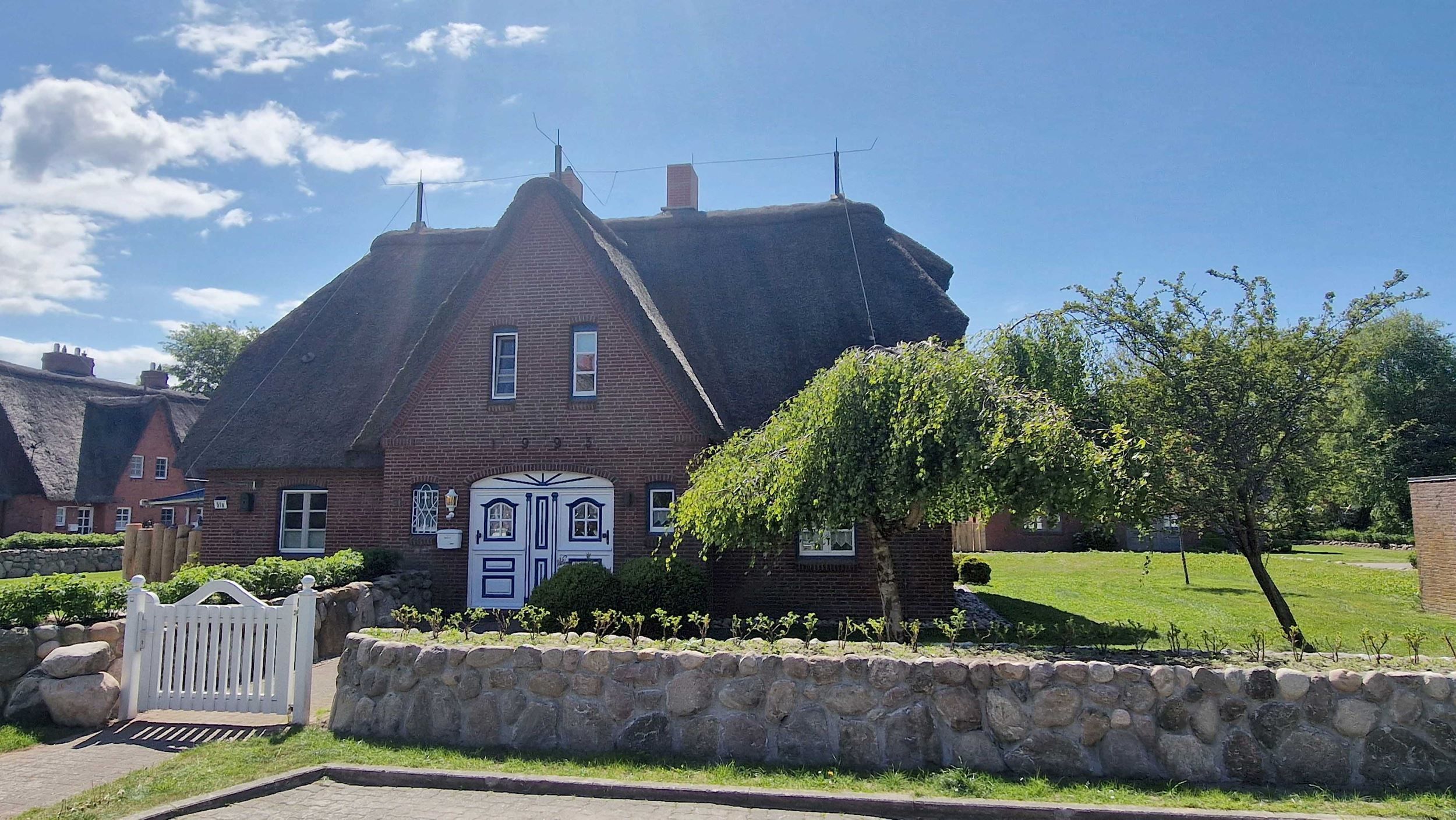 Dieses Ferienhaus in St. Peter-Ording bietet Landhausromantik in ruhiger Lage für bis zu 5 Personen! In der Reetdachhaushälfte Friesenstraße 51 erstrecken sich die 4 Zimmer über 2 Etagen und garantieren so ausreichend Platz. Terrasse in Süd-Westlage. Die schöne Einrichtung wird im Wohnzimmer durch einen Kamin ergänzt. Insgesamt gibt es hier 3 Schlafzimmer, von denen zwei mit Doppelbetten ausgestattet sind. Zusätzlich bekommen Sie hier ein Gäste-WC, eine Garage, eine Waschmaschine. Nichtraucher. Stellplatz.