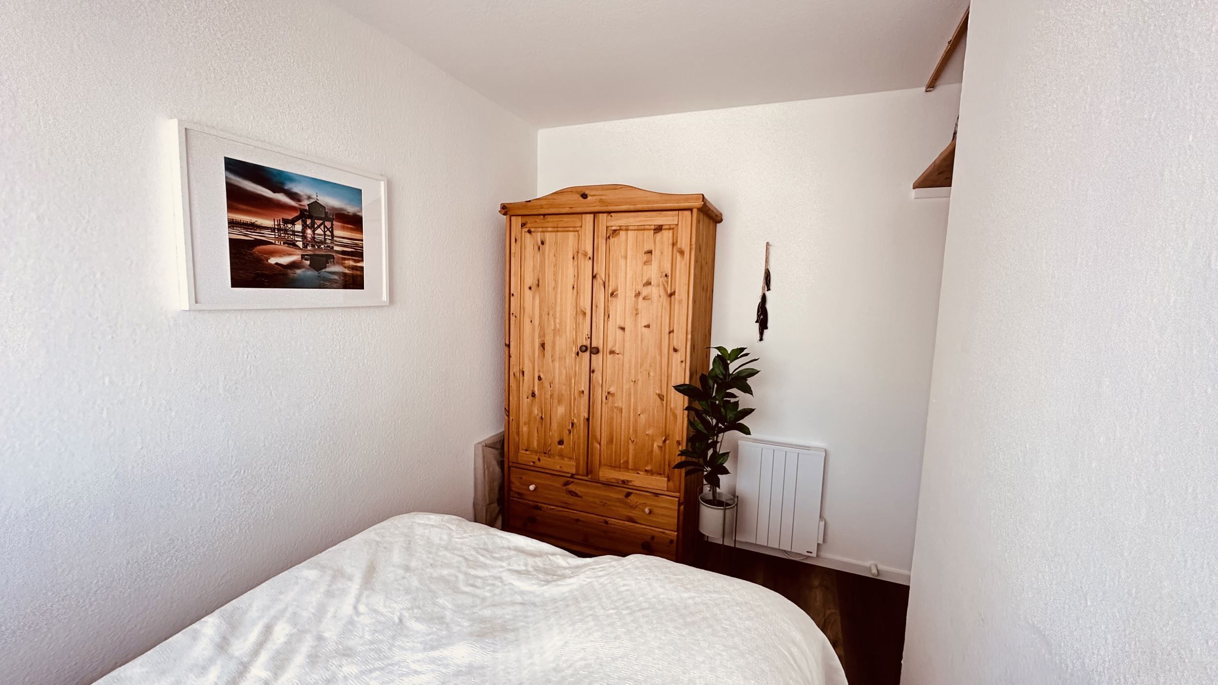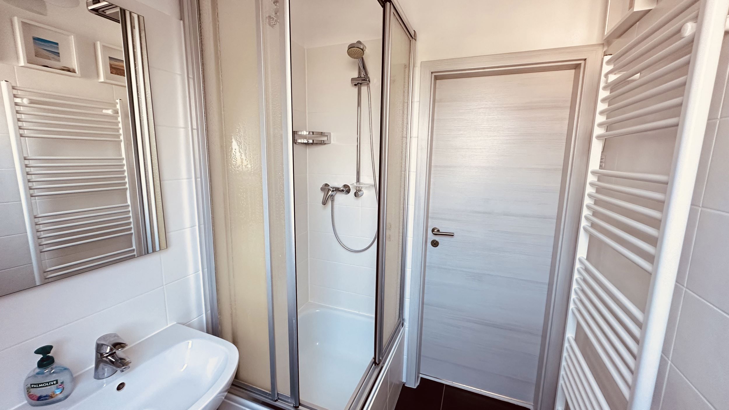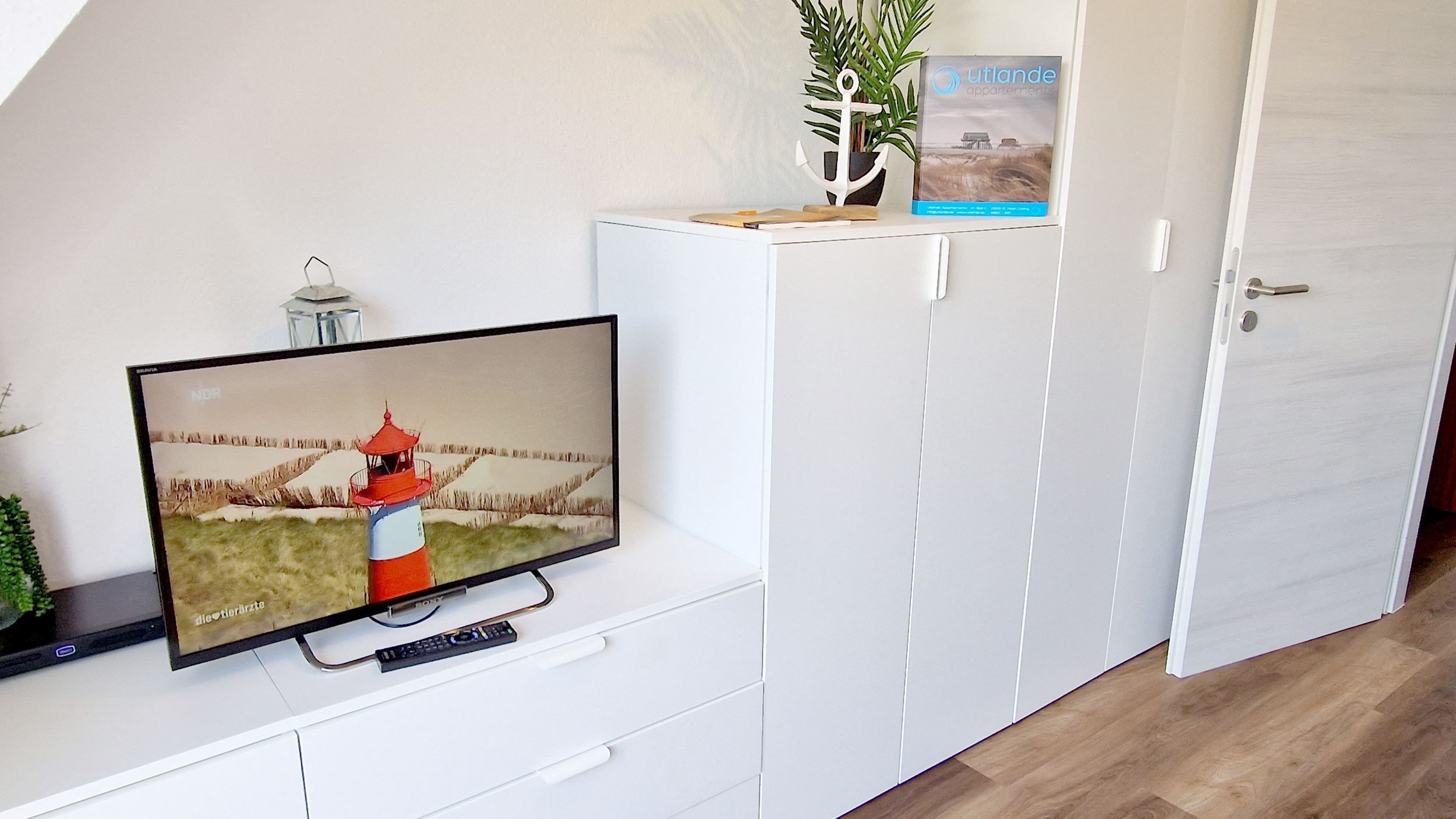 Helle, gemütliche und mit Liebe eingerichtete 2-Zimmer-Nichtraucher-Ferienwohnung. Genießen Sie den sonnigen Balkon im 2. OG, in Süd-Ostlage, mit weitem Blick über den Golfplatz aufs Meer, bei klarer Sicht bis nach Büsum. Die sehr hübsche, ins Wohnzimmer integrierte friesische Küchenzeile, ist mit Ceranfeld und Backofen ausgestattet. Spannen Sie nachts auf der modernen Schlafcouch aus oder im kleinen Doppelbett (140x200cm ) des Schlafzimmers. Erfreuen Sie sich an dem modernisierten Duschbad und kostenlosem WLAN. Ihr Auto können Sie geschützt in der Tiefgarage, Nr.12, mit Fernbedienung für das Tor parken.
