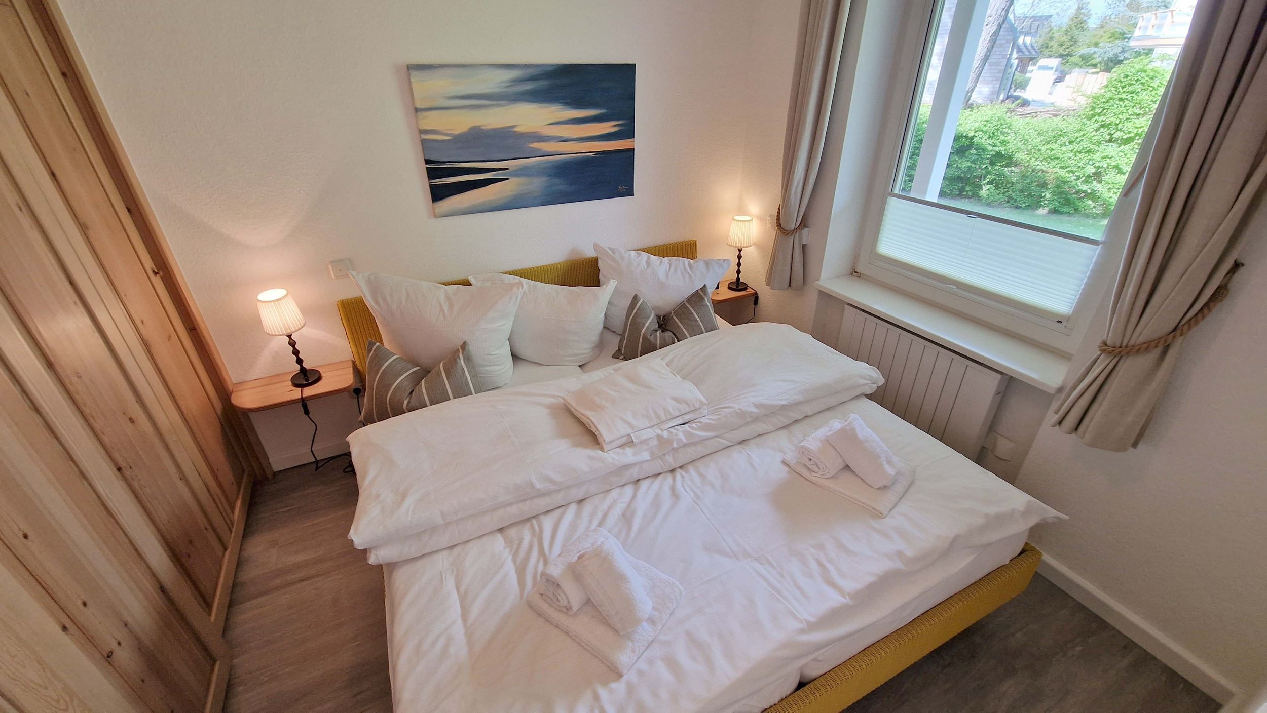 Die 2-Raum Ferienwohnung Utlande Nr. 6 im Ortsteil Ording ist für bis zu 4 Personen geeignet. Sie ist ausgestattet mit hochwertigen Materialien, wie z.B. Holzdesignfußböden, Ledermöbeln, einer separierten Einbauküche und einem modernen Bad mit bodengleicher Dusche. Erholsamen Schlaf finden Sie in einem der 2 Einzelbetten oder in einem Schrankdoppelbett. Auf der halbüberdachten Terrasse in Südlage können Sie bereits morgens in der Sonne frühstücken oder die Seele baumeln lassen. PKW-Stellplatz auf dem Grundstück, Nr. 6