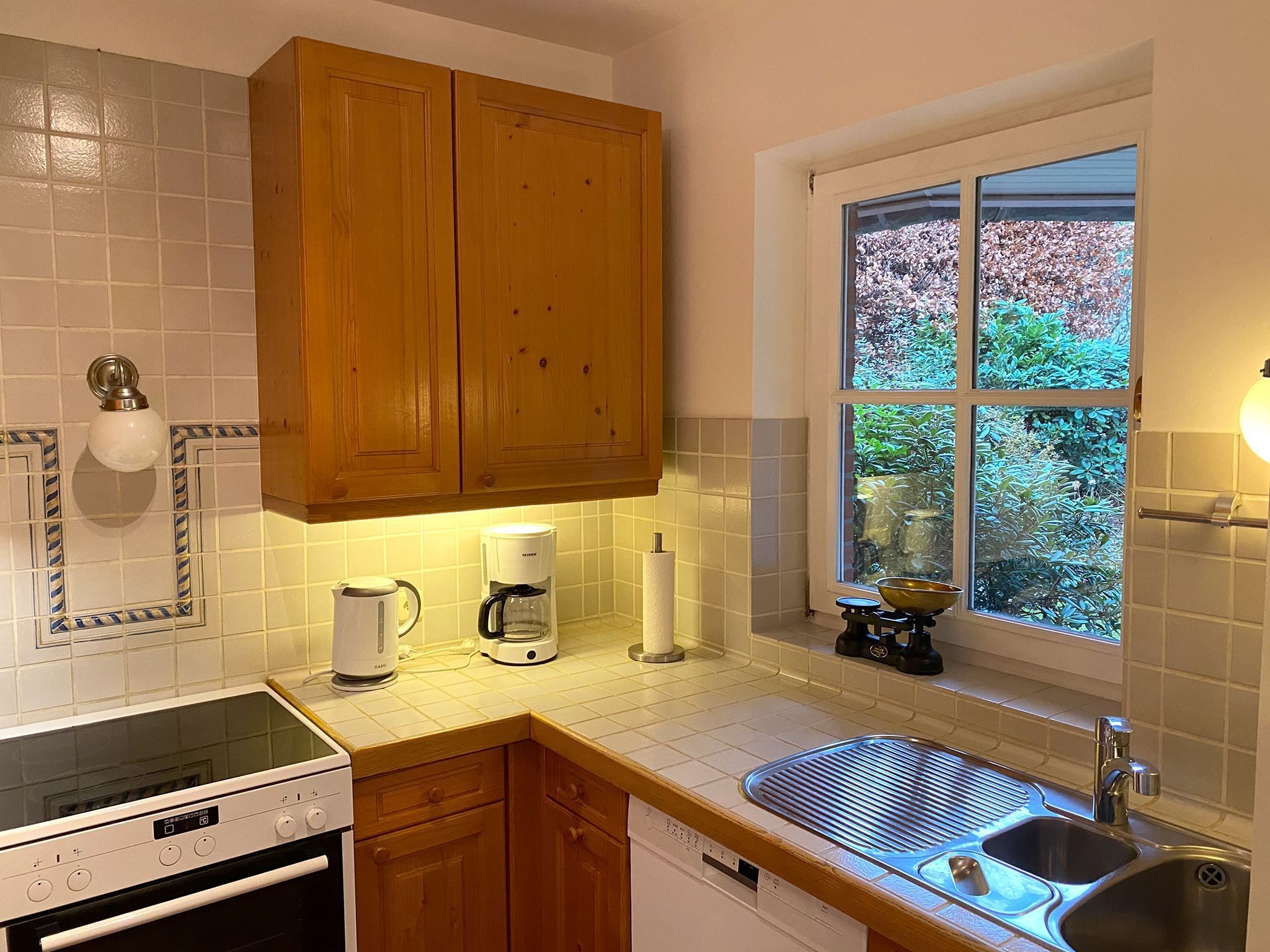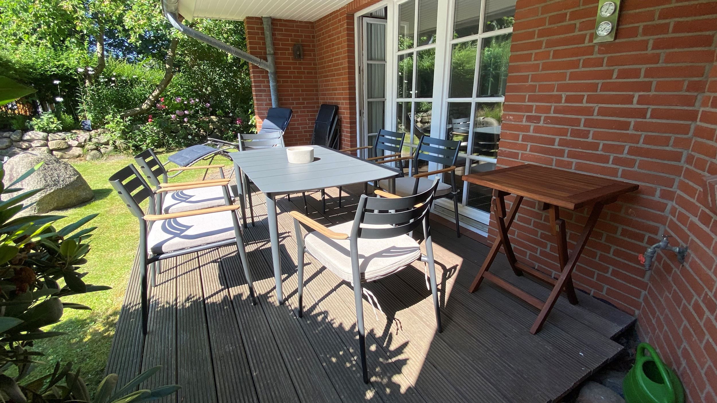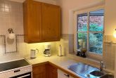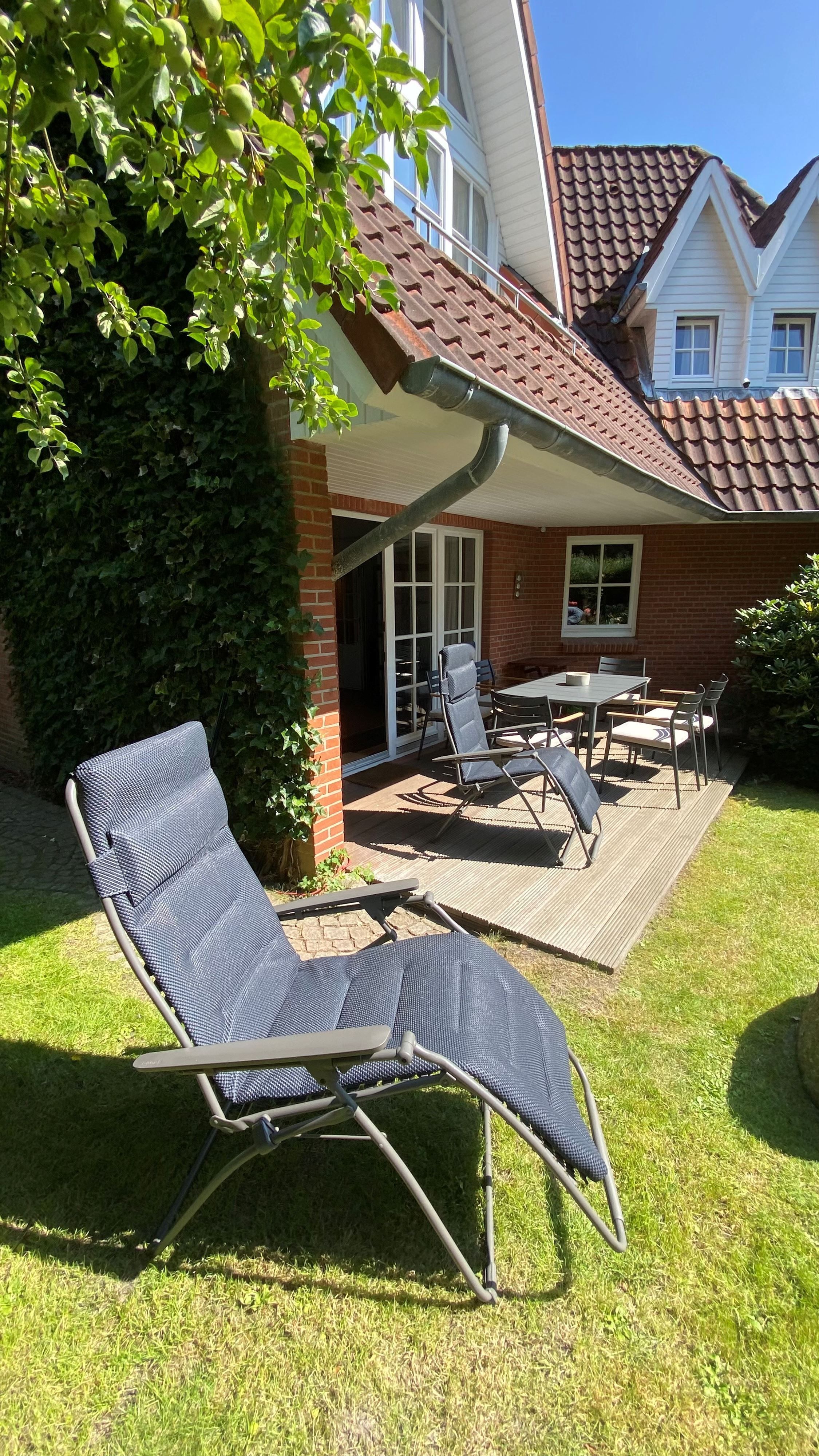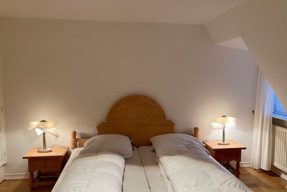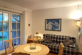 Das Haus ist individuell eingerichtet und gut ausgestattet. Im OG befinden sich ein Schlafzimmer, ein kleines Bad und das große Wohnzimmer mit offenen Dachbalken, Kamin und kleinem Süd-Balkon. Im EG liegen ein Badezimmer, die voll-ausgestattete Küche (Elektroherd, Geschirrspüler, Kühl-Gefrierschrank, Mikro-Welle) und ein kombiniertes Wohn-/Schlafzimmer mit Zugang zu Terrasse und Garten mit Strandkorb. Außerdem: Kabel-TV & WLAN. PKW-Stellplatz ist auf dem Grundstück vorhanden.