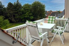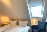 Die mit einer modernen Elektro-Direktheizung ausgestattete 3-Zimmer Nichtraucher-Ferienwohnung Nr. 8 im Haus Brandung für bis zu 4 Personen, bietet Ihnen ca. 80 qm und einen direkten Meerblick von einem der beiden Schlafzimmer. Das komfortable Maisonette-Appartement ist mit einem geräumigen Balkon und einer gut ausgestatteten Küche eingerichtet. Das Designerbad präsentiert sich mit Dusche, Bidet und Eckbadewanne. Inklusive ist eine große Garage und auch die Nutzung von Internet (WLAN). Ein separater Spiel- und Krabbelraum (Käpt´n Blaubär-Zimmer) mit Bullaugenfenster und Blick in Richtung des Westerhever Leuchtturms lässt nicht nur Kinderherzen höher schlagen. Die Wohnung ist allergikerfreundlich.