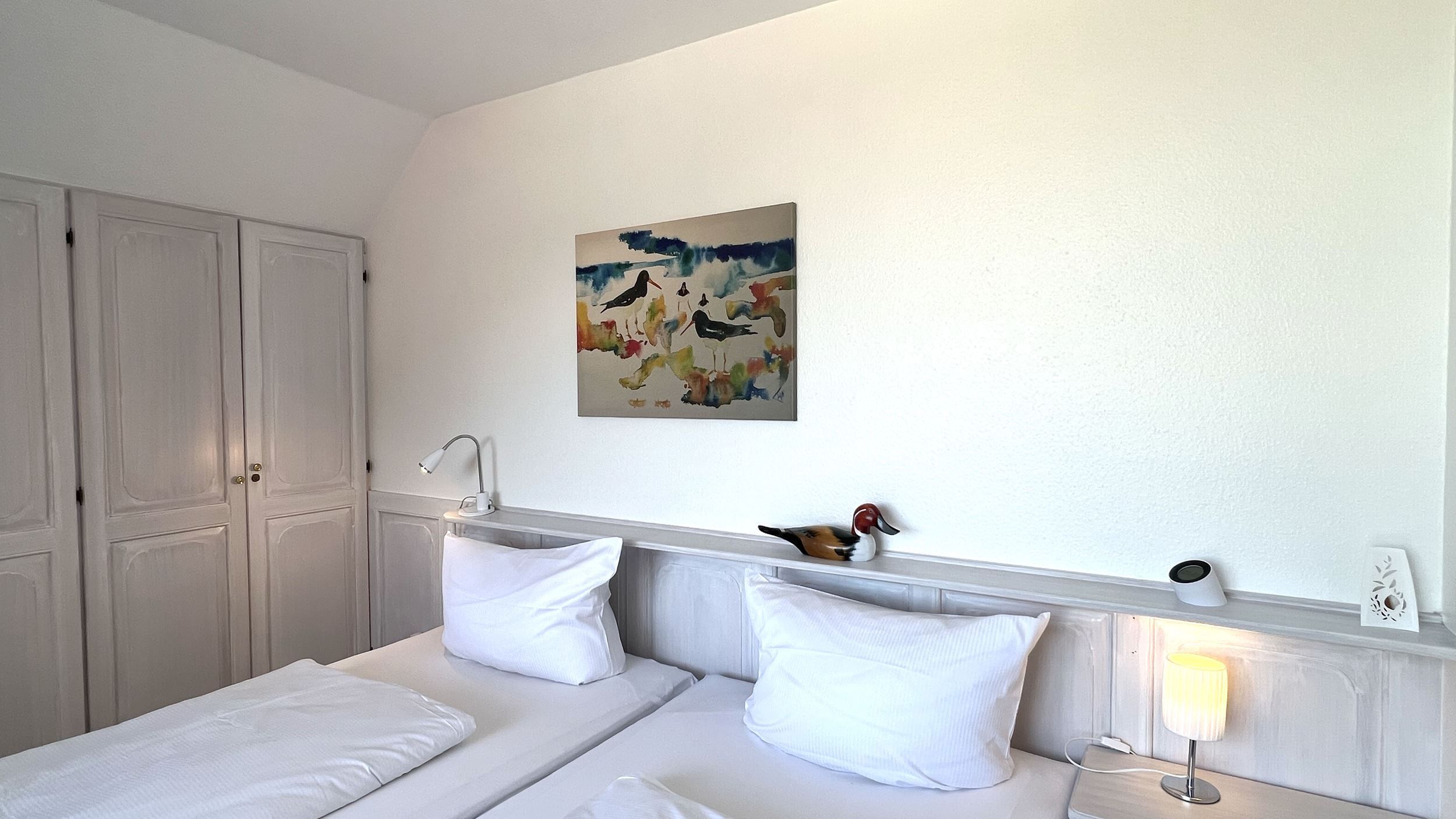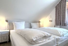 Die behaglich und gut ausgestattete 3-Zimmer-Ferienwohnung in St. Peter-Bad, für bis zu 4 Personen und einem Vierbeiner, liegt im 2. OG. Vom schönen Loggia-Balkon in südöstlicher Ausrichtung haben Sie einen wunderbaren Blick auf den angrenzenden Kiefernwald. Erholsamen Schlaf bekommen Sie in einem der beiden Doppelbetten. Die Wohnung verfügt über ein hellgekacheltes Bad und zusätzlich gibt es noch ein Gäste-WC. In der zugehörigen Garage, die sich auf dem Grundstück befindet, steht Ihr PKW sicher und trocken. Das Haus Pellworm befindet sich schön zentral zwischen Bad und Dorf, grenzt an ein geschütztes Dünengebiet an und liegt deshalb sehr ruhig. Es ist nur ein Haustier gestattet, welches kostenpflichtig angemeldet werden muss.