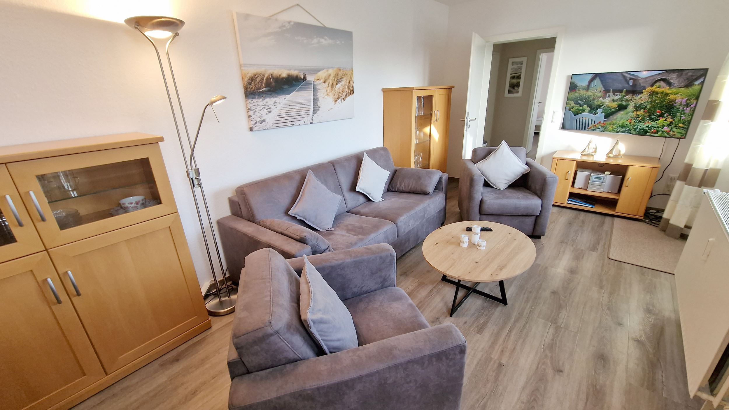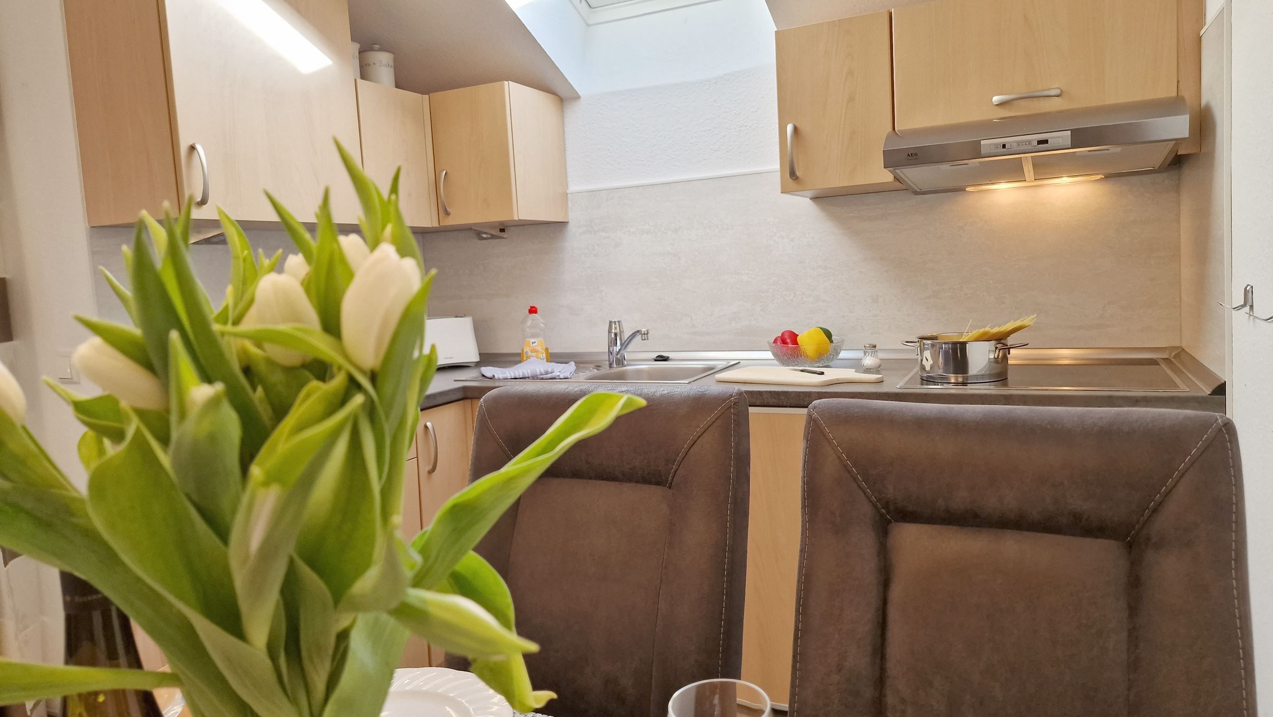 In der schmucken 2-Zimmer Ferienwohnung im Zentrum von St. Peter-Bad können Sie mit bis zu 4 Personen und einem Viebeiner herrlichen Urlaub in der 2. Etage machen. Nachts spannen Sie auf der modernen Schlafcouch im Wohnzimmer oder im Doppelbett des Schlafzimmers aus. Die moderne, offene Küche mit Cerankochfeld und Backofen lädt zum Kochen, der große Süd-Ost-Balkon zum Entspannen ein. Pkw-Stellplatz auf dem Grundstück, Nr. 17. Es ist nur ein Haustier gestattet, welches kostenpflichtig angemeldet werden muss.