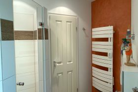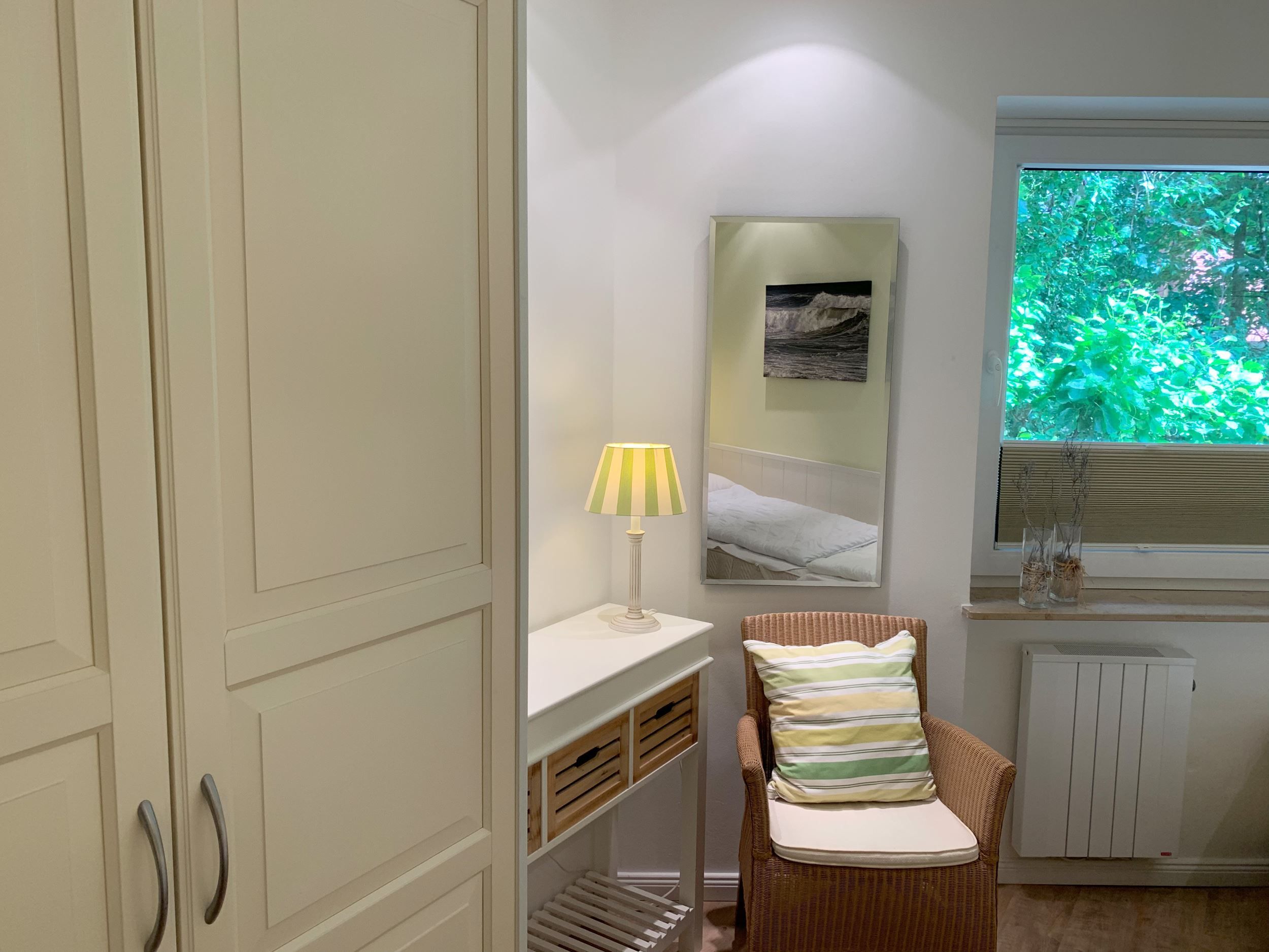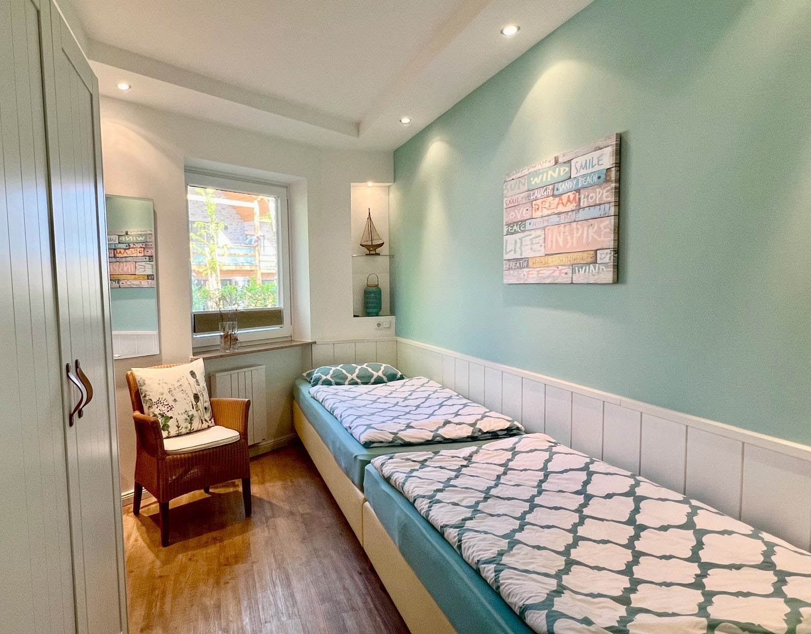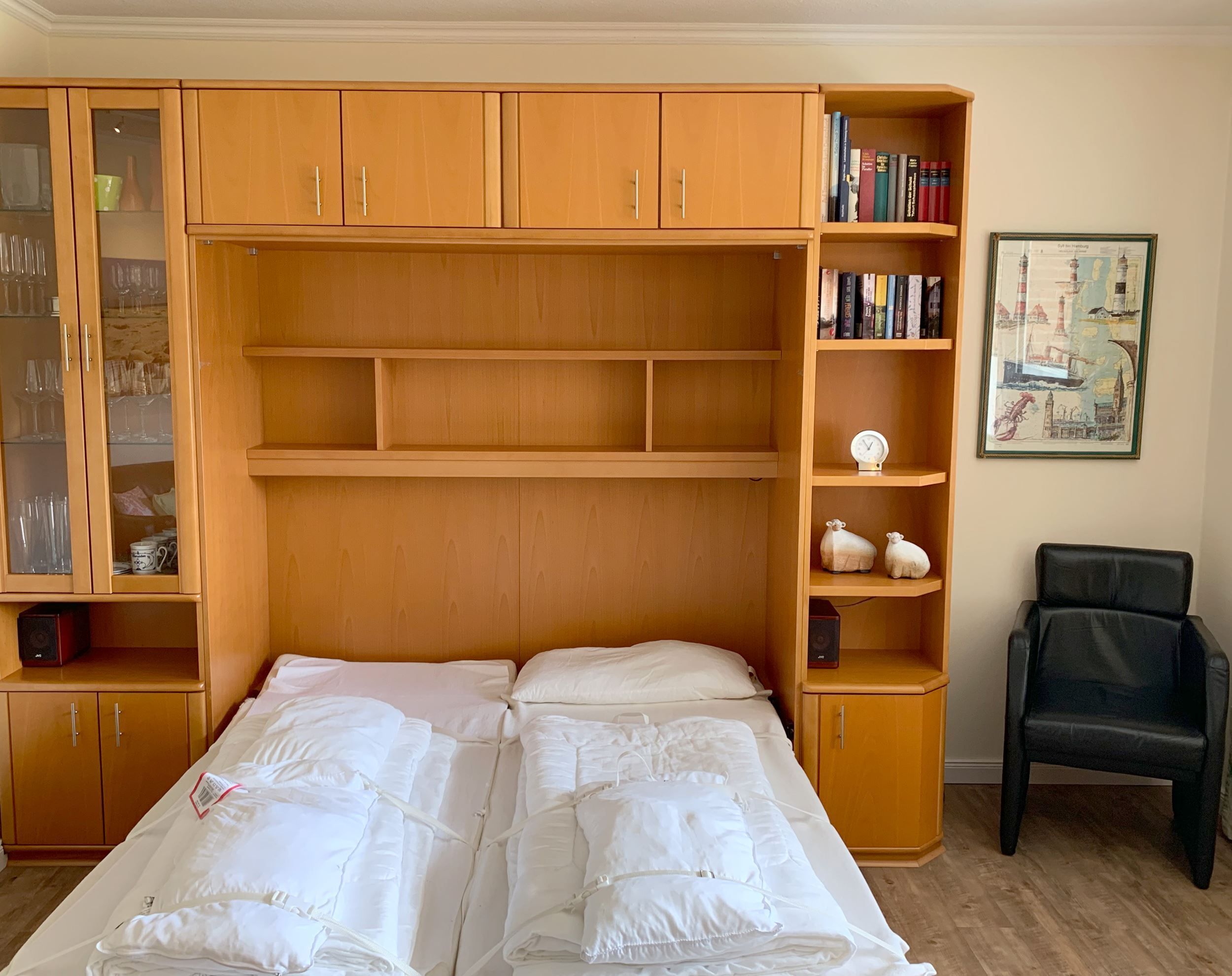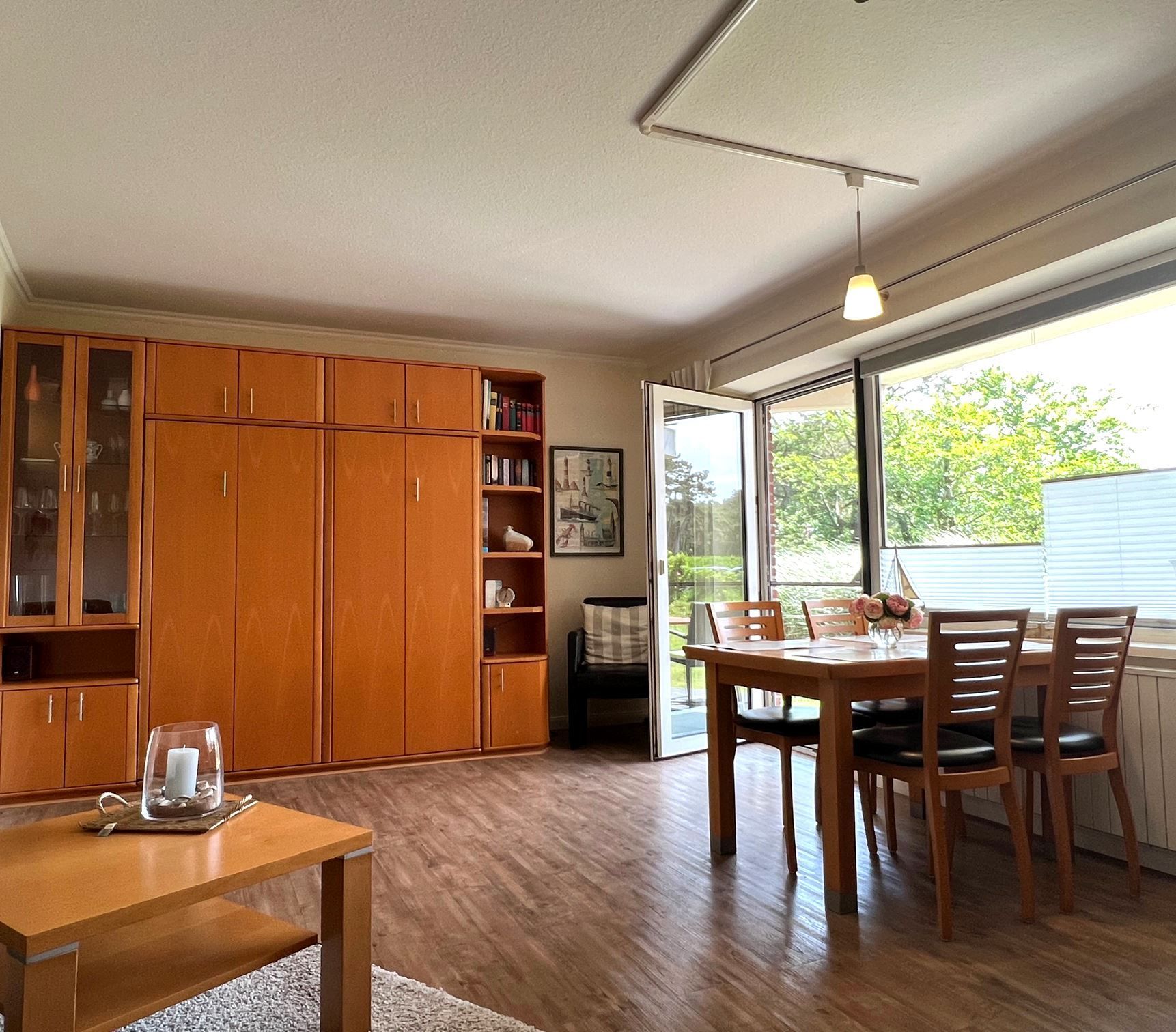 Liebevoll eingerichtete Ferienwohnung in St. Peter-Ording Die 2-Raum Ferienwohnung Utlande Nr. 6 im Ortsteil Ording ist für bis zu 4 Personen geeignet. Sie ist ausgestattet mit hochwertigen Materialien, wie z.B. Holzdesignfußböden, Ledermöbeln, einer separierten Einbauküche und einem modernen Bad mit bodengleicher Dusche. Erholsamen Schlaf finden Sie in einem der 2 Einzelbetten oder in einem Schrankdoppelbett. Auf der halbüberdachten Terrasse in Südlage können Sie bereits morgens in der Sonne frühstücken oder die Seele baumeln lassen. PKW-Stellplatz auf dem Grundstück, Nr. 6