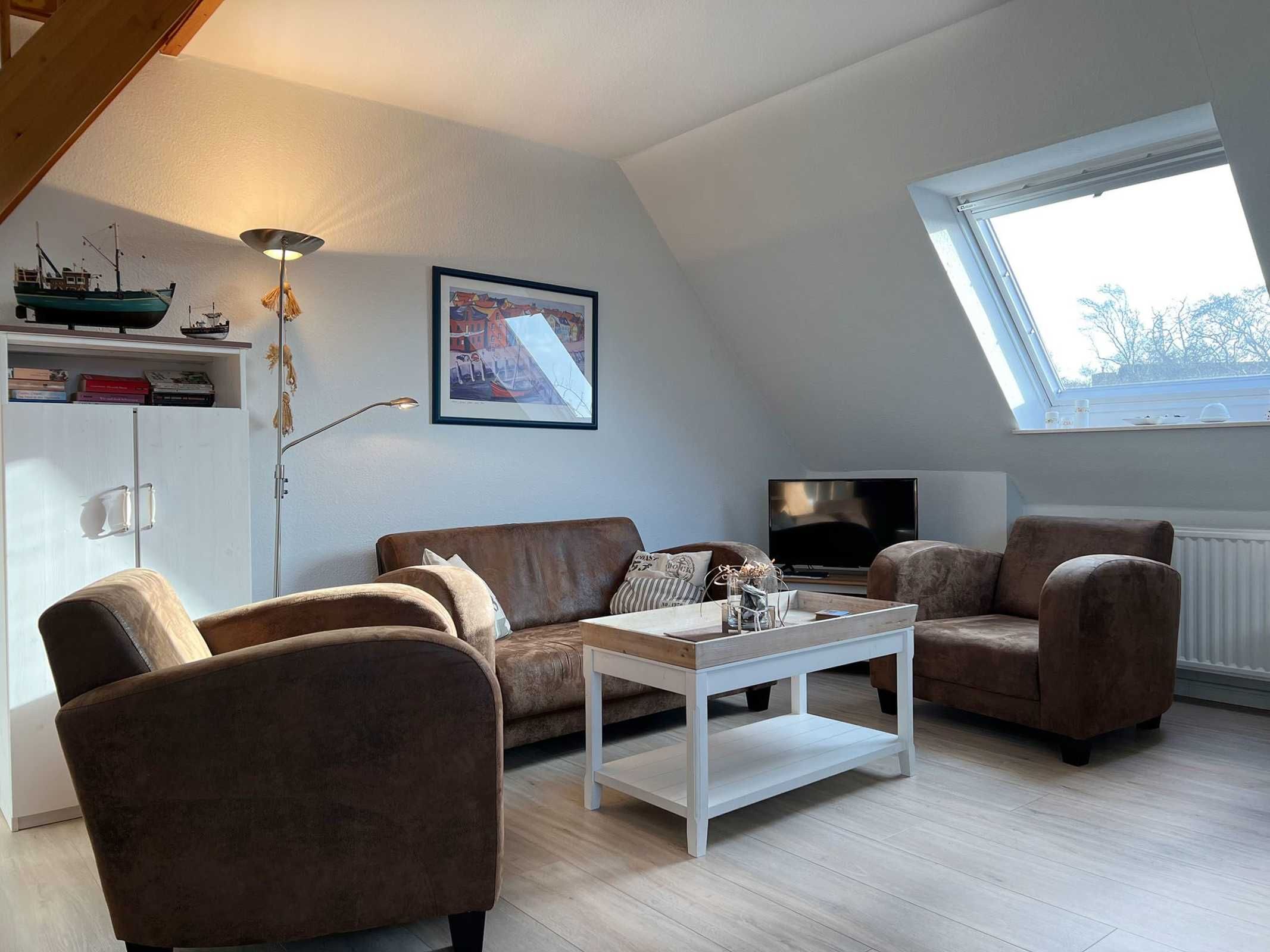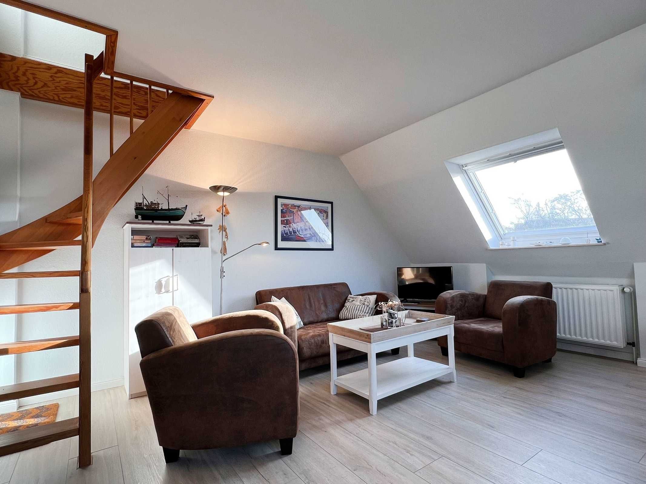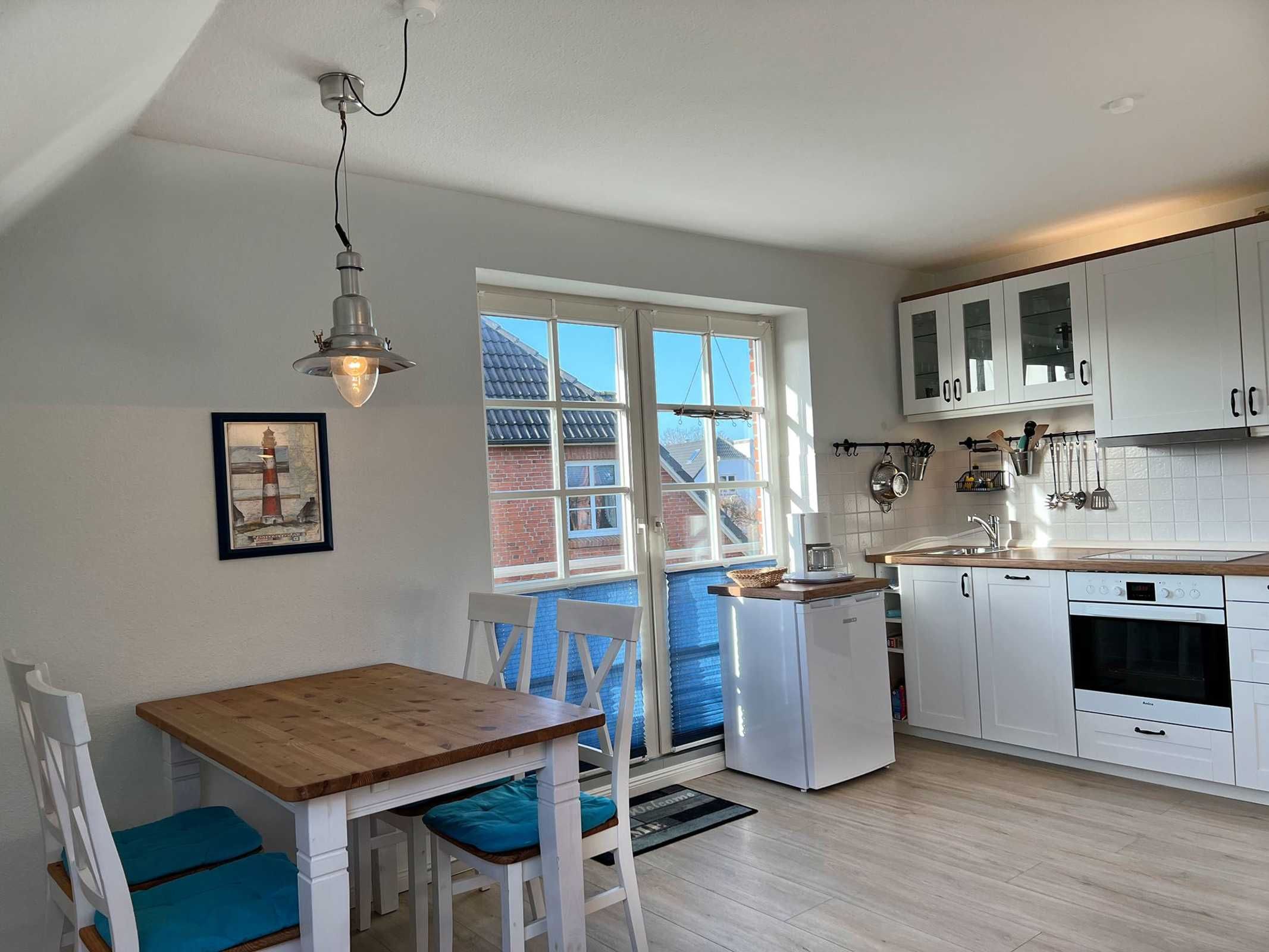 Geschmackvolles Wohnen im Grünen In dieser gut ausgestatteten 3-Zimmer Ferienwohnung für 2-3 Personen machen Sie schöne Ferien in St. Peter Dorf. Die Nichtraucher-Wohnung besitzt im 1. OG und DG 2 Schlafzimmer mit insgesamt 3 Schlafplätzen. Auf dem Süd-Westbalkon können Sie die gute Nordseeluft geniessen. Die kleine Küche ist mit einem Cerankochfeld, Heißluftbackofen, Dunstabzugshaube, Spülmaschine und einem Kühlschrank mit Gefrierfach ausgestattet. Dazu gibt es elektrische Kleingeräte wie Pürrierstab, Toaster, Kaffeemaschine etc.. Pkw-Stellplatz auf dem Grundstück; Nr. 7