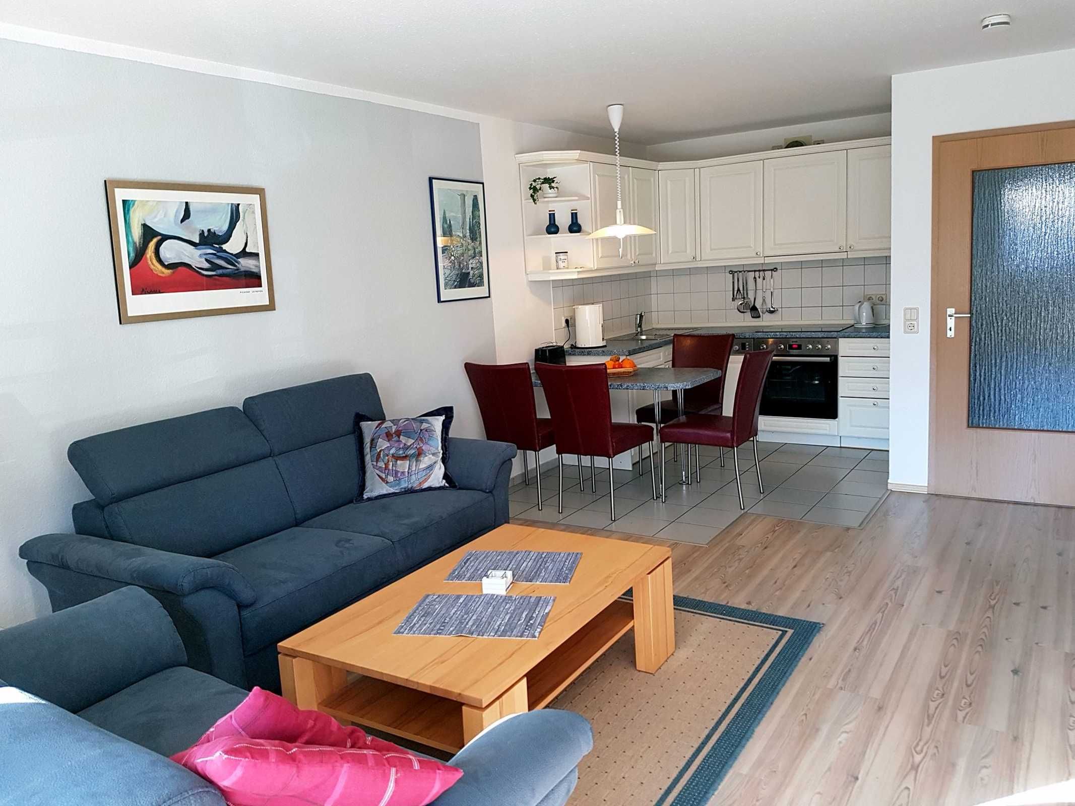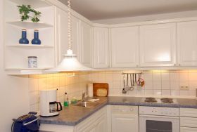 Für unbeschwerte Urlaubstage Diese großzügige, hell und freundlich eingerichtete 2-Zimmer Ferienwohnung für Nichtraucher in St. Peter-Bad, für bis zu 2 Personen, liegt im 1. OG und Sie werden dort unbeschwerte Urlaubstage verbringen können. Besonders schön ist der Ess-Bereich mit der hübschen, weißen Landhausküche, die mit einem 4-Plattenherd und einem Backofen ausgerüstet ist. Neben dem Schrankdoppelbett im Wohnzimmer gibt es ein separates Schlafzimmer mit einem weiteren Doppelbett. Der in südöstlicher Richtung ausrichtete Balkon läd nach einem langen Strandtag zum Relaxen ein! Nicht kleinkindgerecht. PKW-Einstellplatz, Nr. 1.