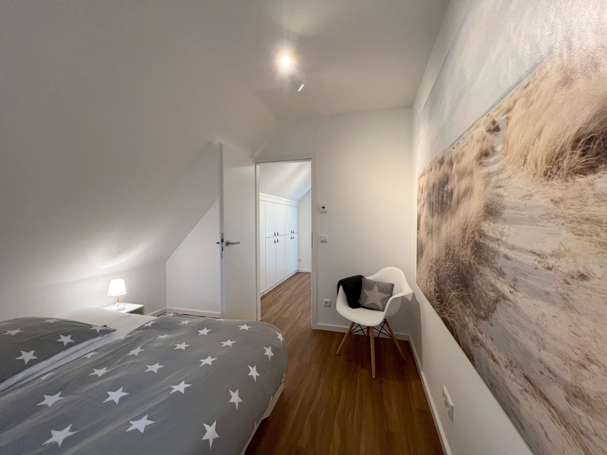 STRANDKOJE in ORDING ANKOMMEN UND WOHLFÜHLEN! Großzügige 3-Zimmer Ferienwohnung am Strandweg - auf direktem Wege zum Ordinger Strand. In gemütlicher Atmosphäre, auf 2 Etagen mit ca. 75 qm, lässt es sich hier erholsame Ferientage verbringen. Der Wohnbereich ist lichtdurchflutet und bietet genügend Platz für bis zu 4 Personen. Die Schlafzimmer im Dachgeschoß strahlen Gemütlichkeit aus und lassen Sie erholsame Nächte verbringen. In einem Schlafzimmer befindet sich ein Doppelbett und in einem Schlafzimmer befinden sich 2 Einzelbetten, die sowohl einzeln als auch als Doppelbett schnell zusammengerückt sind. Der Strandübergang, Bäcker, Fahrradverleih und der traumhafte Waldabenteuerspielplatz für die Kids sind in wenigen Minuten zu Fuß für Sie erreichbar. Pkw-Stellplatz auf dem Grundstück ausgezeichnet mit der Nr. 5