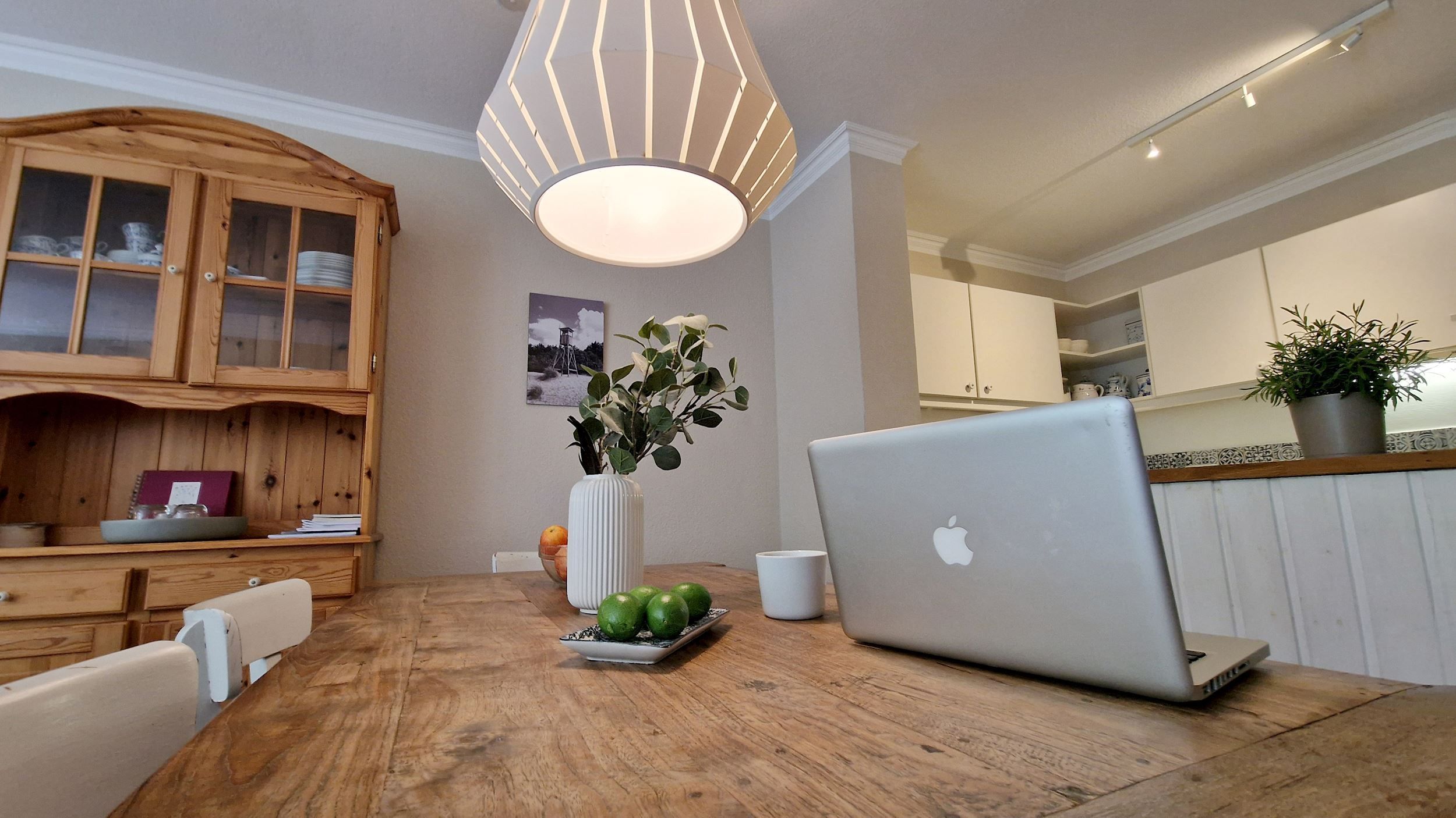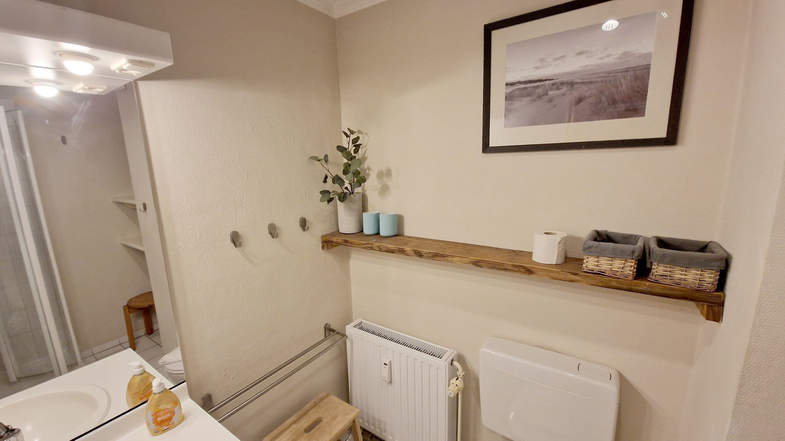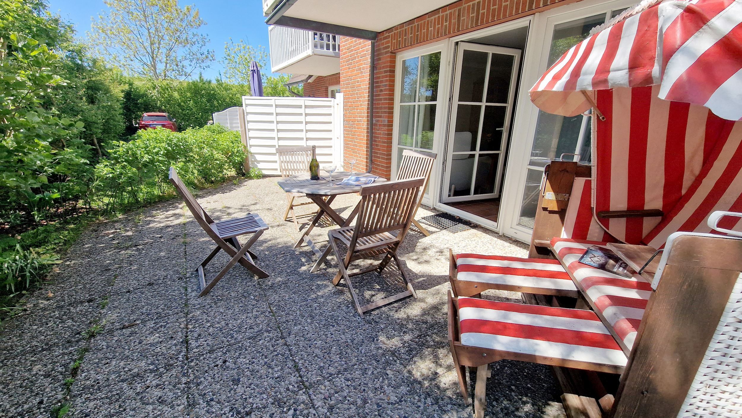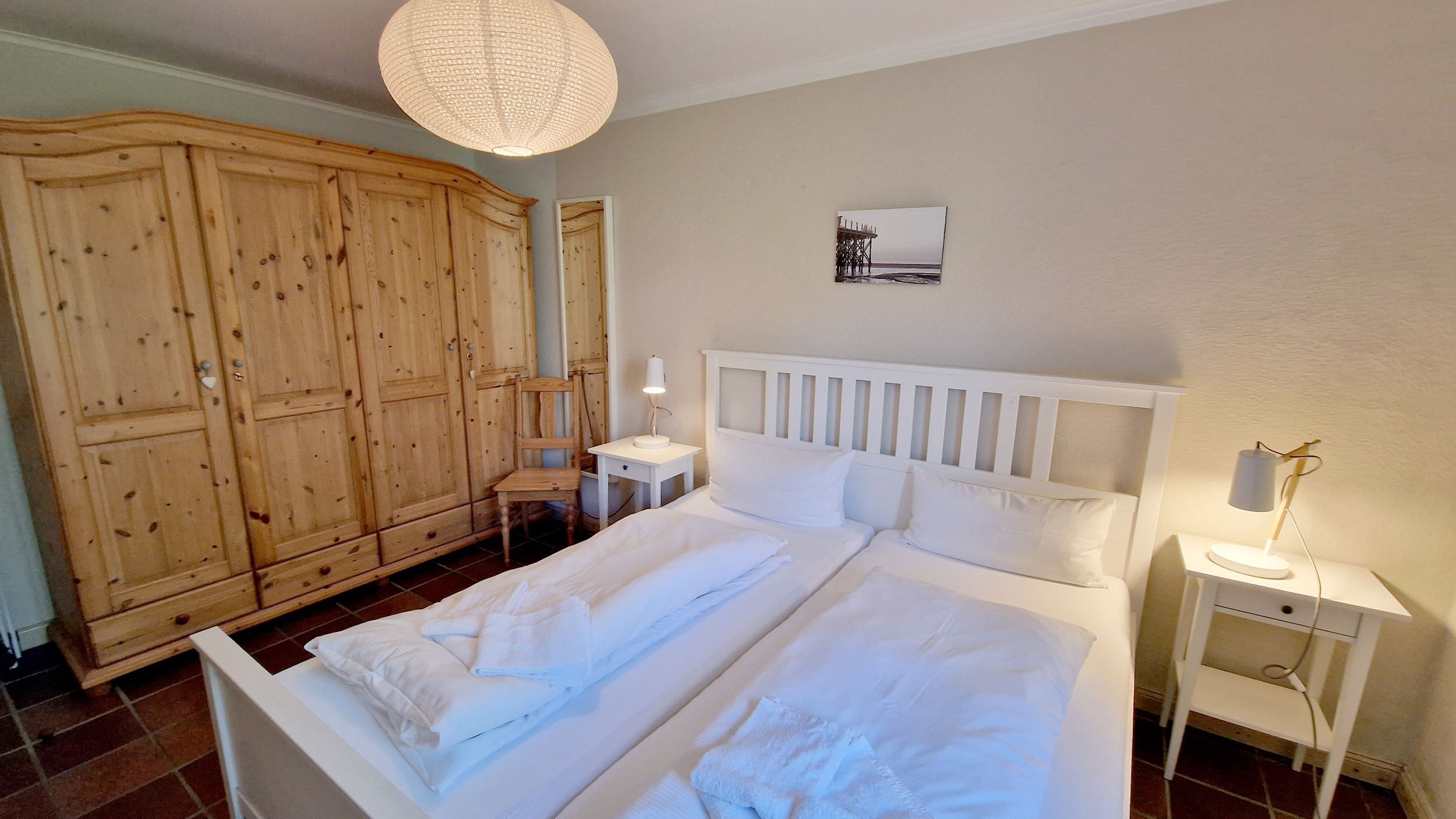 Stilvoll wohnen hinterm Seedeich Passend zu seinem Namen liegt das Haus Achtern Diek direkt hinterm Seedeich und in unmittelbarer Nähe zum Strandweg im Ortsteil Ording. Auf dem Gelände befinden sich ein Abstellraum für Fahrräder und jeweils ein zur Ferienwohnung gehöriger Pkw-Stellplatz. Eine Waschmaschine und ein Trockner können von der Gemeinschaft genutzt werden. In der stilvollen 3-Zimmer-Nichtraucherwohnung Achtern Diek Nr. 02 haben bis zu 5 Gäste ausreichend Platz um einen erholsamen Urlaub zu verbringen. Auf der halb überdachten Terrasse in Süd-Westlage können Sie im Strandkorb den Tag verbummeln. Das in der modernen Küchenzeile mit Cerankochfeld und Backofen zubereitete Essen schmeckt in der schönen Essecke besonders gut. Die Spülmaschine hilft danach beim Abwasch. Das moderne Bad ist mit einem schicken Waschtisch ausgestattet. Pkw-Stellplatz auf dem Grundstück, Nr. 2
