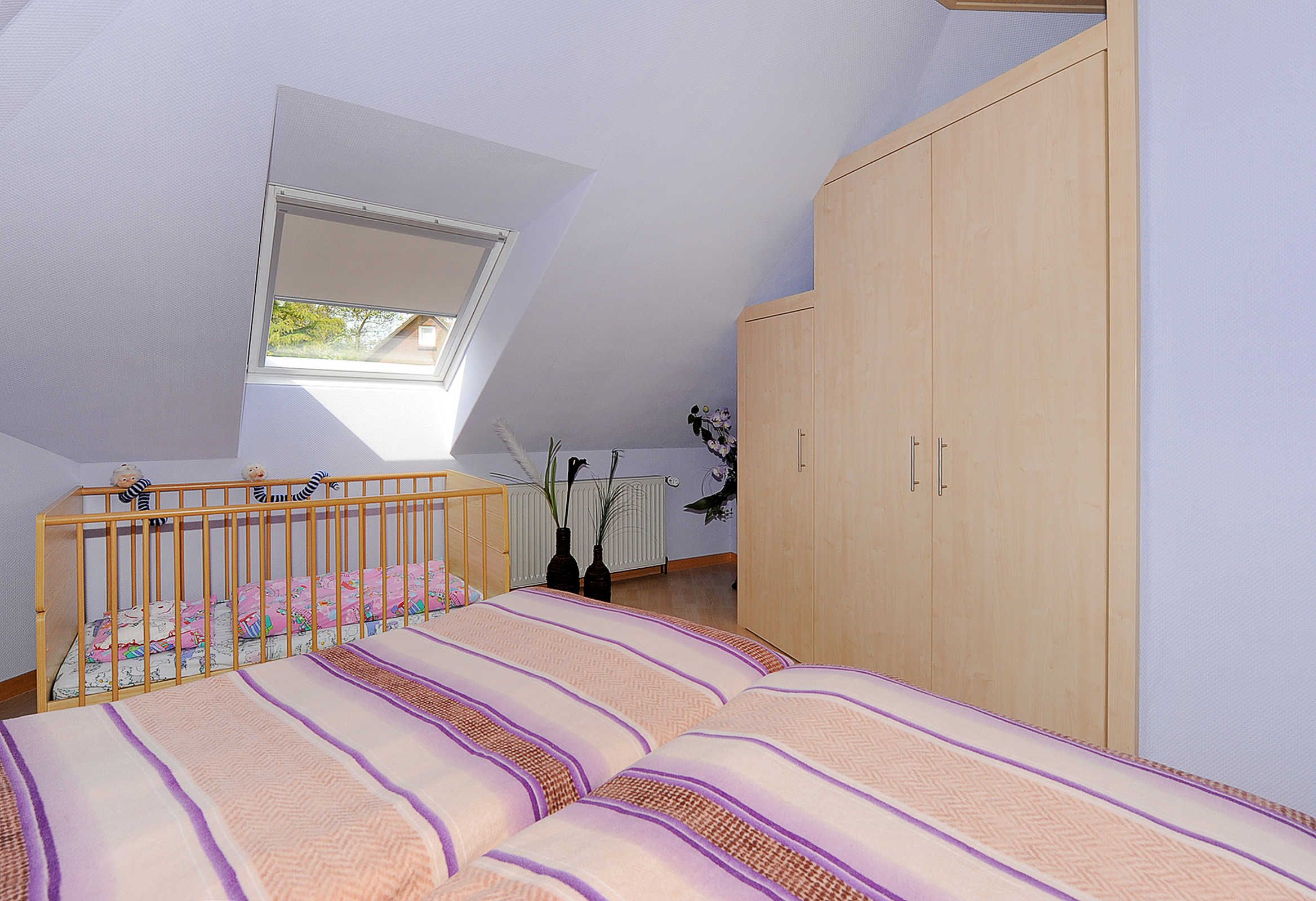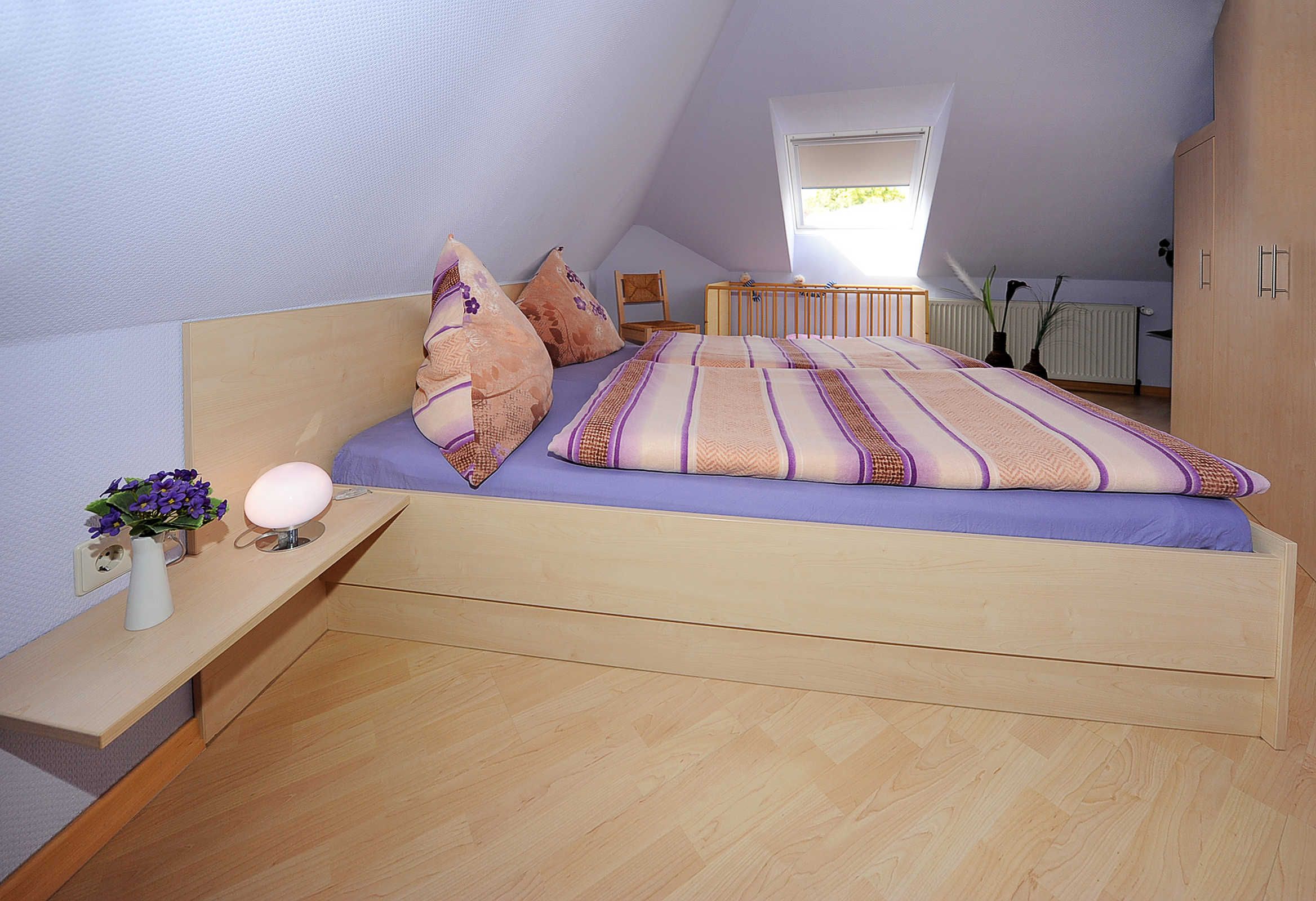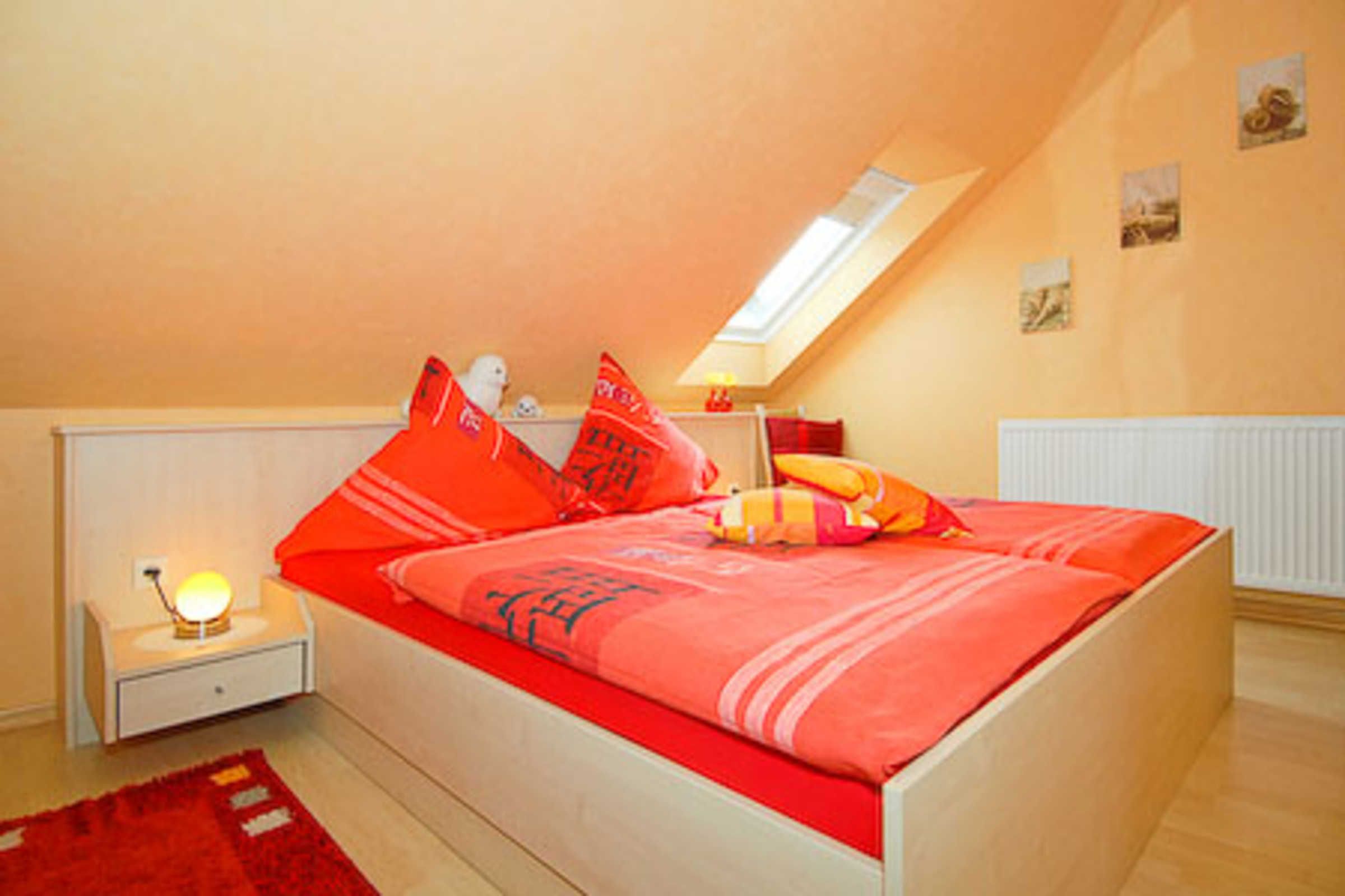 Größe ca. 65 Quadratmeter, Wohnzimmer mit Essgruppe, Küchenabteil, Schlafzimmer, Badezimmer mit Badewanne, Dusche und WC, Obergeschoss, Balkon, optimal für 2 Personen.