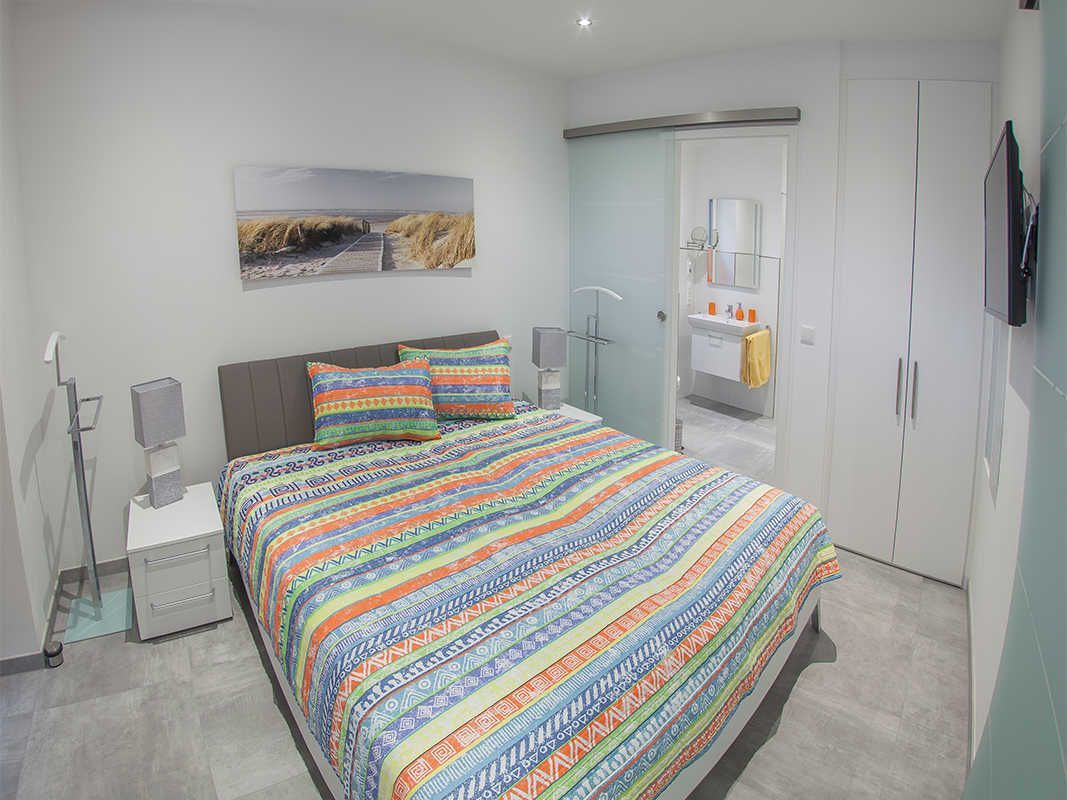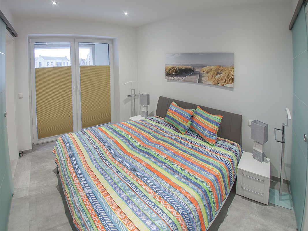 Genießen Sie den Komfort in der hochwertig und modern eingerichteten Friesland Oase: Im kombinierten Wohn- und Essbereich finden Sie eine voll ausgestattete und mit neuesten Geräten eingerichtete Küchenzeile. Der klar gehaltene Stil der gesamten Einrichtung wird durch Accessoires in heiteren Farben ergänzt. Sowohl im Wohnbereich als auch im Schlafzimmer ist ein Flat-TV vorhanden. Die überdachte Westterrasse ist von beiden Räumen aus zugänglich. Das helle Bad mit Fenster, Internet-Radio und begehbarer Sommerregendusche kann vom Schlafzimmer und vom Eingangsbereich aus betreten werden.