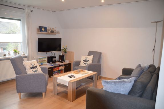 Moderne Ferienwohnung, ausgestattet mit Laminat und Fliese. 1 OG. Treppe, Nichtraucherwohnung, Terrasse.