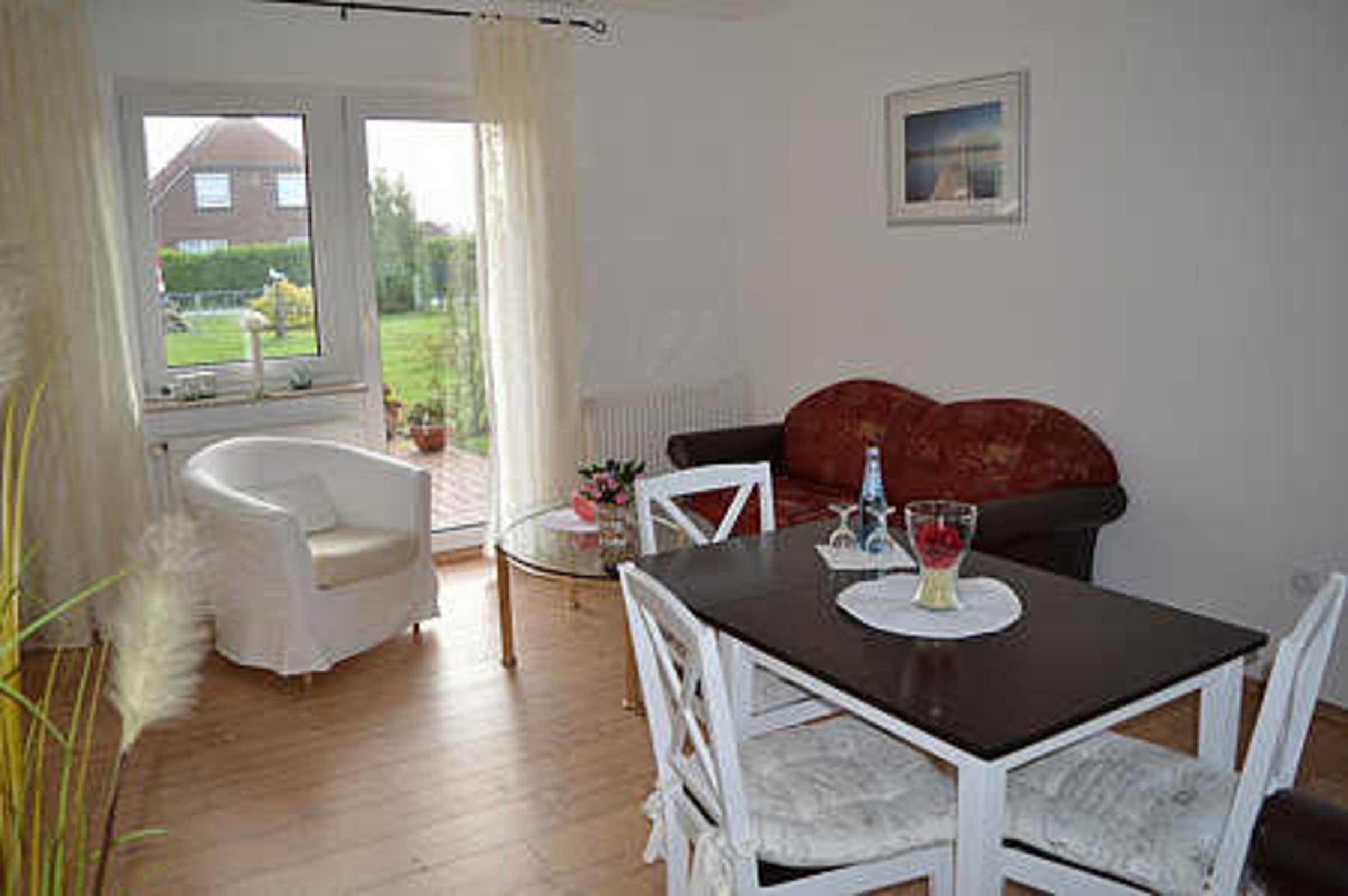 Größe ca. 58 Quadratmeter, Wohnzimmer, Küche, Schlafzimmer, zweites separates Schlafzimmer/Kinderzimmer, Badezimmer mit Dusche, Waschtisch und WC, Erdgeschoss, Terrasse, optimal für 2 bis 4 Personen.