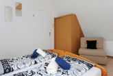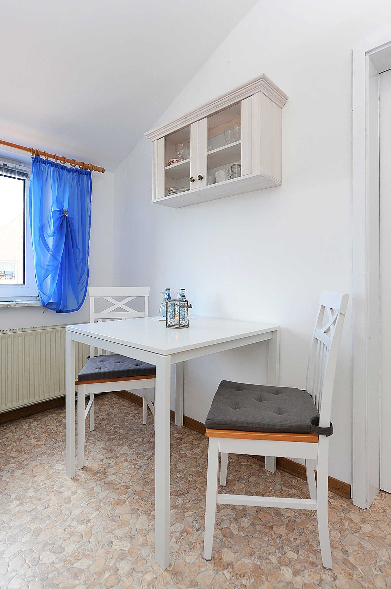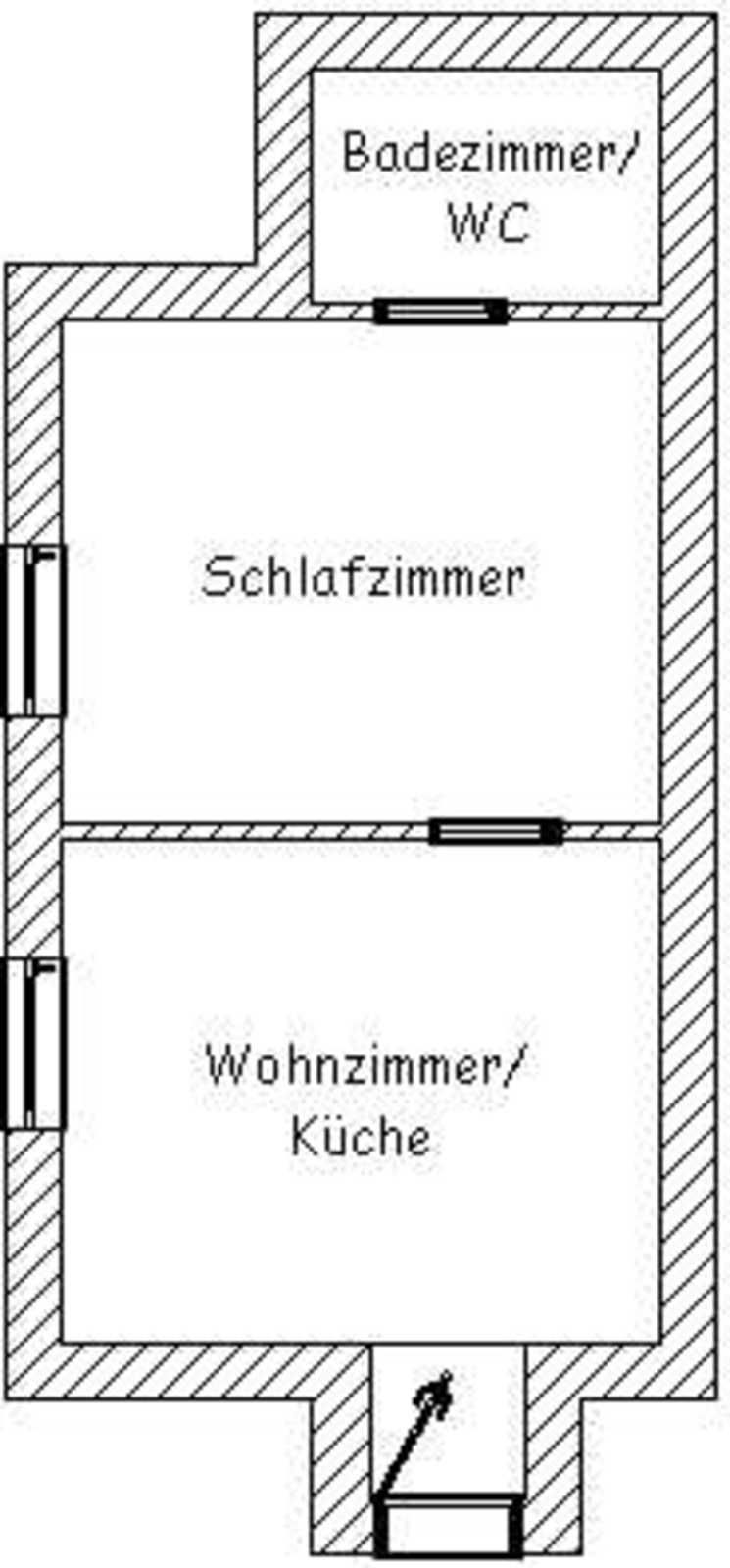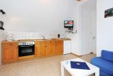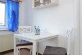 Größe ca. 35 Quadratmeter, Wohnraum mit integrierter Küche, Schlafzimmer, Badezimmer mit Dusche, Waschtisch und WC, Obergeschoss, optimal für 1 bis 2 Personen.