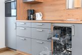 Größe ca. 50 Quadratmeter, Wohnraum mit integrierter Küche und mit Schlafmöglichkeit, Schlafzimmer, Badezimmer mit Dusche, Waschtisch und WC, Obergeschoss, Balkon, optimal für 2 bis 4 Personen.