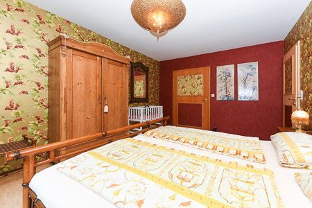 Die Zimmer des Hauses selbst sind zum Teil mit Antiquitäten sowie mit von einer Kunstmalerin bemalten Möbeln eingerichtet. Im Haus dominieren die Farben Türkis, Rot und Gold.