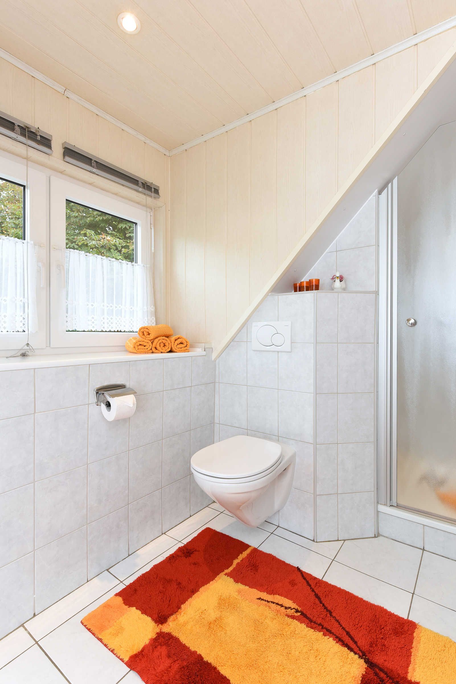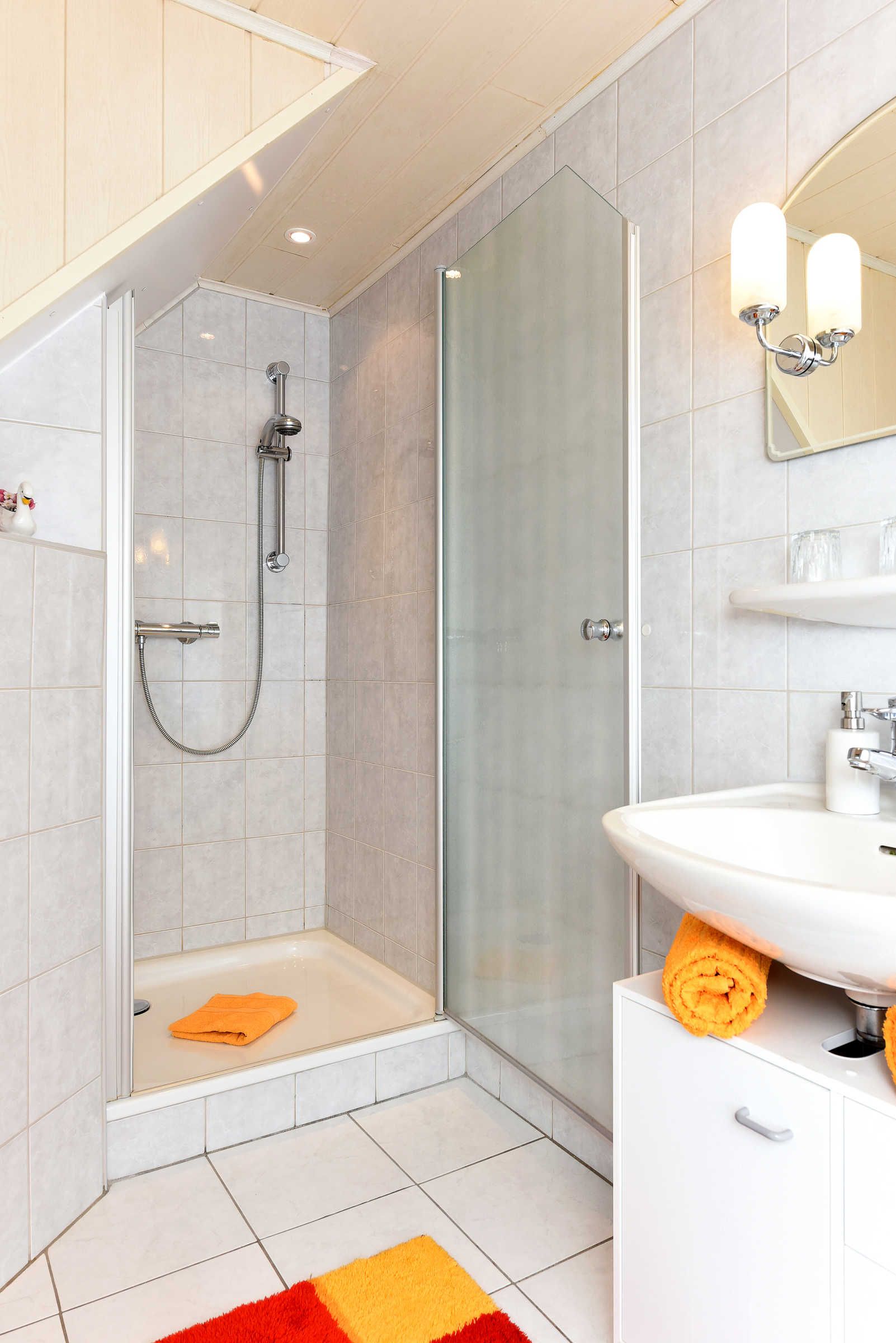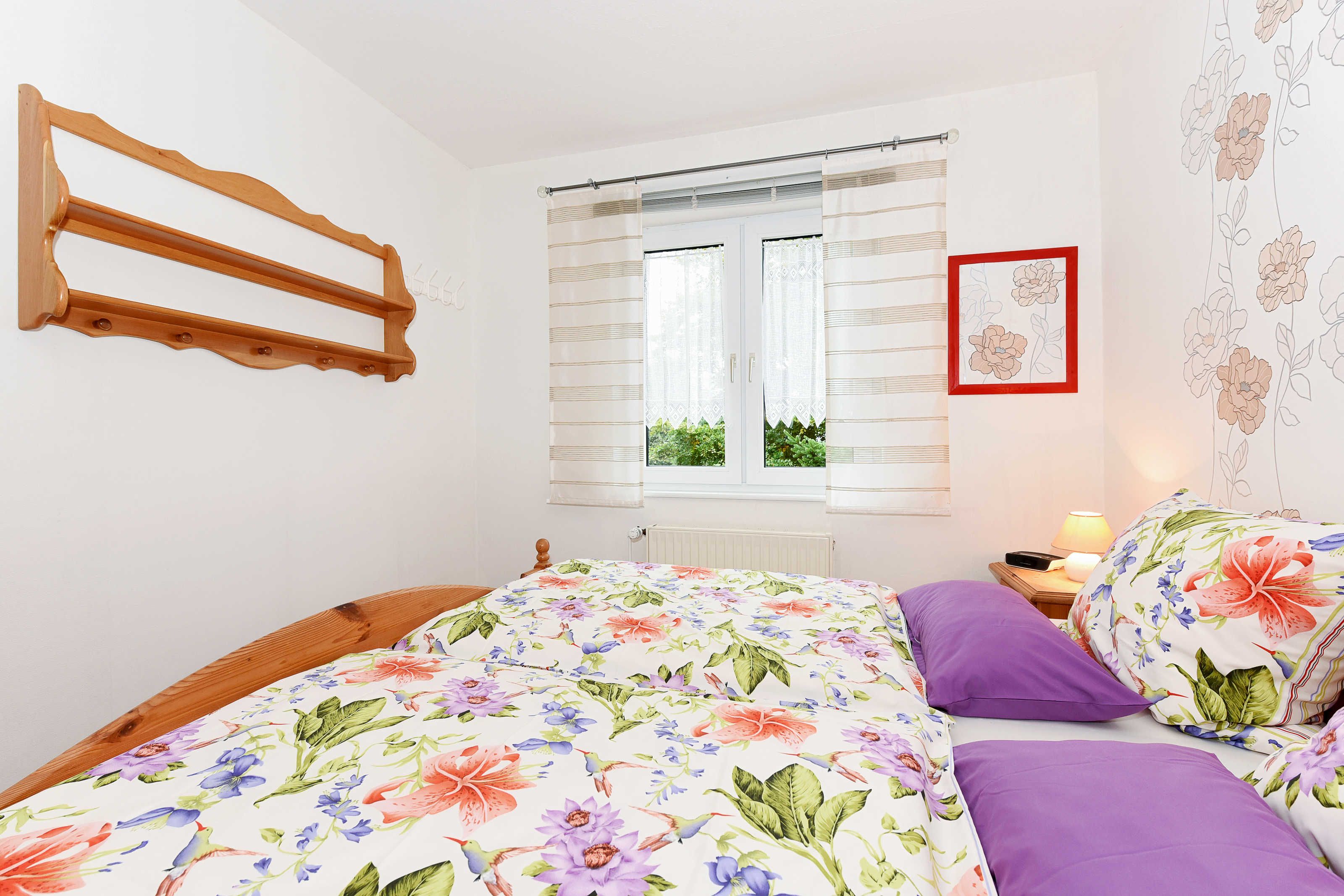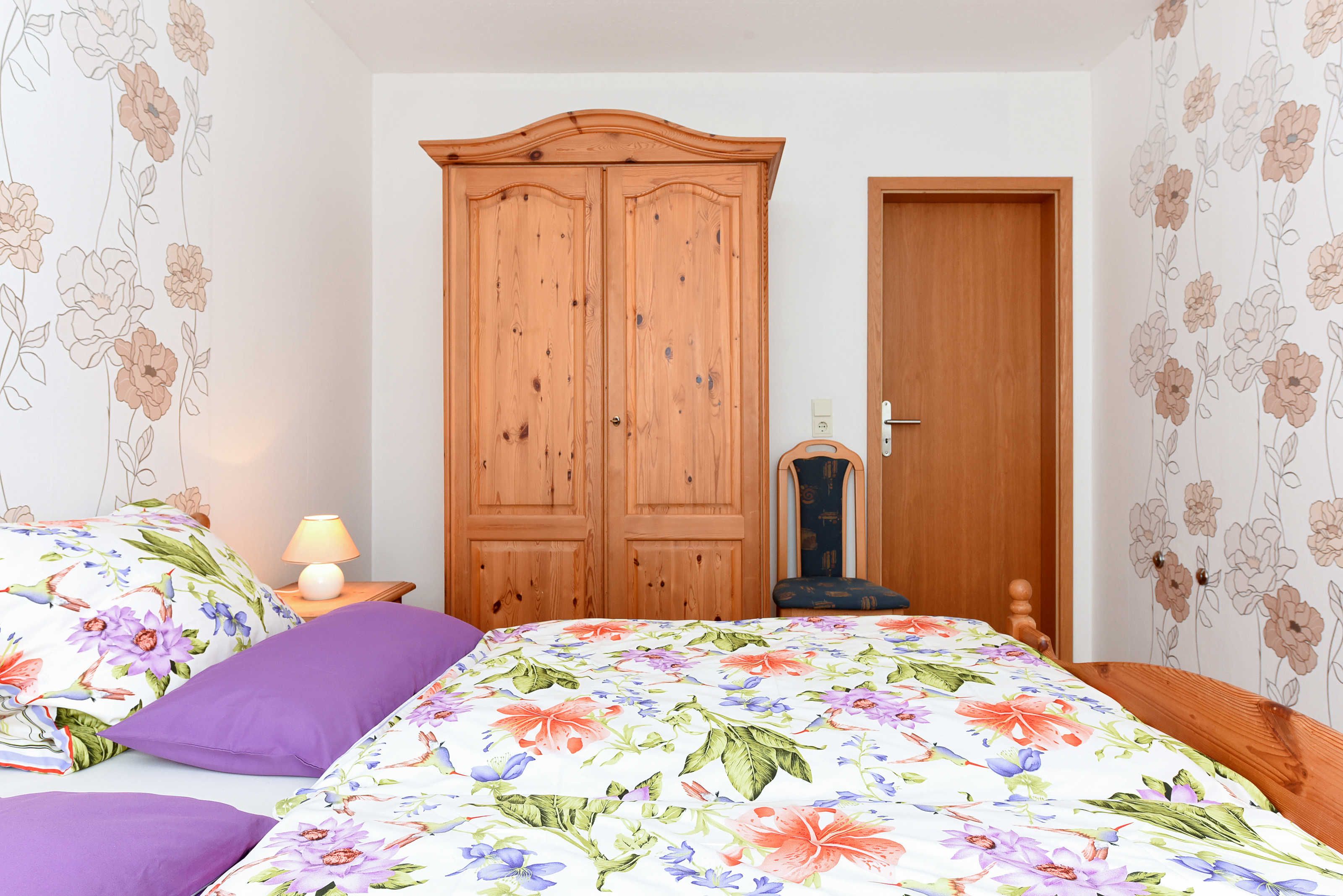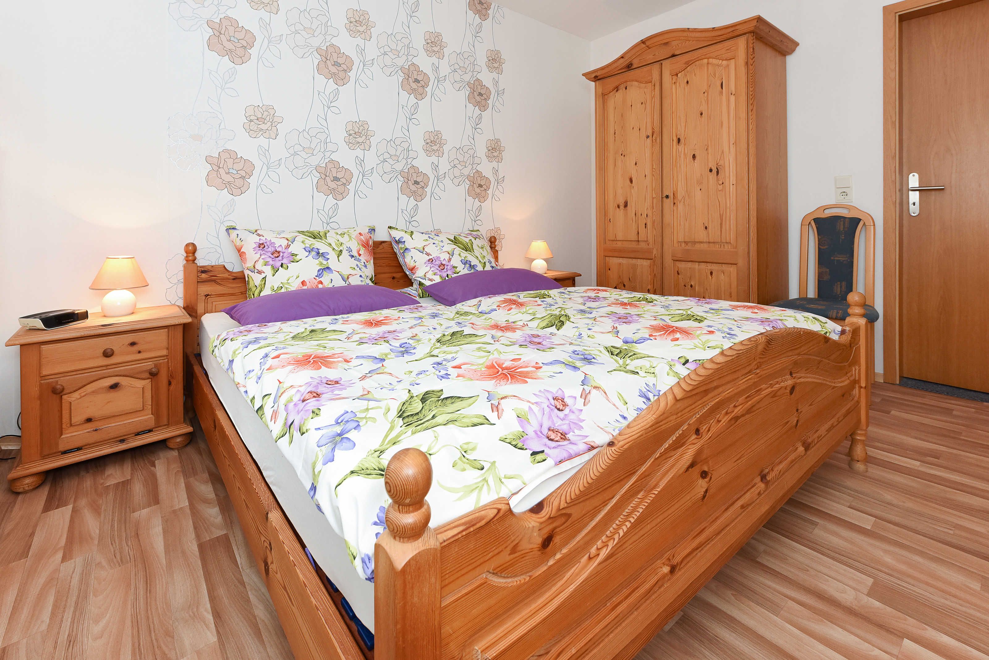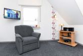 Größe ca. 50 Quadratmeter, Wohnraum mit integrierter Küche, Schlafzimmer, zweites separates Schlafzimmer/Kinderzimmer, Badezimmer mit Dusche, Waschtisch und WC, Obergeschoss, optimal für 1 bis 2 Personen.