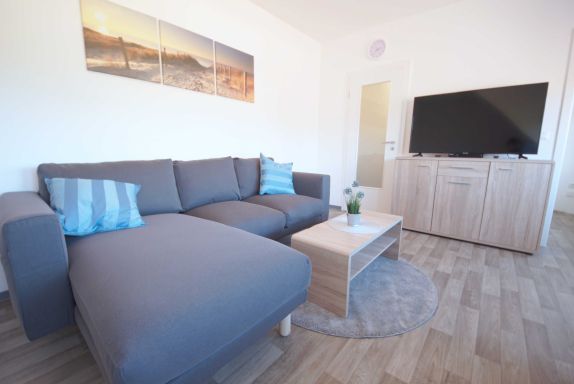 Die Wohnung bietet Platz 2 Personen. Bei Bedarf kann zusätzlich ein Kind in einem Kinderreisebett übernachten. Der Wohnraum ist ausgestattet mit einem Doppelbett, Essecke und Sofa. Das Bad ist hell und geräumig.