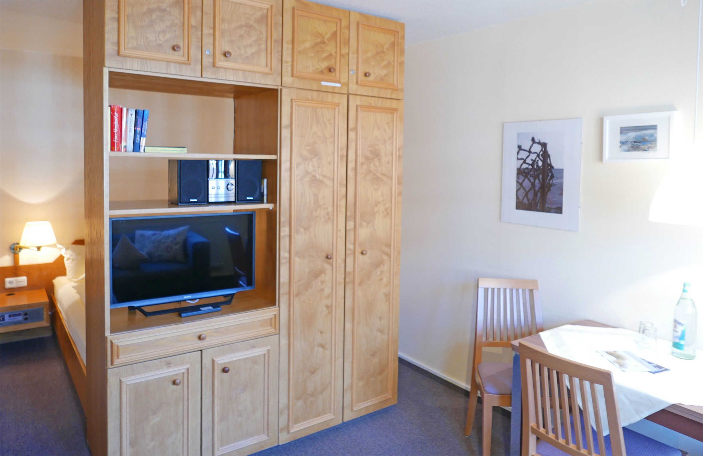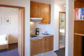 Die gemütliche 2-Zimmer-Wohnung für 2 Erwachsene und 1 Kind in der Inselresidenz Strandburg verfügt über ein Wohn-/Schlafzimmer mit optisch getrenntem Schlafbereich mit Doppelbett sowie einem Kinderzimmer mit Einzelbett.