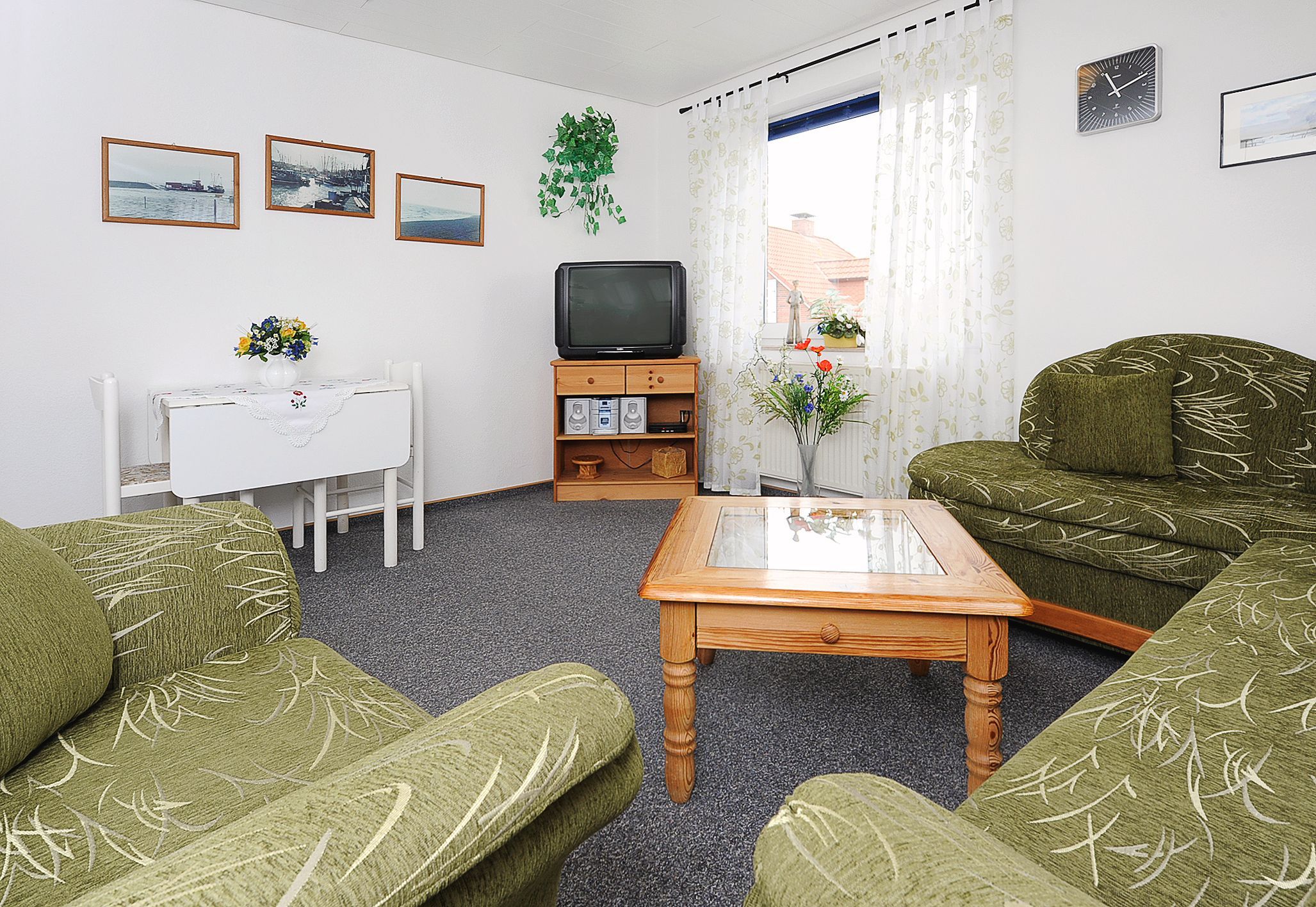 Zu den Wohnungen gehören draußen im Garten eine Liegewiese und eine schöne Sonnen-Terrasse. In unserem Gemeinschaftsraum mit gemütlicher Sitzecke können Sie nach dem Grillen in geselliger Runde ihren Abend ausklingen lassen. Dort gibt es ein Dart-Spiel, Gesellschaftsspiele, Pinöckel, eine Getränkebar und Kaltgetränke und eine Kaffeemaschine stehen dort ebenfalls zu Ihrer Verfügung.
