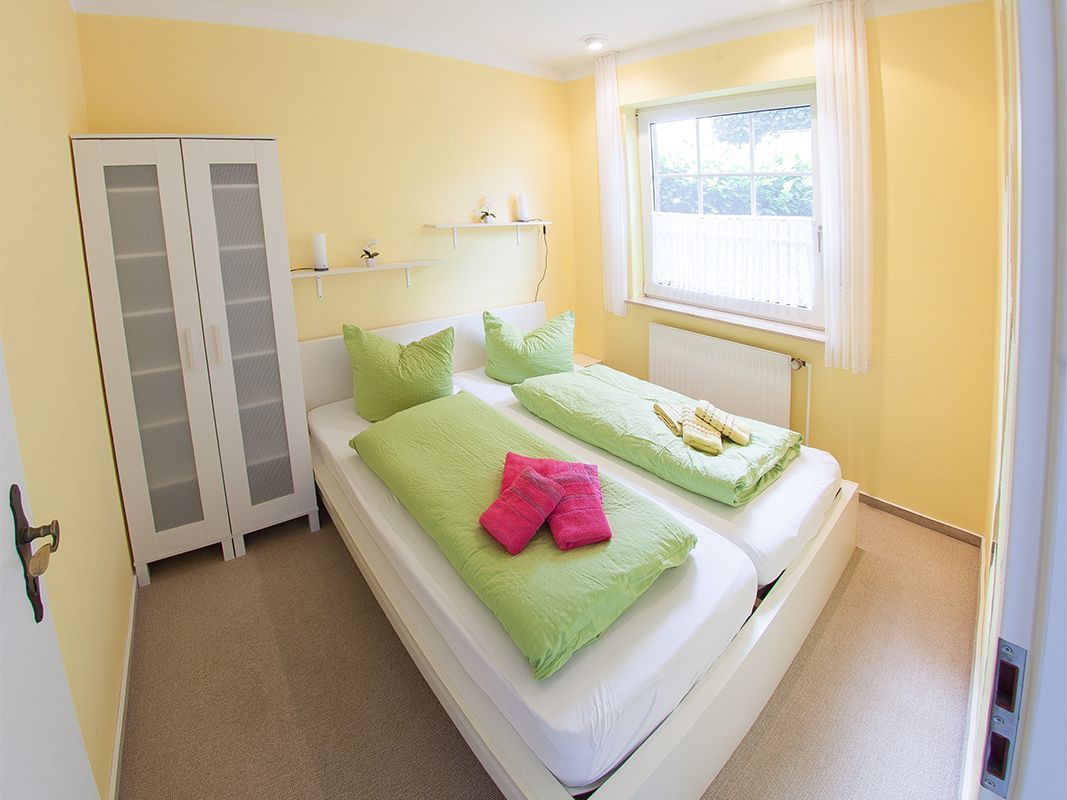 Die großen Sonnenterrassen und der Garten laden ein zu erholsamen Sonnenbädern und einem tollen Fernblick über weites Land. Große Fensterfronten mit zwei Terrassenzugängen gewähren bei einem ausgiebigen Frühstück einen Blick auf schöne Sonnenaufgänge. Die gemütlich gestalteten beiden Schlafräume verfügen über ein Doppelbett und zwei Einzelbetten. Auf gleicher Ebene liegt das helle freundliche Duschbad.