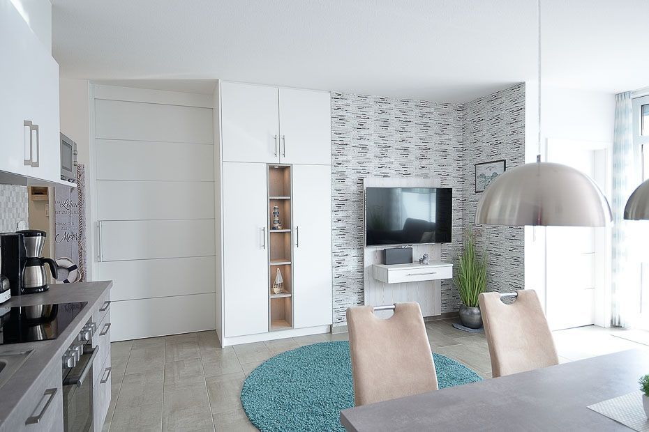 Die Ferienwohnungen im Nordseegartenpark sind besonders modern, komfortabel und freundlich eingerichtet, technisch auf dem aktuellsten Stand, teilweise gehen sie über zwei Wohn-Ebenen.