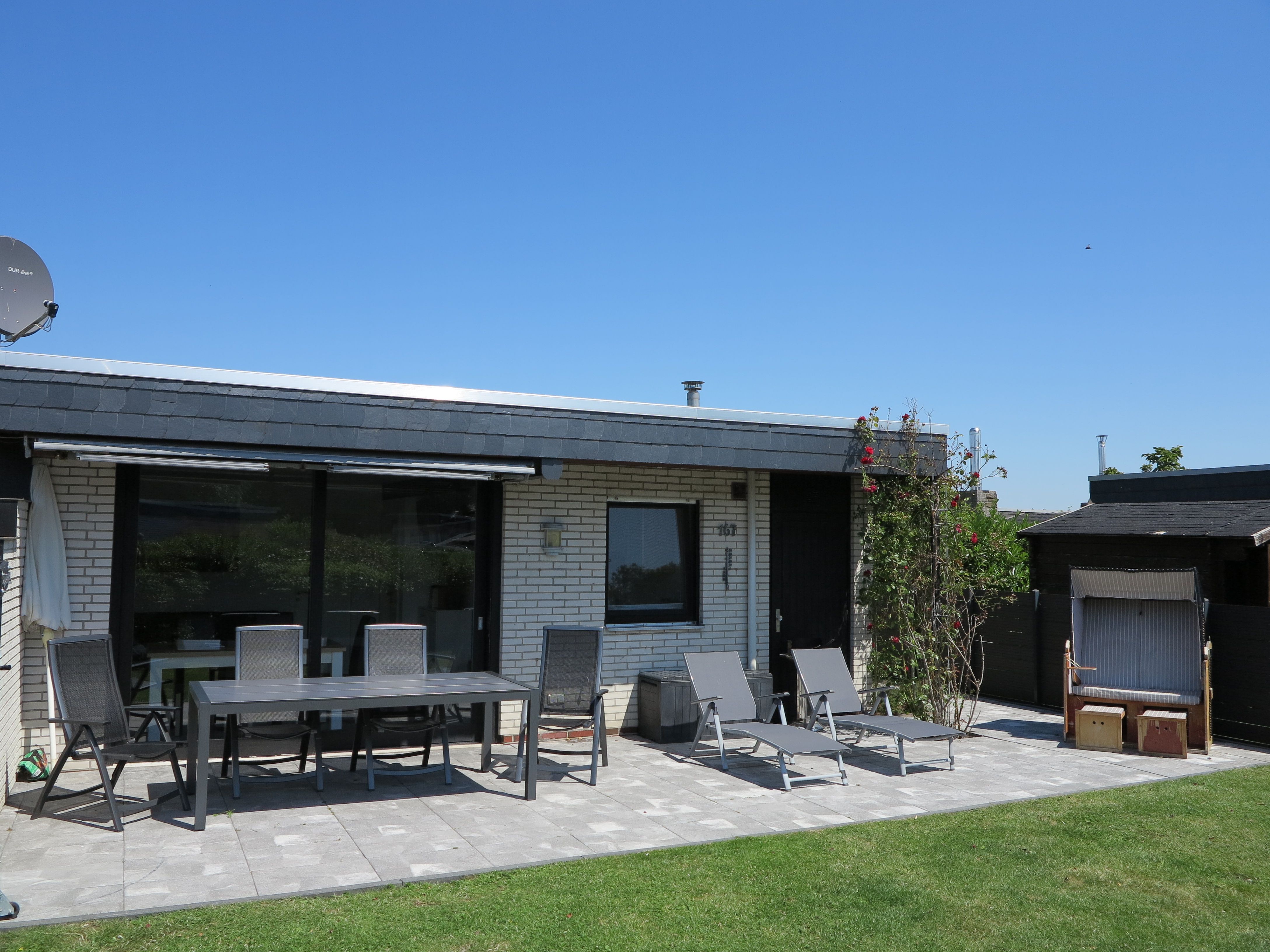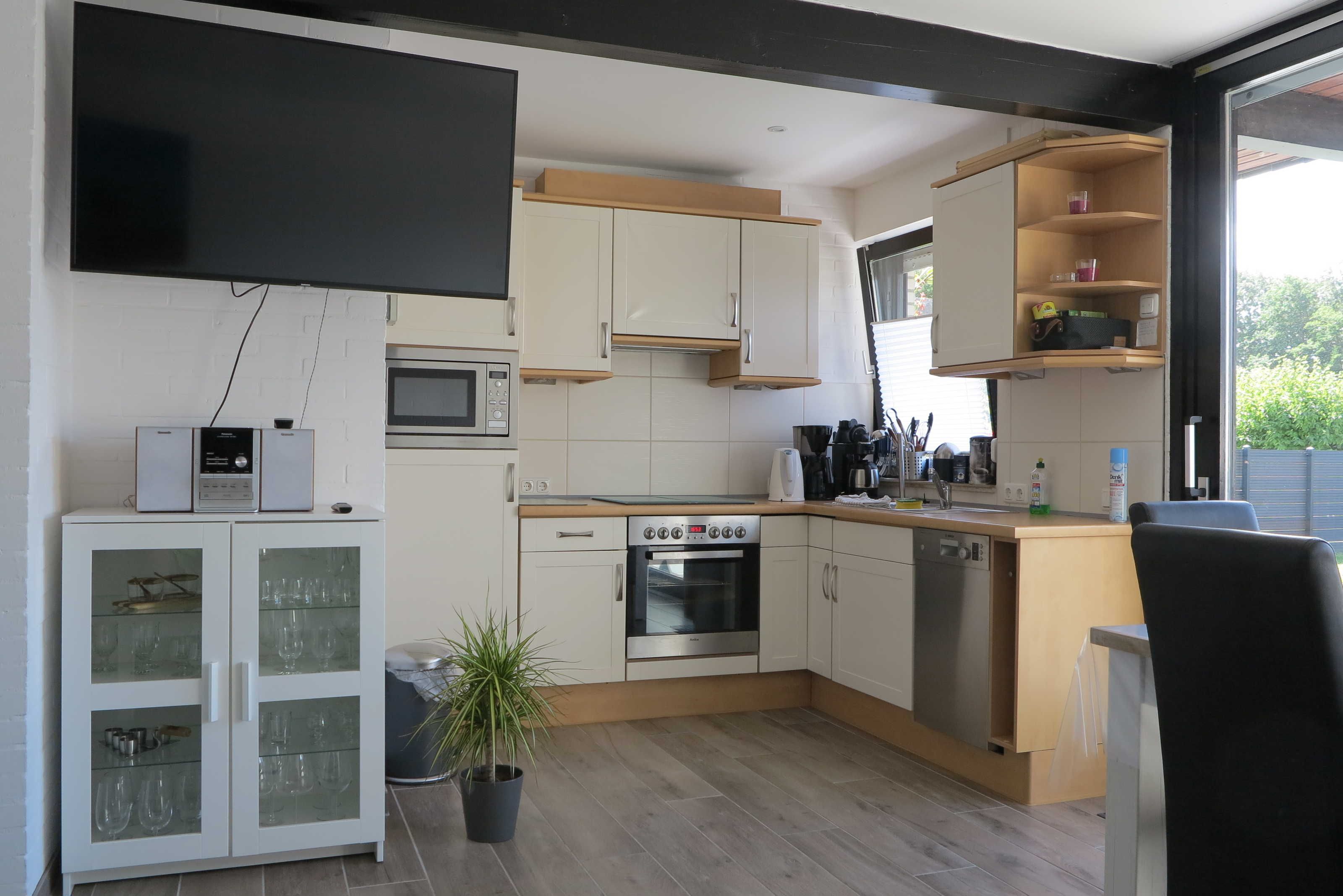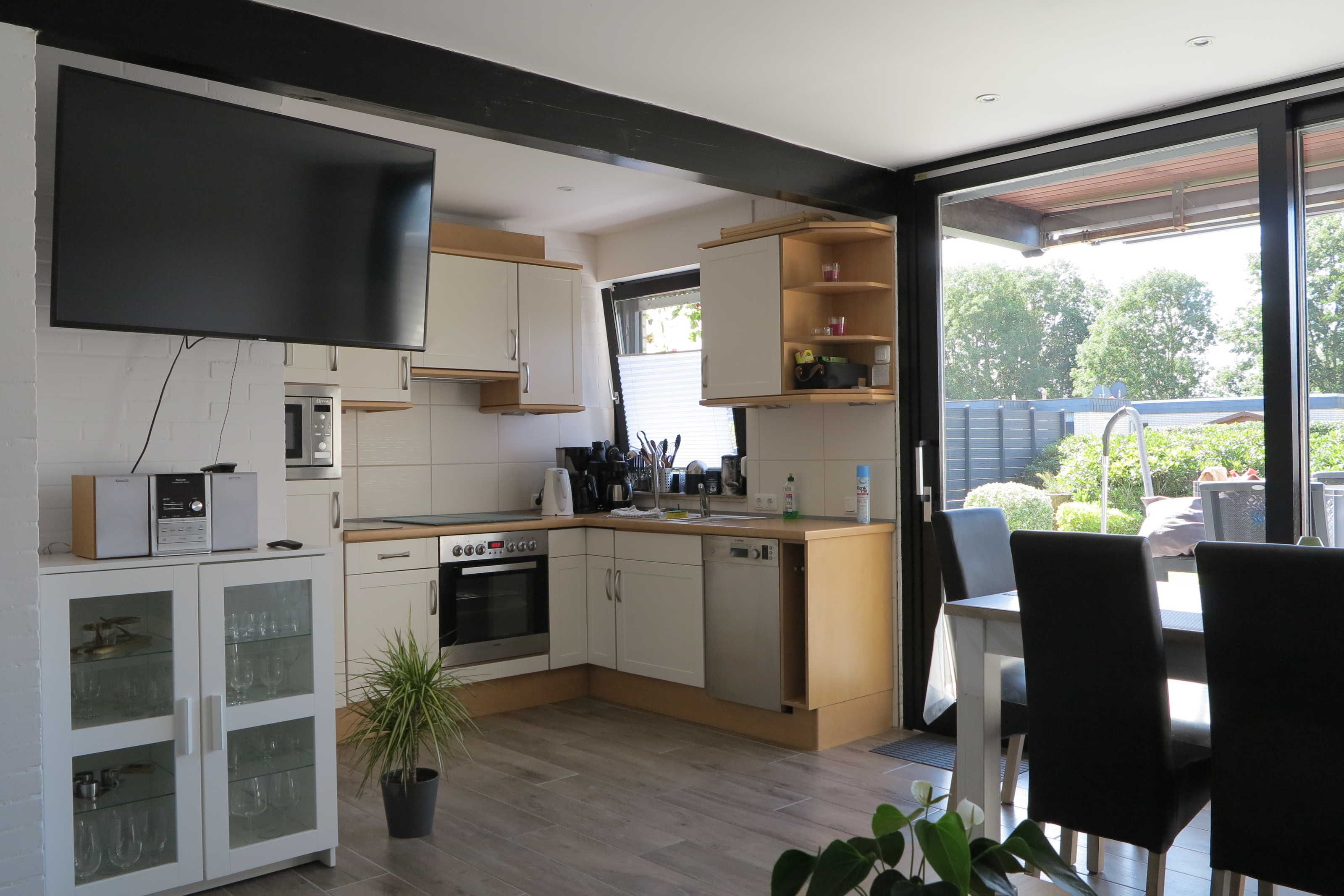 Neben einer voll ausgestatteten Küche erwartet Sie ein großer und offener Wohnbereich mit Internet und stufenlosem Übergang zur Süd-Terrasse sowie ein Stellplatz direkt am Haus. Eine Fußbodenheizung erwärmt das gesamte, durchgefließte Haus. Zum Garten hin gelegen ist eine ca. 30 qm² große Terrasse mit nagelneuen Sitz- und Liegemöbeln, ein Grill sowie ein Sonnenschirm im windgeschützten Außenbereich vorhanden. Außerdem gibt es eine neue, ausfahrbare Markise und einen Strandkorb. Das gesamte Ferienhaus ist neu ausgestattet, modern eingerichtet und wenn doch einmal etwas fehlen sollte, wird Abhilfe geleistet.